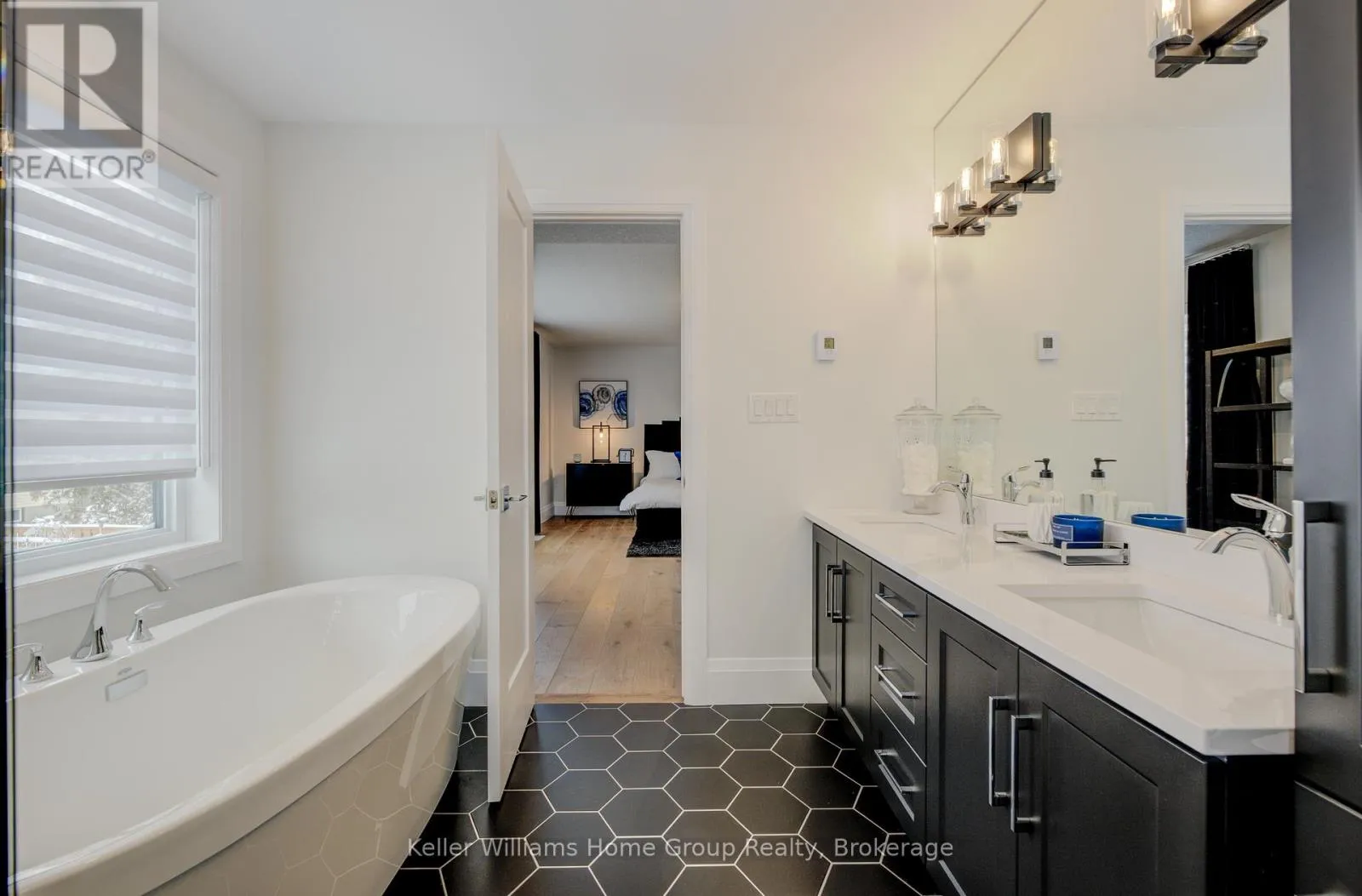 Cross Streets: Shakespeare Eramosa. ** Directions: East on Eramosa, North on Shakespeare, North on Nicholas. STUNNING PROFESSIONALLY DESIGNED NET ZERO MODEL HOME FOR SALE! Experience elevated living in this upgraded, energy-efficient Net Zero home featuring roof-mounted solar panels that produce zero carbon emissions. This modern residence makes a bold architectural statement with striking curb appeal and a welcoming presence that sets it apart. Step inside to discover an equally impressive interior a family-friendly, open-concept layout enhanced by on-trend, timeless finishes. The main floor exudes comfort and sophistication with soaring 10-foot ceilings, hardwood floors, quartz countertops, and custom window treatments all perfectly coordinated in a refined color palette. Enjoy your morning coffee or evening drink on the covered rear patio or private balcony off the media room, overlooking the tranquil green space. The Primary Suite is a true retreat, featuring a luxurious ensuite with designer tile, a custom shower, and every thoughtful upgrade. The media room impresses with its extra-tall ceilings, while the main halls clerestory detail fills the upper level with natural light and architectural flair. The fully finished basement includes a separate entrance, offering potential for an income suite or additional living space for your growing family. Discover exceptional design, craftsmanship, and energy efficiency in every corner of this remarkable home. For purposes of property tax the property is currently assessed as commercial since it is being used as a model home. After purchase, the new owner simply needs to notify the city that it will be used as a residential property to have the taxes adjusted back to standard residential rates. (id:27476)