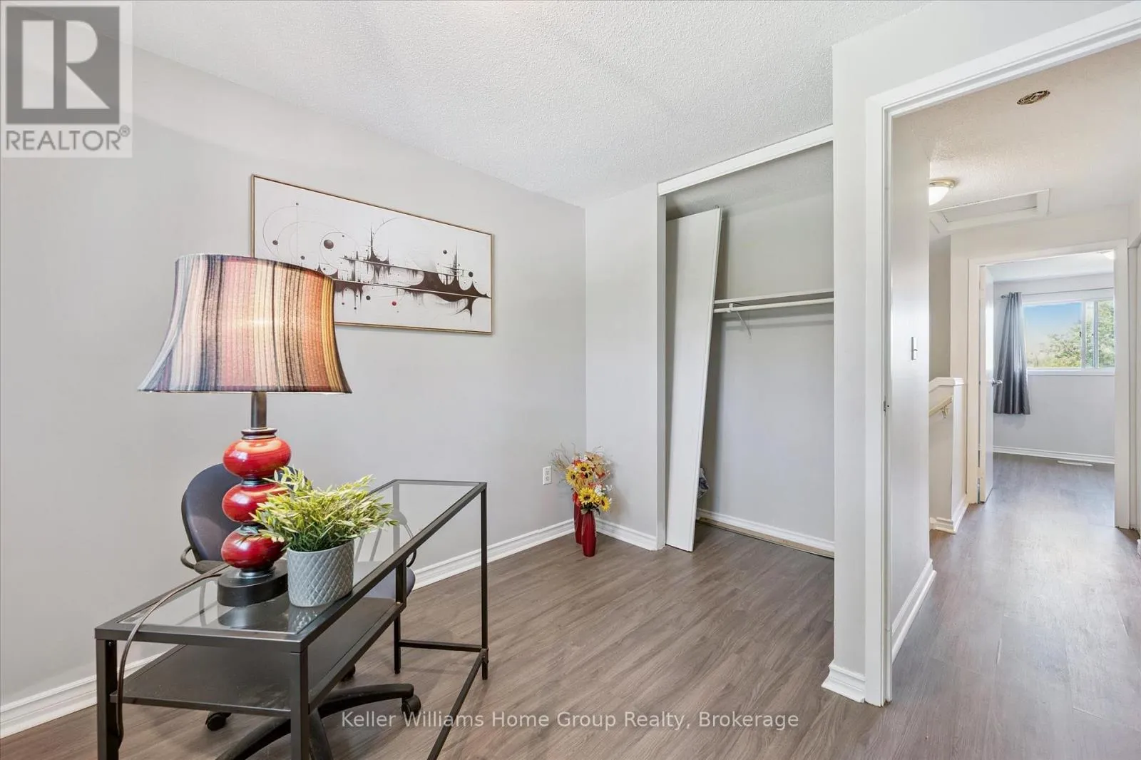 Cross Streets: Imperial Road N / Paisley Road. ** Directions: On Imperial between Willow Road & Ferman Drive. Welcome to 40 Imperial Road N Unit 39!! Located in a well-maintained complex, this freshly painted 3-bedroom, 1-bath end-unit townhome offers modern comfort and unbeatable value! The main floor features a well-laid-out design, a bright living room, and a walkout to a private, tree-lined backyard perfect for relaxing or entertaining. The kitchen offers ample counter space, with an adjoining dining area that provides a warm, welcoming flow.Upstairs, you'll find new flooring throughout and three generous bedrooms, plus a 4-piece bath. This home also features a forced-air furnace, central A/C, and an owned water heater for year-round comfort and peace of mind.Ideally located just minutes from Costco, Zehrs, West End Rec Centre, schools, parks, and transit, this end unit combines style, convenience, and a great location perfect for first-time buyers or investors alike. Lets get you in for a peek! (id:27476)