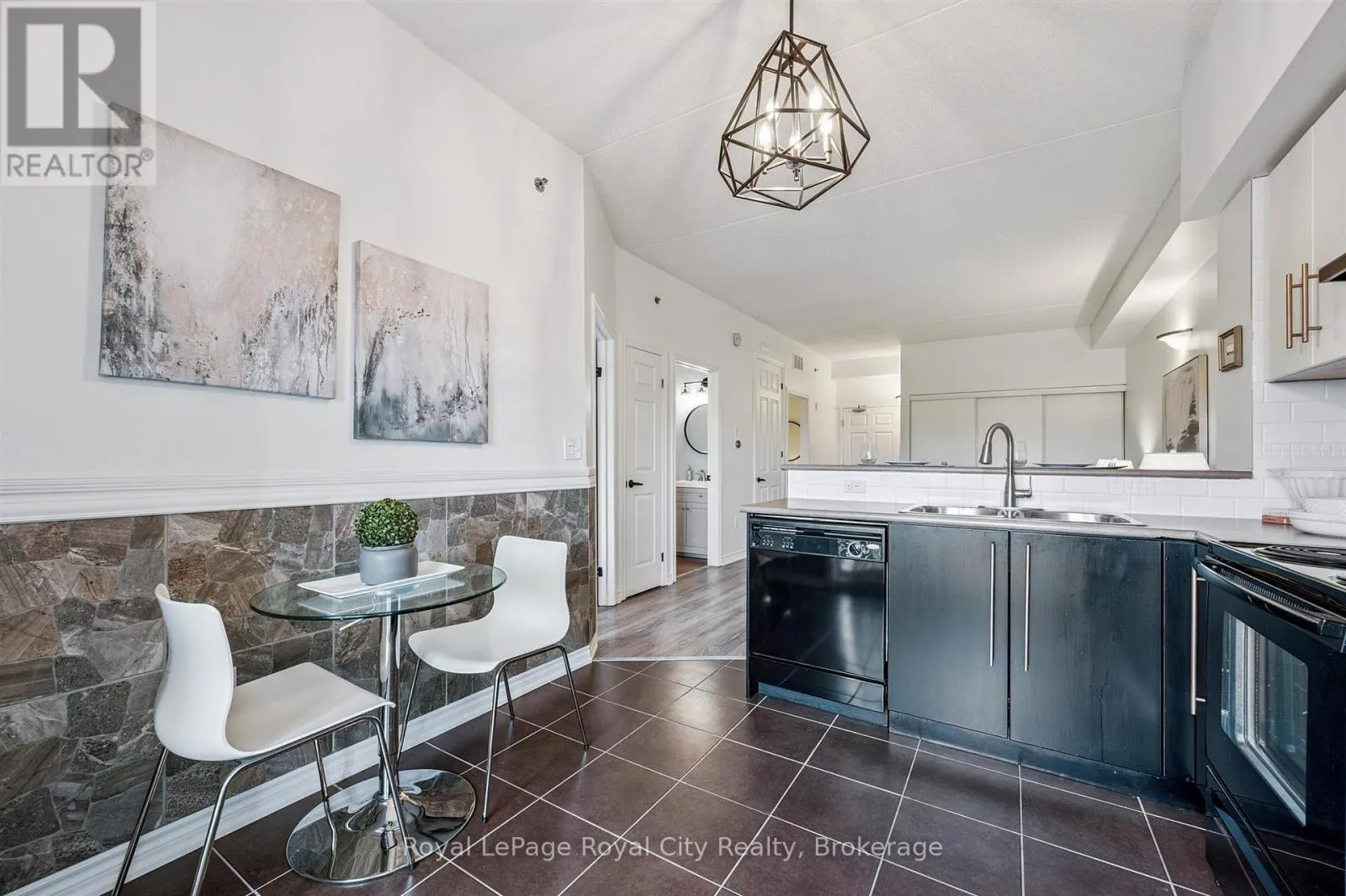 Watson Parkway N and Grange Road Thinking of getting into the housing market but feeling a bit nervous? I get that...it's a huge step. Here is the thing, why not start small and have a look at this cozy third floor condo in Guelph's quiet east end. This 1 bedroom plus den condo has been freshly painted and is awaiting your arrival. With an open concept floor plan, entertaining for friends is easy with a kitchen that has lots of counter and cupboard space and the convenience of eating at the breakfast bar or the bistro table. Ensuite laundry tucked into a closet, makes this chore easy and efficient while you work away in the den, lounge on the balcony or fix dinner. This unit comes with one parking spot, lots of closet storage and access to schools, parks and a direct bus route to the University of Guelph too. So, start small, ease into the market and enjoy easy living while you build up your equity, enjoy all that the east end has to offer and plan for your one day "forever" home. Have a peek at this cutie today! I think you will be impressed without the awful feeling of being nervous. (id:27476)