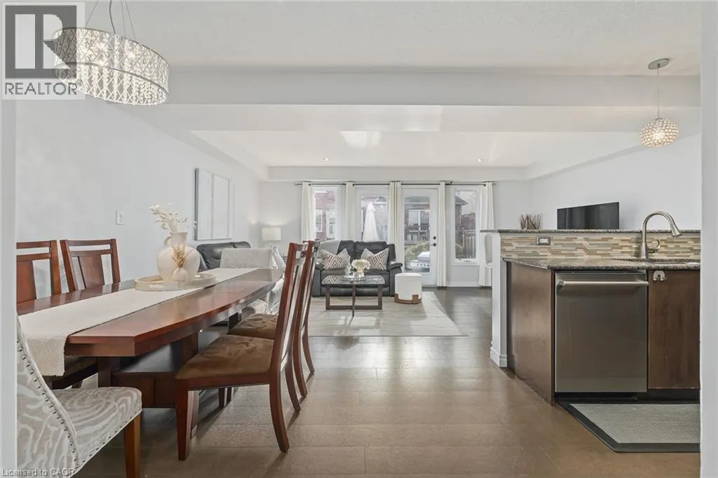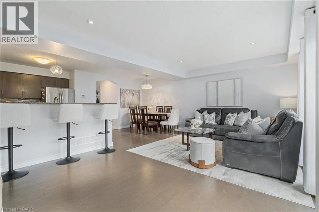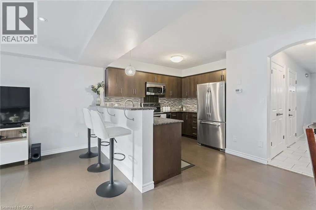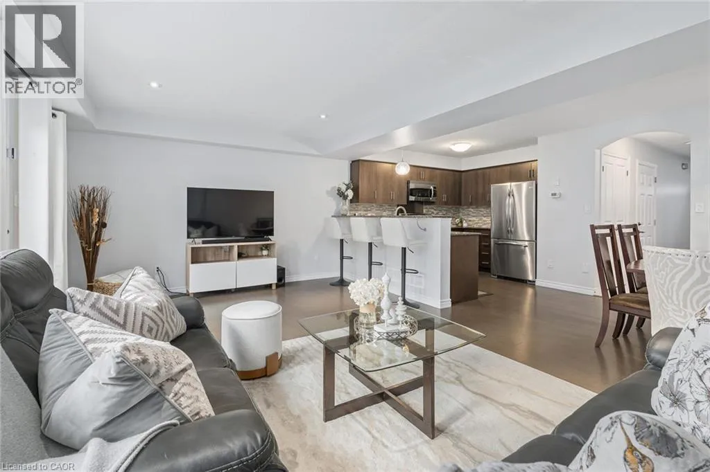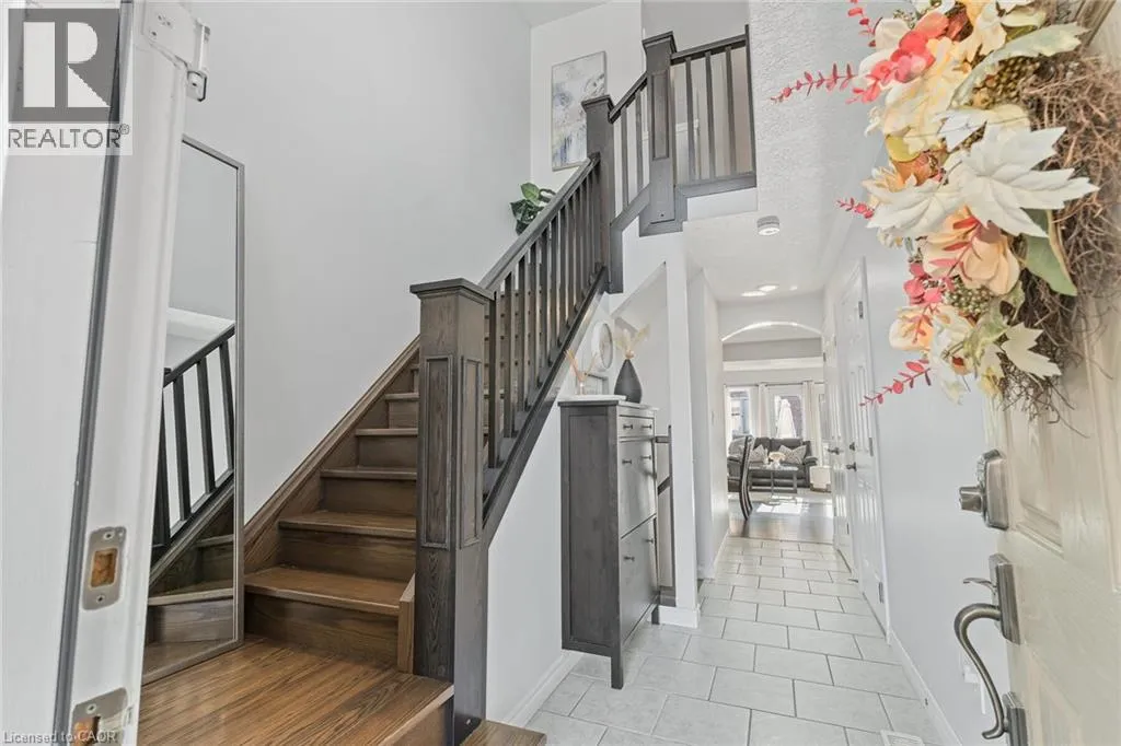Gordon St./Arkell Rd Open the front door, before you step inside, and let your eyes lead you straight ahead through the arched entranceway to a main living space overflowing with windows and natural light. As you step inside this home, you're welcomed by a soaring 17-foot ceiling that stretches from the main floor to the second level, a stunning architectural statement framed by extraordinary oak square pillars and beautiful hardwood stairs. Above, a modern light fixture draws your gaze upward, perfectly complementing the open, airy design. Continue through the open-concept living area, where you can easily walk out to your backyard patio perfect for BBQs, relaxing, and entertaining. At the end of the day, retreat to your primary suite with its 11-foot cathedral ceiling, striking chandelier, and three bright windows that welcome the fresh air. Cozy up on the built-in window bench and enjoy the best view in the complex, overlooking the trees. With an oversized walk-in closet, 3pc ensuite bathroom, second-level laundry, and spacious second and third bedrooms, there's room for everyone to live comfortably. The basement awaits your personal touch, complete with bathroom rough-in, oversized windows, and great ceiling height - the perfect canvas for your future plans. Located minutes from schools, parks, conservation areas, shopping, restaurants, and the renowned University of Guelph, this home blends design, convenience, and lifestyle into one exceptional address. (id:27476)