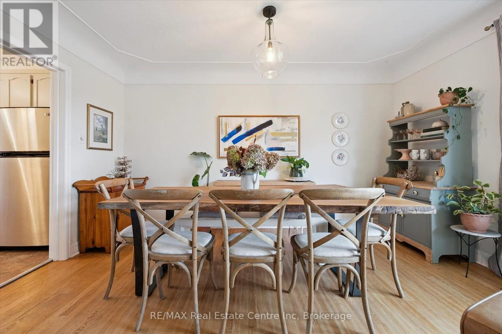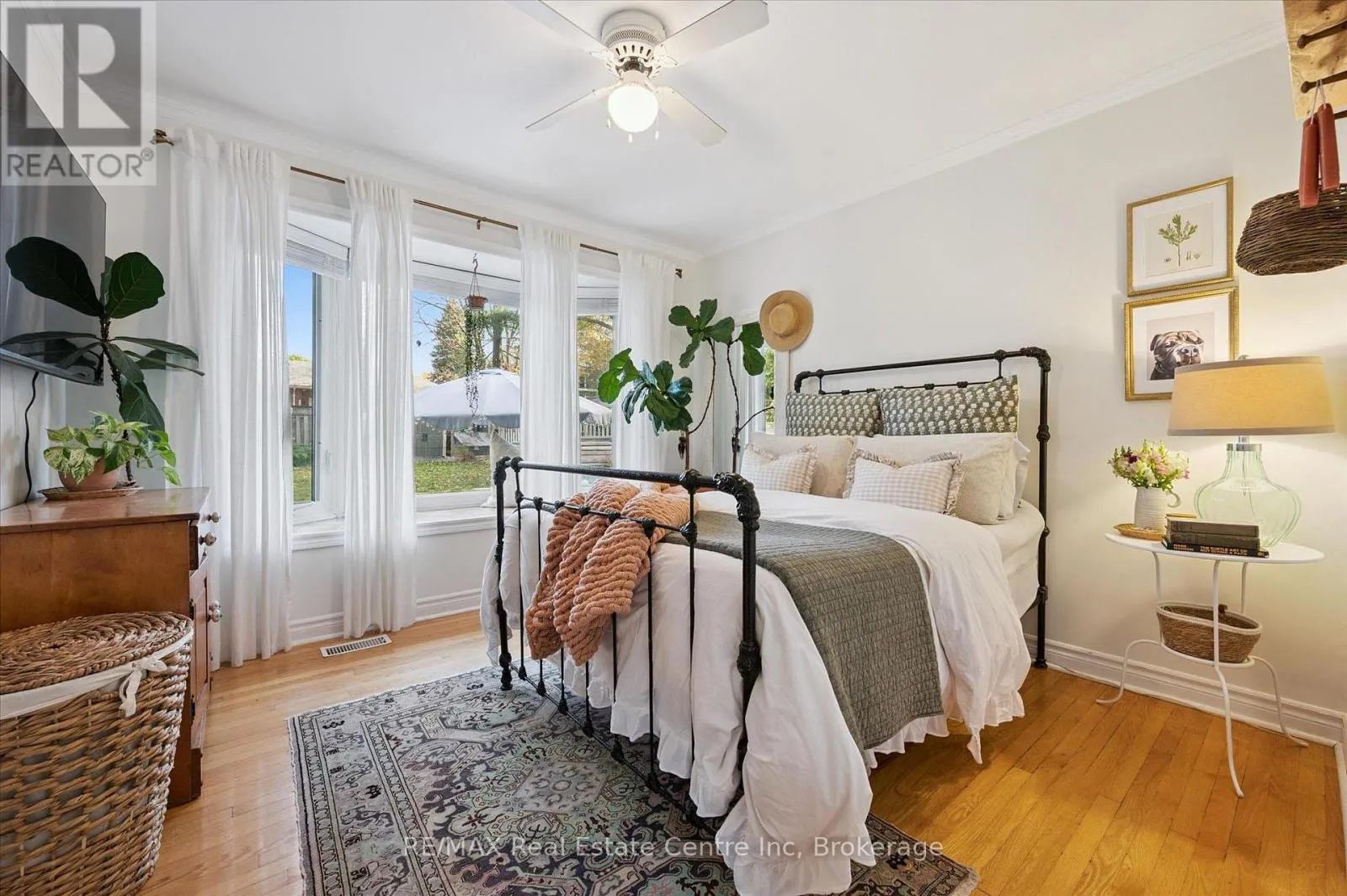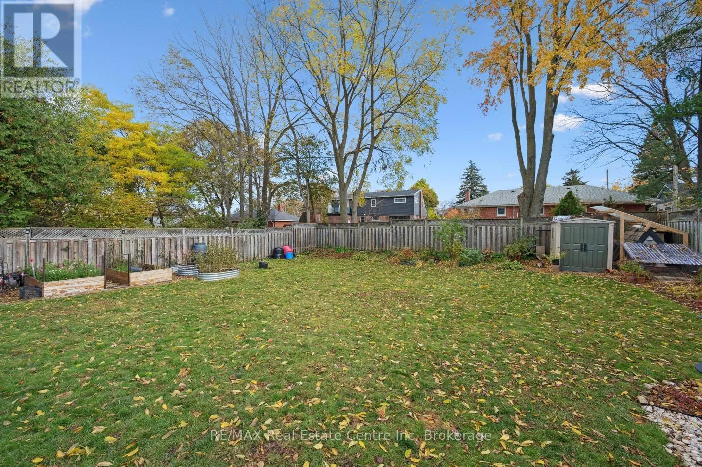 Cross Streets: Metcalfe St/Eramosa Rd. ** Directions: Metcalfe St. Welcome to 19 Cadillac Drive, a charming brick bungalow nestled on an impressive 60 x 140 ft lot in one of Guelph's most beloved neighbourhoods, St. George's Park! This warm and inviting 3-bedroom home blends timeless character with thoughtful updates and is surrounded by mature trees, beautiful gardens and serene privacy. Step inside to a bright, open-concept living and dining room, where rich hardwood floors, a massive bay window and natural sunlight create a perfect space to gather with family. The spacious kitchen offers ample counter space, two large windows and a built-in beverage fridge. All 3 generously sized bedrooms feature hardwood floors and oversized windows, sharing a beautifully renovated main bathroom complete with a modern vanity and a stunning glass walk-in shower with detailed tilework. Downstairs, a second 3-piece bathroom adds convenience and the framed basement awaits your finishing touches. The fully fenced backyard is a dream: enjoy summer barbecues on the massive patio, relax in the private hot tub or let the kids and pets run freely in the expansive grass area. Two sheds for your storage needs. Notable updates include: new HWT (2025), furnace (3 years), updated bathroom, newer roof & water softener (under 5 years), new tiled entry, central vac, and mostly updated windows (except kitchen). This unbeatable location is just around the corner from Ãcole King George and steps to St. George's Park with tennis courts, a playground and open green space. You're a short walk to downtown Guelph, where you'll find GO Transit, boutique shopping, fantastic dining and much more! Move-in ready with room to grow - 19 Cadillac Drive is the perfect place to plant roots! (id:27476)