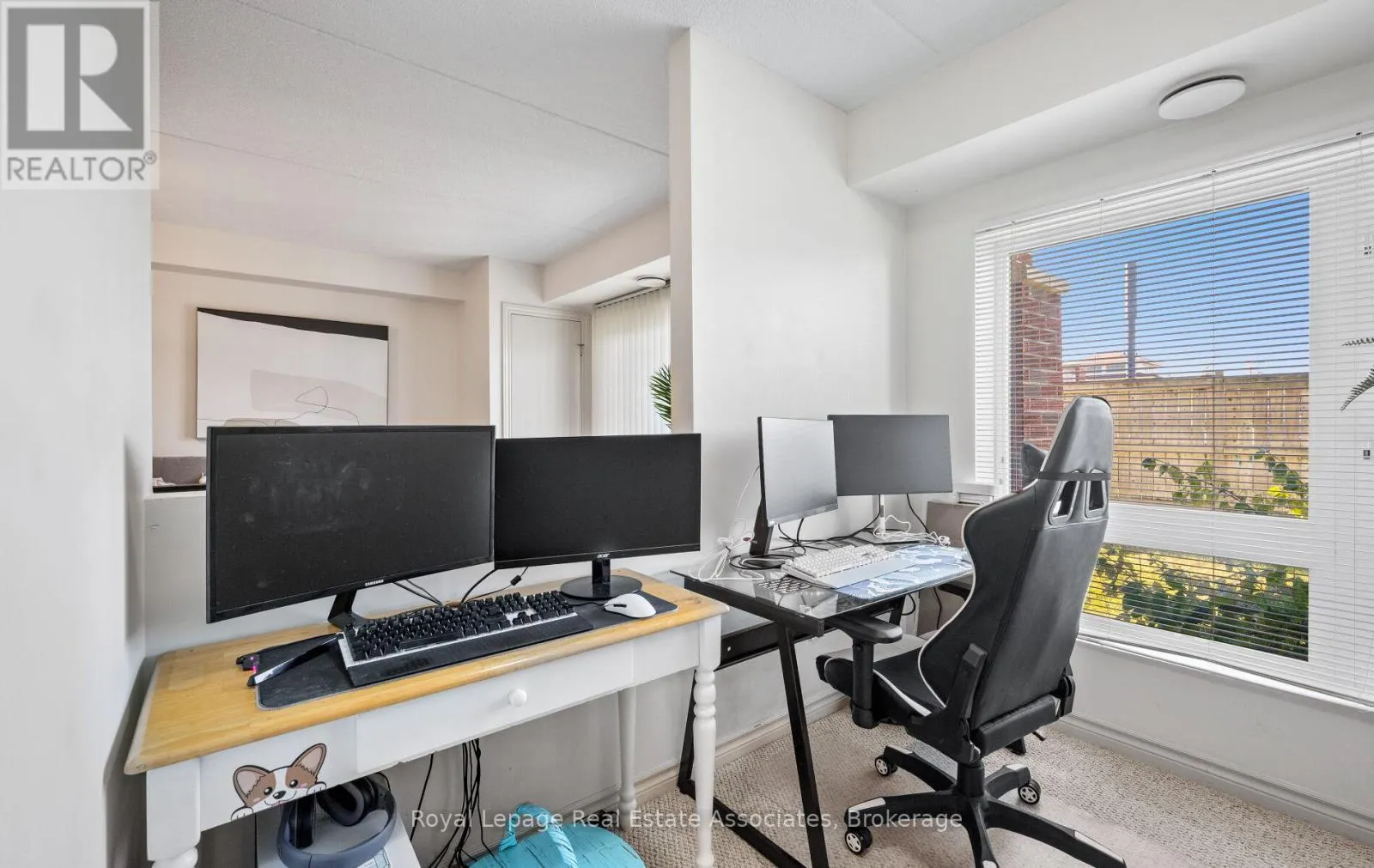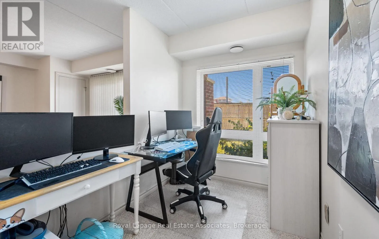Cross Streets: Gordon / Clair Rd E. ** Directions: Clair Rd E to Farley Dr. Welcome to South end of Guelph! Super convenient location within walking distance to literally everything you need and only a 10 minute drive to the 401. This 700 plus square foot condo is perfect for people who work from home as the office/den room is larger than most. You can likely put a daybed and your desk in there making it so versatile. The large primary bedroom has great closet space and can fit a king bed no problem. Since there isn't a locker, its amazing how much stuff you can fit into the large laundry room and you may be able to rent a locker thru the building. This unit is completely safe and you will love to sit outside on your extremely private and quiet patio. (no one walks by). There is easy access to the building from the additional side door of the building. Never worry about waiting for elevators in this main floor unit. Yes, there is carpet but its super clean and in mint condition which also means its so comfy on your feet especially in the winter so there's no need for slippers! Tons of restaurants, groceries, fitness clubs, shoppers, yoga, coffee shops, walking trails, parks, public transit, movie theatre and more, all within walking distance. Don't miss this opportunity! (id:27476)