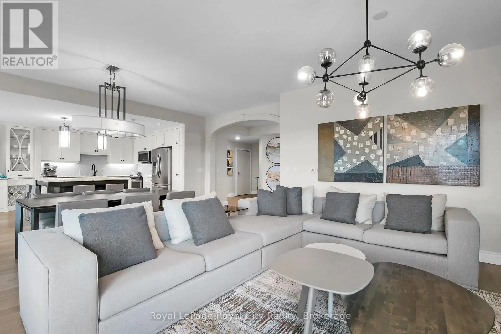 Cross Streets: Arkell & Victoria. ** Directions: Arkell East to Victoria Turn S to Bard. Fully Furnished Premium Condo Apartment For Lease. Experience luxury, space, and convenience in this immaculate top-floor corner suite, offering over 2,150 sq ft of beautifully designed living. Enjoy breathtaking sunrise and countryside views from two private balconies in this spacious 2+1 bedroom, 3-bathroom home. The open-concept layout is flooded with natural light and features a chefs kitchen with granite countertops, high-end stainless steel appliances, and an oversized island perfect for entertaining. The expansive living and dining areas offer a seamless flow, ideal for both everyday living and gatherings. The primary suite is a true retreat with its own private balcony, a massive walk-in closet, and a spa-inspired 5-piece ensuite with a separate glass shower. A generous second bedroom and a bright den or home office (optional third bedroom), 4-piece main bath, 2-piece powder room, and a full laundry room round out the floor plan. This well-maintained, quiet building offers premium amenities, including a fitness room, party room with fireplace and kitchen, inviting lobby with fireplace, dual elevators, and a top-floor communal terrace with BBQs just steps from your door. Gorgeous landscaped gardens surround the property, and you'll enjoy two underground parking spaces and a large storage locker. Located in Guelphs desirable south end, close to shopping, restaurants, Starkey Hill, and the University of Guelph. (id:27476)
