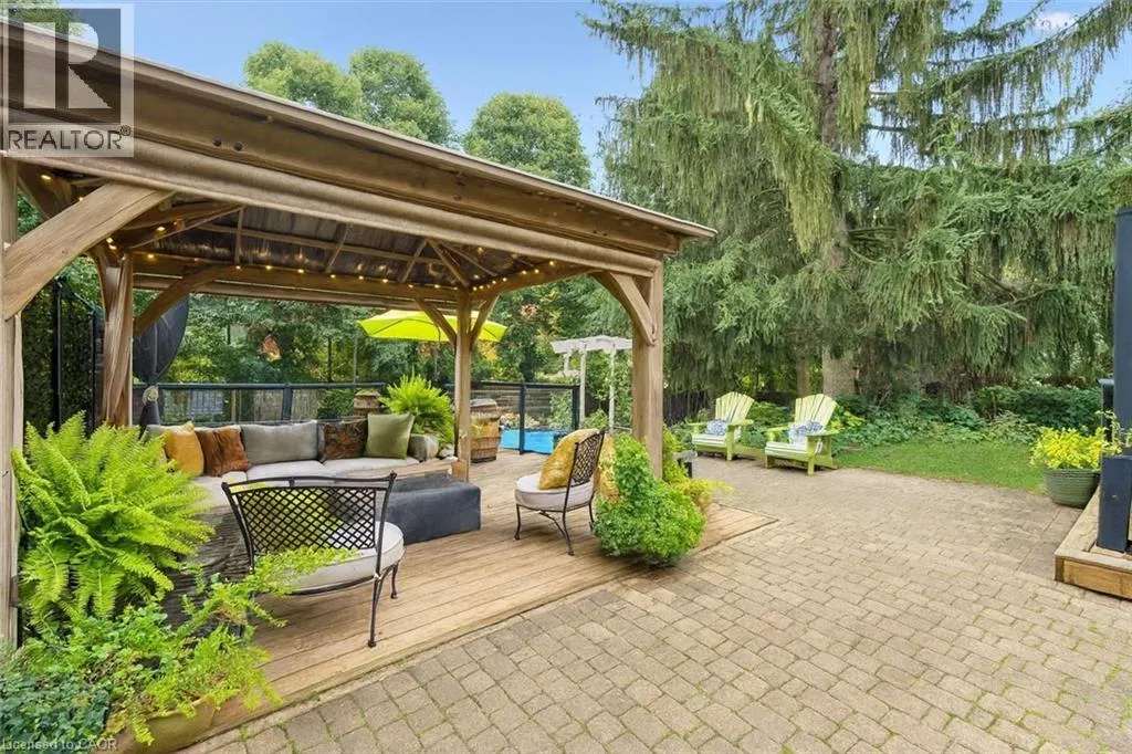 Kingsley Crt Welcome to your own private backyard oasis in one of Guelphâs most peaceful cul-de-sacs! Backing onto greenspace for true privacy this spectacular 4-bdrm home offers 20 X 40 heated inground pool & outdoor retreat designed for relaxation & entertaining. Step inside & youâll immediately notice the bright inviting layout. Living room W/luxury vinyl floors & large picture window that fills space W/natural light. Dining room W/beautiful views of backyard make every meal feel special. Kitchen W/high-end S/S appliances, lots of storage & prep space. Window above sink overlooks mature trees for peaceful backdrop. A few steps down is family room anchored by gas fireplace & sliding doors that walk out to backyard retreat. Upstairs the primary bdrm offers double his-and-hers closets & modern ensuite W/glass W/I shower. 3 add'l bdrms provide generous closet space & natural light complemented by updated 4pc bath W/subway-tile shower/tub. Professionally finished basement adds more versatility W/large rec area, workout zone & storage. Backyard is truly the star of the show! Enjoy large deck W/pergola, interlock patio, secondary deck W/gazebo & mature landscaping surrounding heated inground pool. Brand-new pool house & recently serviced mechanicals provide peace of mind. Beyond the fenced pool area, a bonus greenspace offers endless possibilitiesâroom for volleyball court, play area or future accessory dwelling unit (ADU) for extended family or rental income. Updates include: newer windows, newer electrical panel, furnace & AC (approx. 10yrs), roof (approx. 12yrs), updated bathrooms, modern light fixtures & upgraded flooring. With double garage & driveway parking is a breeze. Location is ideal for familiesâbacking onto Windsor Park, steps to Waverley Dr PS & short walk to Speedvale Centre (grocery, LCBO & more). Nearby trails & Guelph Lake offer countless ways to stay active & connected to nature. Home offers perfect blend of lifestyle, comfort & long-term value-truly a rare find! (id:27476)