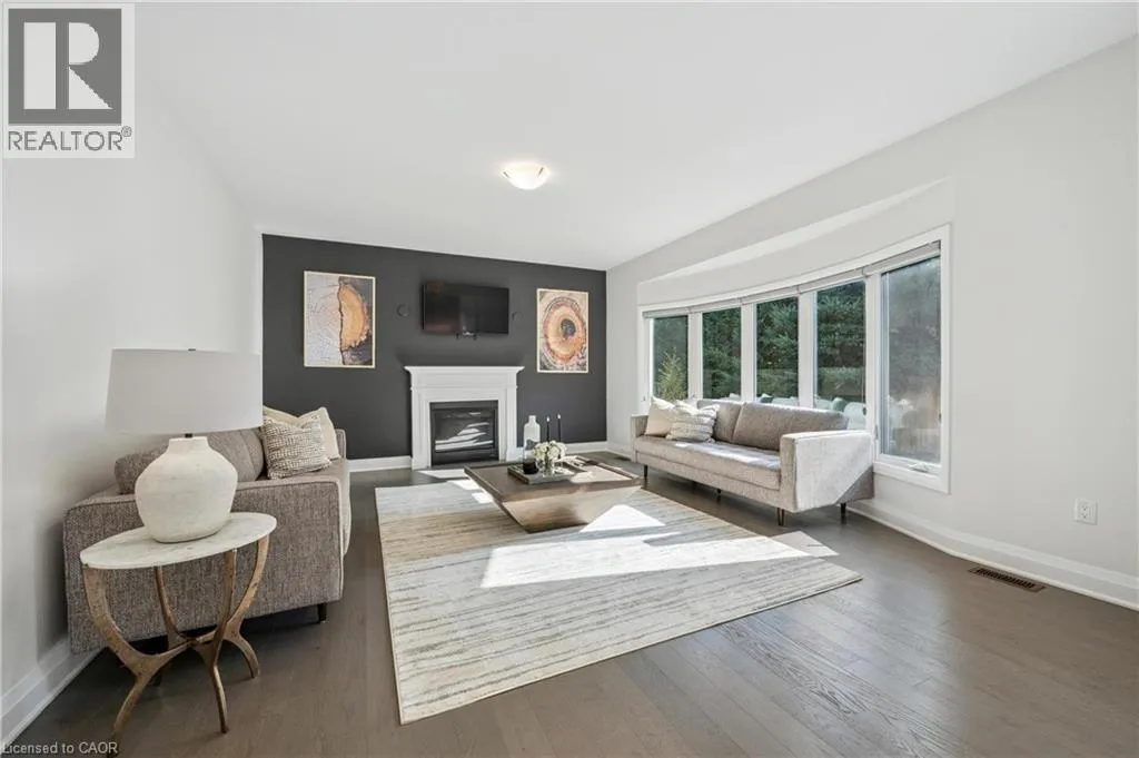 Landsdown Dr Executive home W/4-bdrm + den, 3.5-bath in prestigious White Cedar Estates-one of Guelphâs most desirable & exclusive communities! Over 3250sqft of exquisitely designed living space, this elegant & welcoming home is ideal for families who value luxury, functionality & architectural detail. As you approach stone façade, front porch & 2-car garage set a tone of timeless curb appeal. Grand foyer W/soaring ceilings & oversized tile floors open to main level where natural light pours through large windows. Living room & adjacent dining area offer cathedral ceilings & large windows. Sunken den W/dramatic ceiling height offers perfect setting for home office, creative space or kids playroom. Kitchen features oversized centre island W/quartz counters & seating for 6, modern grey cabinetry, glass tile backsplash & designer pendant lighting. Top-tier appliances: B/I bar fridge, induction cooktop, prof over-range hood & dbl wall oven. Walk-through butlers pantry offers seamless flow to dining area. Sliding doors off breakfast nook open to back deck. Great room W/hardwood, fireplace & bay window. Upstairs primary suite W/wide curved bay window & W/I closet. Ensuite W/dual vanities, quartz counters, soaker tub, glass W/I shower & makeup vanity W/seating. 3 add'l bdrms offer large closets & oversized windows. 2 bdrms are connected by Jack & Jill bathroom W/dual sinks, water closet & shower. 4th bdrm has ensuite providing privacy for guests & teen. 2nd-floor laundry room W/cabinetry, quartz counters & dbl sink. Unfinished bsmt has bathroom R/Is in place & ample sqft to create more living space, gym, rec room or in-law suite. Located on quiet street W/minimal traffic this home offers peace & privacy families crave while being mins from amenities: groceries, restaurants, gym & much more! Address falls within school districts for Ãcole Arbour Vista PS offering sought-after French Immersion & Centennial CVI one of Guelphâs top-rated high schools. Convenient access to 401 for commuters (id:27476)