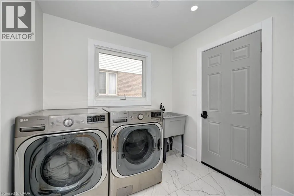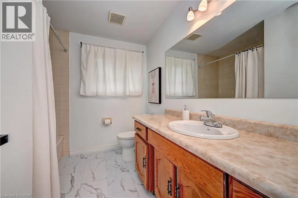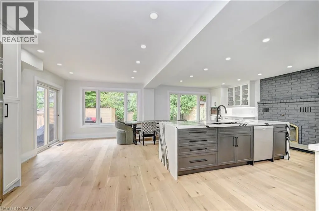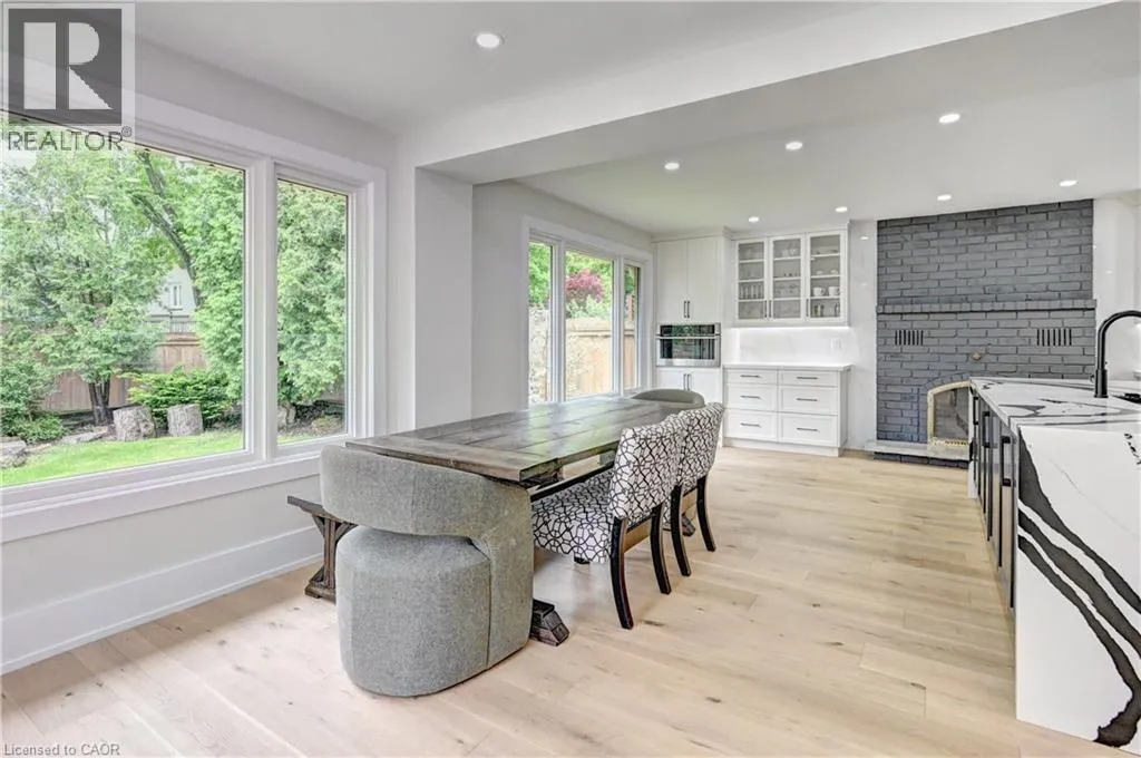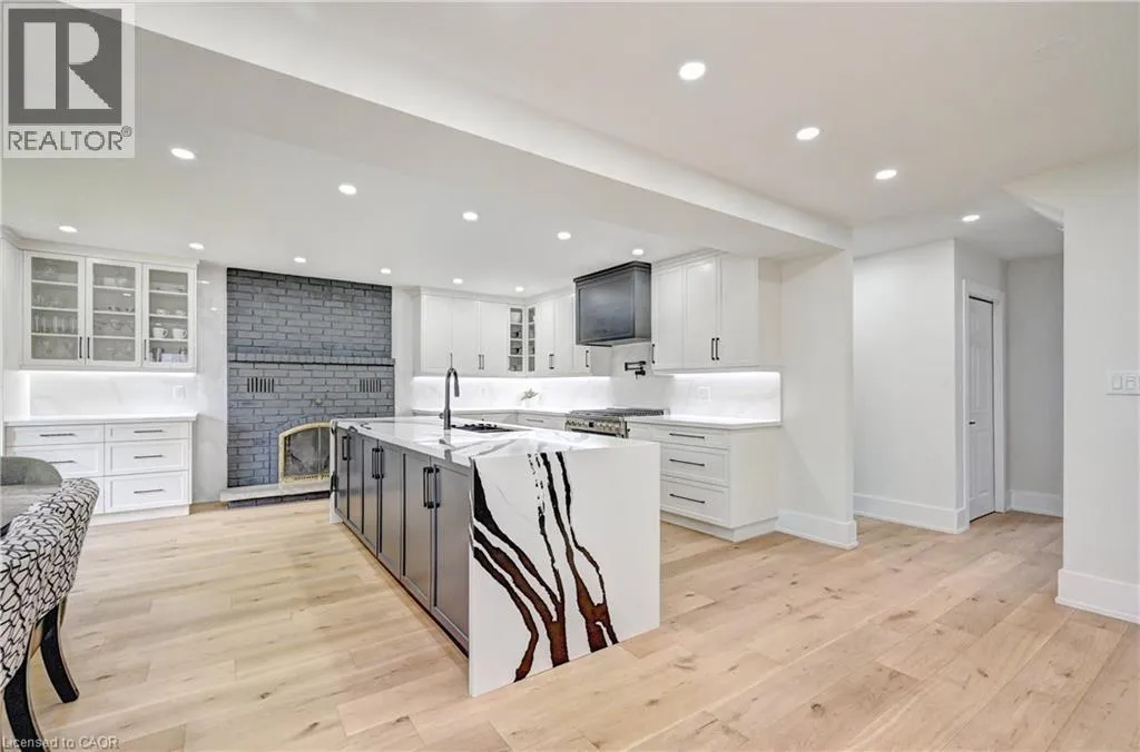 Elmira Road South and Stephanie Drive Beautifully updated home offering exceptional curb appeal with a neutral cream brick exterior, modern front door, concrete driveway, and double car garage. Inside, youâll find a spacious layout designed for both everyday living and entertaining. The heart of the home is the chef-inspired kitchen, fully upgraded in 2024, featuring a side-by-side refrigerator and freezer, six-burner gas stove with pot filler, built-in microwave, quartz countertops and backsplash. The main floor has beautiful engineered hardwood and ceramic flooring throughout, the striking wood staircase with glass railing, also updated in 2024, sets a modern tone. Convenient main floor laundry with a gas dryer adds everyday functionality. Upstairs, retreat to the oversized primary suite complete with a walk-in closet and spacious ensuite bath. Generously sized bedrooms and bathrooms provide comfort for the whole family. The fully finished basement extends your living space with endless possibilities for a future home theatre, gym, office, or play area. Step outside to your private backyard oasis! Enjoy a stamped concrete patio, a deck with privacy wall (2023), a hydro pool, gas line for barbecue and future fire pit, and a fully fenced yard (2020). The roof was replaced in 2019, offering peace of mind for years to come. This home blends timeless charm with modern updatesâtruly a must see! (id:27476)