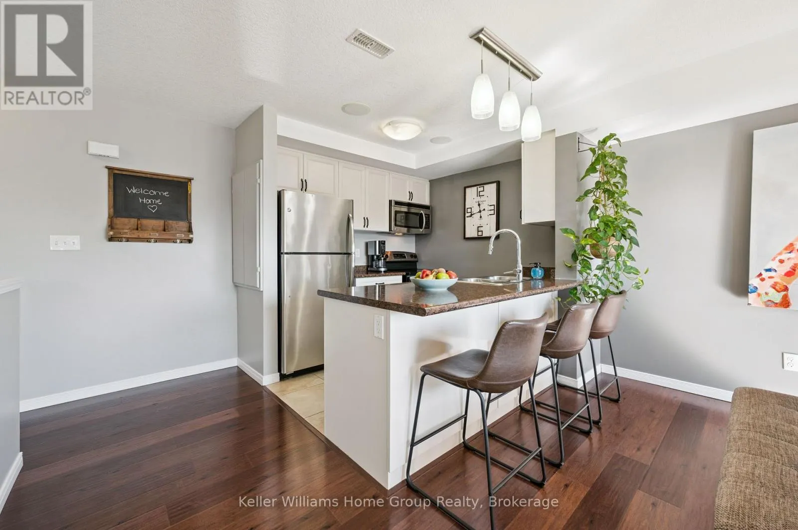 Mountford Drive and Hadati Early Black Friday Sale!! Exceptionally maintained 3 bedroom stacked townhome in Guelphs East End! One of the most sought-after floorplans in the complex. This 3 bed, 1.5 bath unit is a perfect blend of comfort, space, light, and functionality. From sunrise to sunset, natural light fills this home. Enjoy the outdoors from not one, but three private balconies, perfect for morning coffee or evening relaxation. The spacious kitchen and dining areas flow seamlessly with room for a full dining room table, barstools and powder room off the dining area. Upstairs you're welcomed by a large family room and three generous bedrooms and a well-appointed full bath. With two parking spots, exceptional upkeep, upper laundry, on demand water heater, wiring for surround sound and ceiling speakers in the kitchen, this home has it all. Steps to Peter Misersky Park, schools, Victoria Road Recreation Centre, Guelph Lake sports fields, and scenic hiking trails, this is a property that offers both tranquility and convenience. (id:27476)
