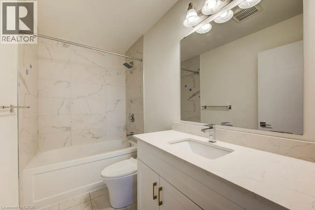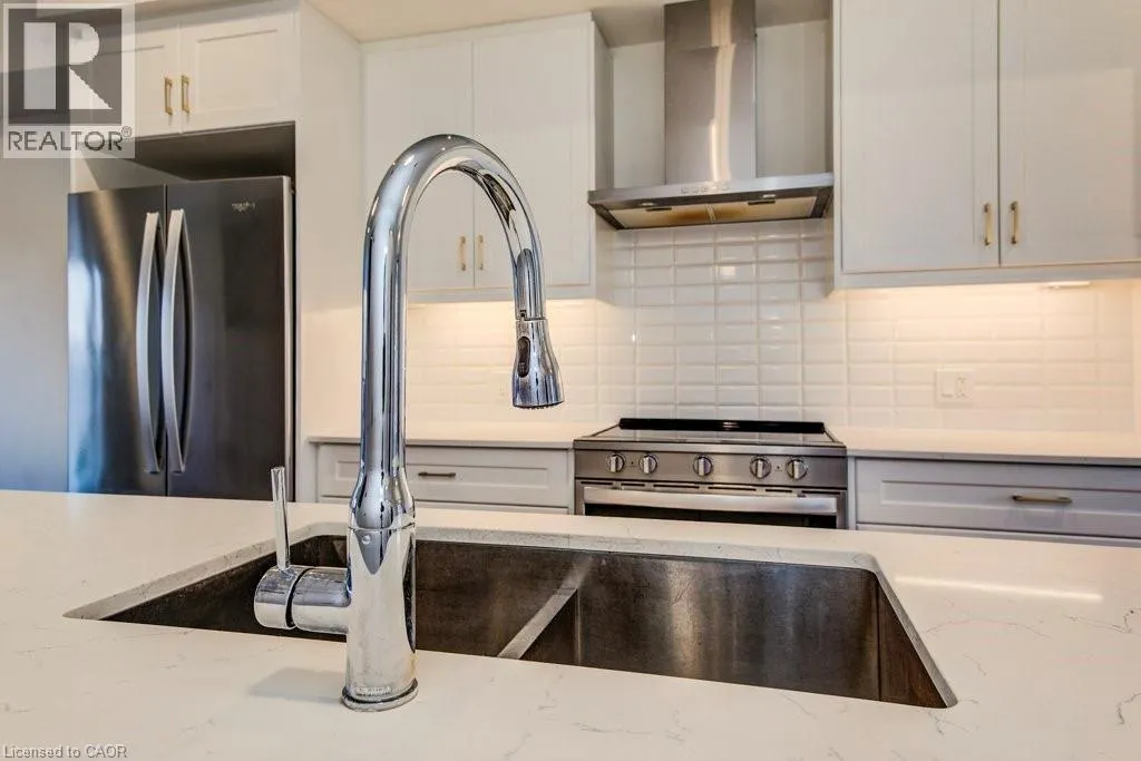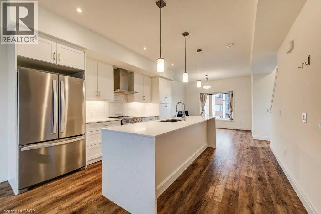 From Clair Road West, turn north onto Gosling Gardens. Continue straight and turn right onto Lily Lane â property is on the left-hand side. Welcome to 4 Lily Lane, Guelph â a beautifully upgraded townhome in the desirable Pulse Towns community. With roughly $30,000 in builder upgrades, this 3-bed, 3-bath home blends modern design with everyday comfort. The stunning kitchen features an extended 10-foot island with quartz gables, Carrera White quartz countertops, all-white soft-close cabinetry with dovetail drawers, a gas stove rough-in, fridge water line, and a tiled backsplash. Enjoy carpet-free living with 7 mm AquaPlus luxury vinyl plank flooring throughout, including the stairs. Bathrooms are finished with quartz vanities, one-piece toilets, and upgraded fixtures. Added touches include pot lights in the living, dining, and primary bedroom, a custom walk-in closet organizer, and a frosted glass front door for privacy and style. Built by Marann Homes, this turnkey property offers premium finishes, thoughtful upgrades, and a prime location close to parks, schools, and amenities. (id:27476)