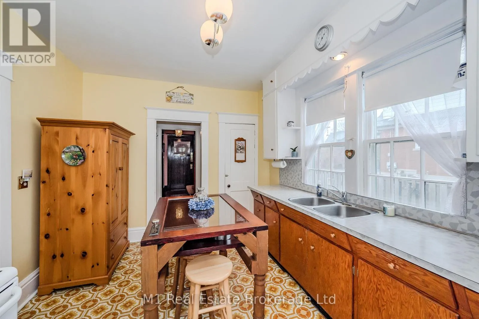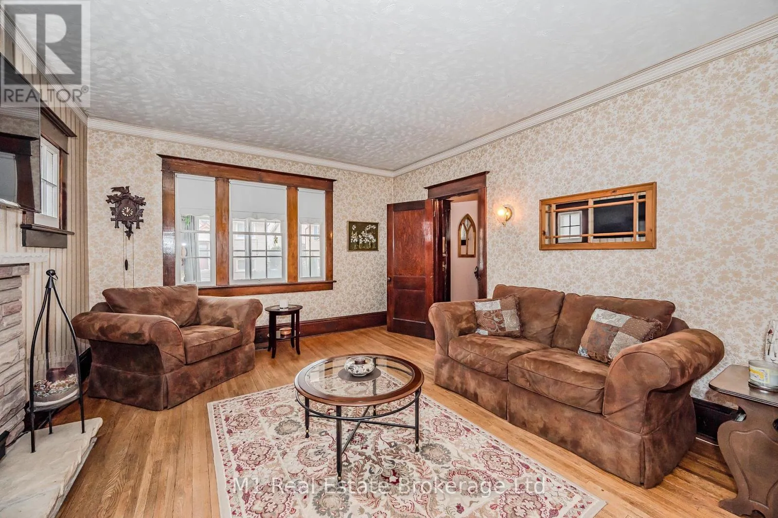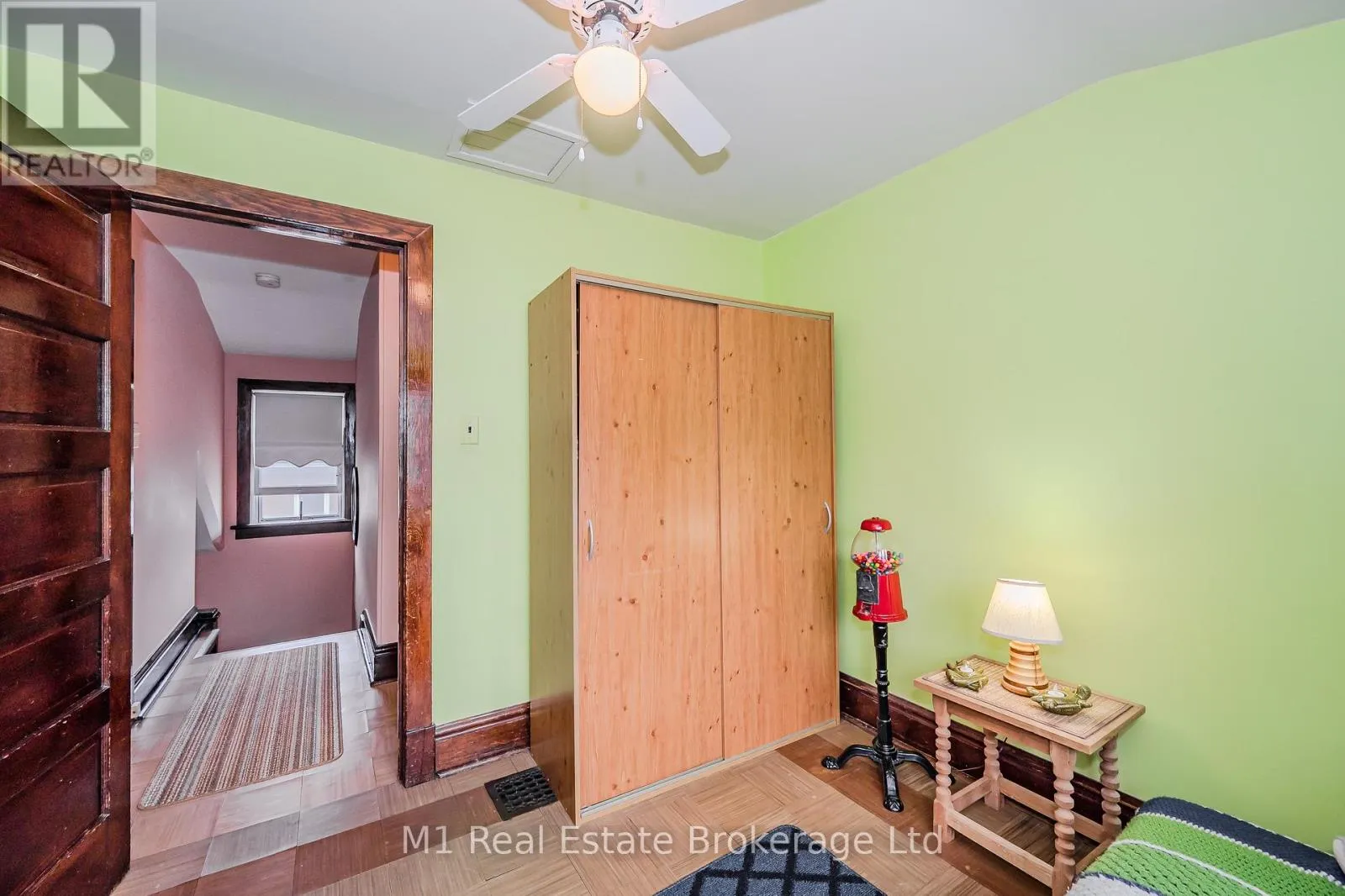 Cross Streets: Woolwich. ** Directions: Take Woolwich St and turn West on Verney St. Step into timeless character and modern comfort with this delightful 1 1/2 storey charming red brick home, nestled in the sought-after Exhibition Park neighbourhood. Offering 3 spacious bedrooms and 1 full bathroom, this home is full of warmth, charm, and personality. You'll love the inviting layout, featuring unique architectural details, original hardwood accents, and plenty of natural light. One of the standout features is the inviting covered 3-season porch, the perfect spot for morning coffee, evening chats, or simply enjoying the peaceful surroundings. Out back, a newer-built detached garage is an impressive addition, fully equipped with central vacuum, making it an ideal space to care for your vehicles or set up a workshop. Parking for up to 4 cars is a huge bonus in this neighbourhood. Perfect for families, first-time buyers, or anyone looking to enjoy a vibrant, walkable neighbourhood rich in history and community spirit.Located just steps from parks, schools, trails, and downtown amenities, this home offers both charm and convenience in one of Guelph's most desirable areas. All furnishings in the home can be included. (id:27476)