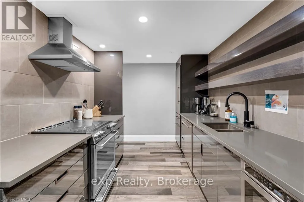 Elizabeth St to Arthur St South One bedroom plus den at the Metalworks overlooking the river! The lease price also includes one underground parking space (second spot also available for an additional $200 per month), a private storage locker, water usage, and use of all building amenities. Tenant to pay for electricity. The unit features an upgraded kitchen with an island, and the den serves as a perfect office/guest bedroom. Amenities include a gym, pet spa, concierge service, bocci ball court, library, entertainment room, guest suite, speakeasy, natural gas fire pit, and private courtyards. Also, a great location for commuters with the ever-expanding train service to Toronto. Available now for a one-year lease. (id:27476)