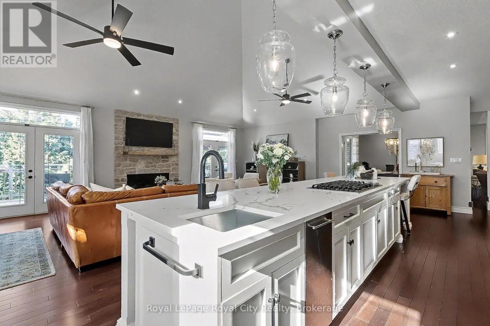 Zaduk Pl. and Sweeney Dr. Nestled on a quiet cul-de-sac, this exceptional Sloot Home offers refined luxury, thoughtful design, and unparalleled versatility with an 1,100sq.ft. legal 2-bedroom apartment. From the moment you arrive, the custom hardscaping and landscaping set an elegant tone, leading to a home that blends sophistication and comfort. The stunningly updated kitchen is a true showpiece, flaunting Bamco cabinetry, quartz countertops, built-in appliances, and a contrasting island with a gas cooktop and seating, all complemented by a walk-in pantry. The kitchen flows effortlessly into the family room, where Brazilian dark hardwood flooring, vaulted ceilings, and a stone-surround gas fireplace create a warm ambiance. From here, walk out to the expansive upper deck, perfect for outdoor dining or relaxation. The main level offers 9' ceilings enhancing the sense of space in the formal dining room, living room, and office space. Everyday convenience is elevated with a main floor mudroom and powder room. Upstairs, the primary suite is complete with a 4pc ensuite with deep soaker tub, a double-sided fireplace, a spacious walk-in closet, and exclusive access to a 12'x16' deck. This level also includes a custom AV room with wet bar (perfect for movie nights or entertaining), 3 additional bedrooms (2 with walk-in closets), a 4pc bathroom, and a convenient laundry room. The walk-out basement expands the home's functionality with an office, gym, and 4pc bathroom, while providing separate access to the legal 2-bedroom apartment. Designed with quadruple in-ceiling soundproofing, this self-contained unit includes in-suite laundry and access to the backyard, ideal for multi-generational living or rental income. Step outside to a fully fenced backyard oasis, featuring an 18' heated saltwater pool, patio, and a covered hot tub area with barn doors and windows for year-round enjoyment. Every inch of this property has been crafted for elegance and effortless living, creating a truly remarkable home. (id:27476)