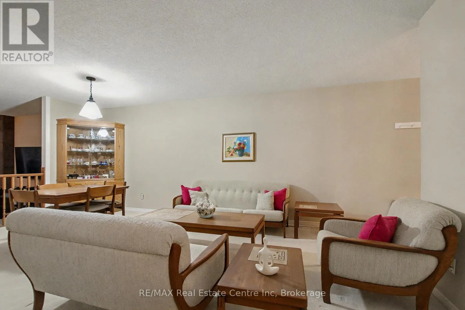 Cross Streets: Woodlawn/Woolwich. ** Directions: From highway 7 head south onto Woolwich. Turn left onto Marilyn Drive. Welcome Home. This spacious 2 storey town home offers much more than you might expect. With an open concept main floor, complete with large dining room, cozy family room with walk out to deck overlooking mature trees. The spacious primary bedroom has a separate sitting area,vaulted ceilings,walk-in closet and it's own ensuite bathroom. The 2 other bedrooms are spacious and one has it's own wall to wall built in bookshelves. The second level is complete with main, 4piece bathroom. The fully finished basement for entertaining or hobbies complete with walk out to private covered patio. You can't beat the location. Just steps to all Riverside Park has tooffer including the iconic train and carousel. You can also walk to many area amenities including the Evergreen Seniors Centre, shopping, restaurants, and the Speed River trail system. Don't miss your opportunity to see this fabulous home (id:27476)