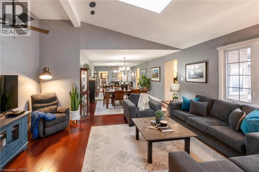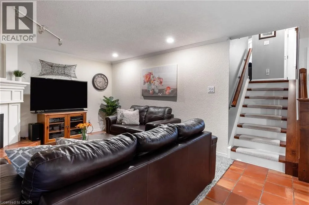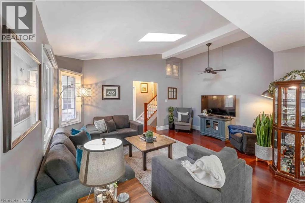 Country Club Dr Rarely offered 4-bdrm executive split-level townhome backing onto greenspace in coveted River Ridge enclave-mature community where homes are so loved they seldom hit the market! Steps from Guelph Country Club & Royal Rec Trail, some of Guelphâs most scenic walking & biking trails, this renovated home blends privacy of nature W/convenience of urban living. With over 4 finished levels this home offers flexible space for growing families, work-from-home professionals, downsizers or those looking for multigenerational potential. Kitchen W/custom cabinetry W/glass display uppers, B/I wine rack, large pantry, S/S appliances, quartz counters & backsplash, pendant lighting & island W/bar seating. DR W/hardwood & bay window. 2-storey LR is bathed in natural light from expansive windows. Versatile main floor bdrm offers flexibility for guests or remote work. Upstairs primary bdrm offers bay window & renovated ensuite W/quartz vanity, makeup/prep counter & W/I shower. Another large bdrm & updated 4pc bath round out 2nd level. On lower level (above grade) enjoy FR W/fireplace & oversized windowsâideal for relaxing, entertaining or converting to your dream studio, gym or creative space. Finished bsmt adds 4th bdrm, bonus room/den, 3pc bath & storage room. Private front courtyard offers perfect spot for morning coffee or winding down while the 10 X 16 deck provides add'l outdoor space for relaxing & entertaining. Rare 2-car garage W/interior access & lots of visitor parking. Major exterior updates: windows, doors, roof & updated deck within last 5yrs. Freshly painted in last 5yrs & California shutters & blinds throughout. Newer appliances: 2023 LG fridge, 2020 Maytag DW, 2022 LG washer/dryer, Maytag dbl oven & new HWT & softener. Condo corp takes care of everything: roof, windows, doors, deck, patios & exterior maint. River Ridge residents enjoy heated outdoor pool, tennis & pickleball courts! River Ridge is not just a place to live, itâs a community people stay in for decades. (id:27476)