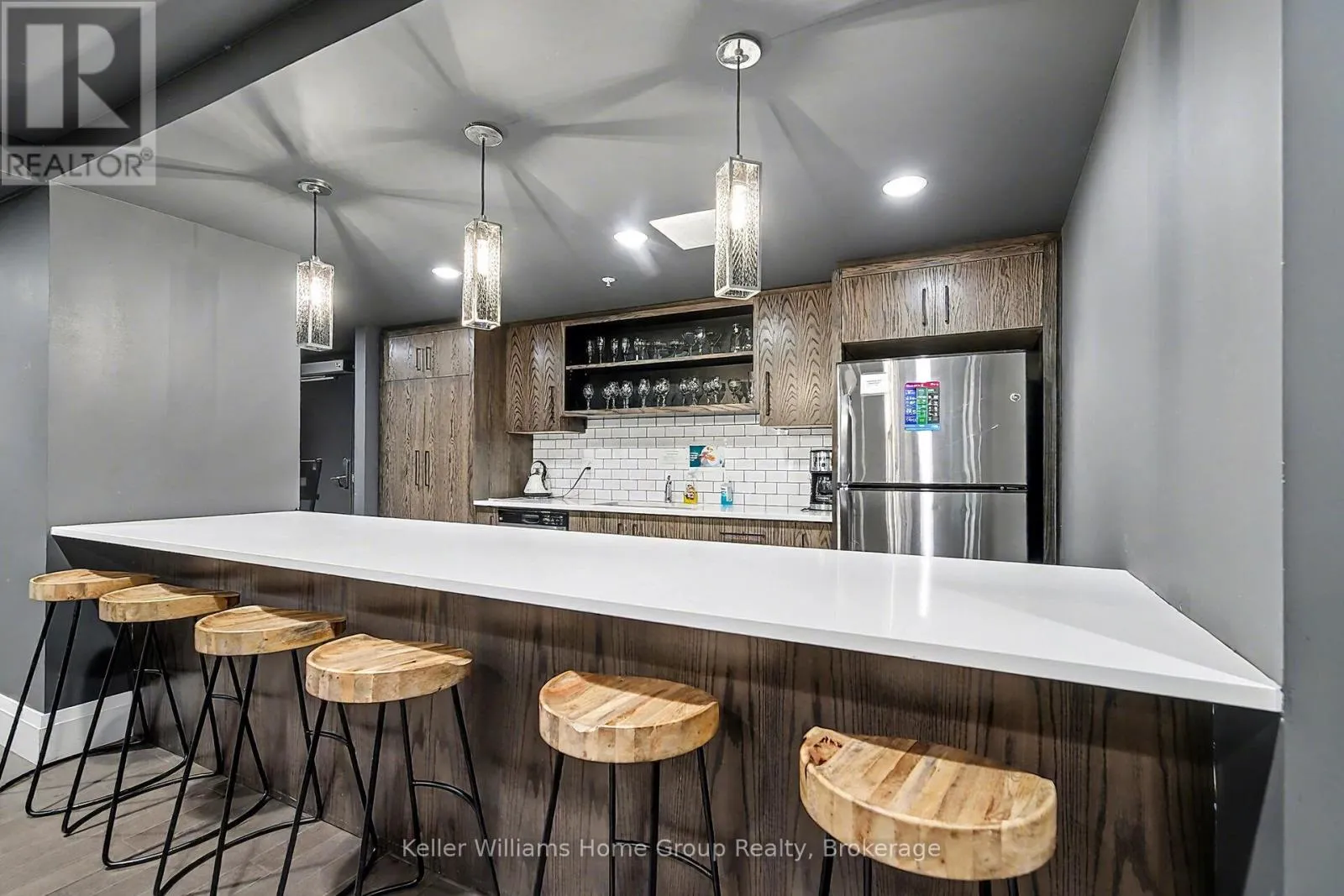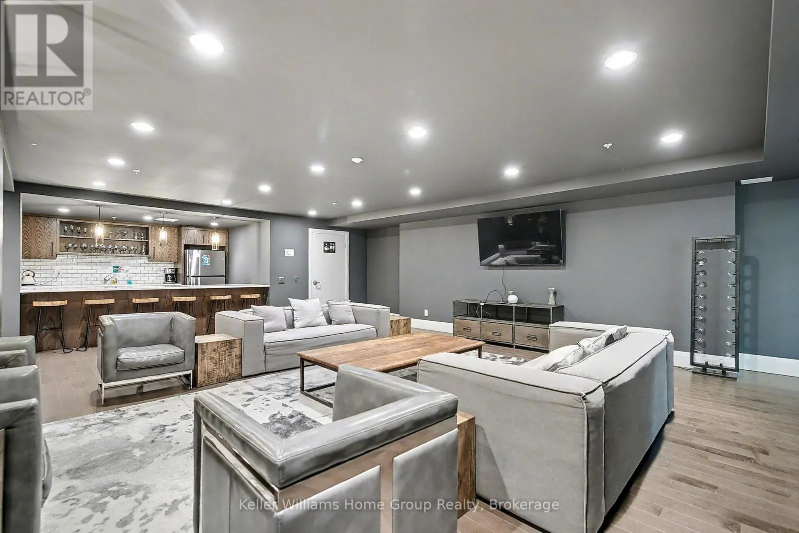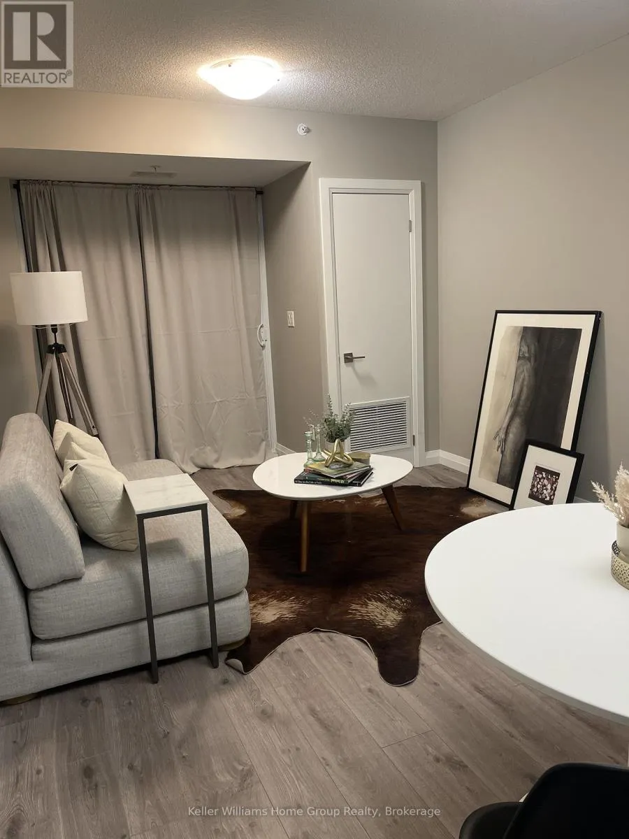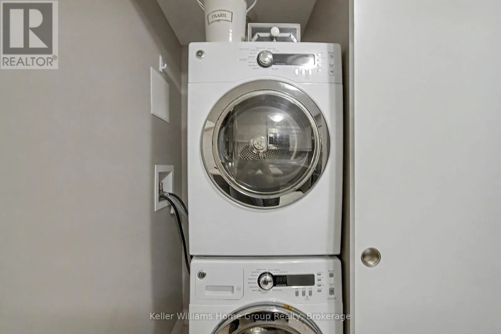 Cross Streets: Arthur and Elizabeth. ** Directions: East on Elizabeth and South on Arthur. second building on the Right. It's not just a condo, it's a lifestyle! This bright 1-Bedroom, 1-Bathroom suite at The Metalworks in Downtown Guelph offers turnkey urban living for First-time buyers or Downsizers with premium amenities and low condo fees. The open-concept layout features large windows, a modern kitchen with quartz countertops and stainless steel appliances, and a spacious living and dining area that flows to a private balcony for morning coffee or evening relaxation. The bedroom has ample closet space, and the full bathroom and in-suite Laundry add convenience. The unit includes one parking space with a private bike rack and a storage locker. Residents enjoy a fully equipped Fitness centre, Party rooms with full kitchens, perfect for family gatherings, engagement parties, baby showers, or casual get-togethers, lounges, the Copper Club speakeasy-style lounge, landscaped courtyards with BBQs, fire pits, a Bocce ball court, Guest suites, a pet spa, Concierge service, Secure entry, and Visitor parking. This building has Wheelchair Accessible features. Steps from fantastic restaurants, cafes, shops, markets, nightlife, River Run Centre events, Friday night Guelph Storm games, and scenic Speed River trails, this home combines convenience with lifestyle. GO Transit, VIA Rail, major roads, and the University of Guelph are easily accessible. Just a short walk away, The Ward Bar at Spring Mill Distillery offers handcrafted cocktails in a historic setting. Built in 2019, The Metalworks blends modern design with historic character, offering one of Guelph's most sought-after downtown addresses. (id:27476)