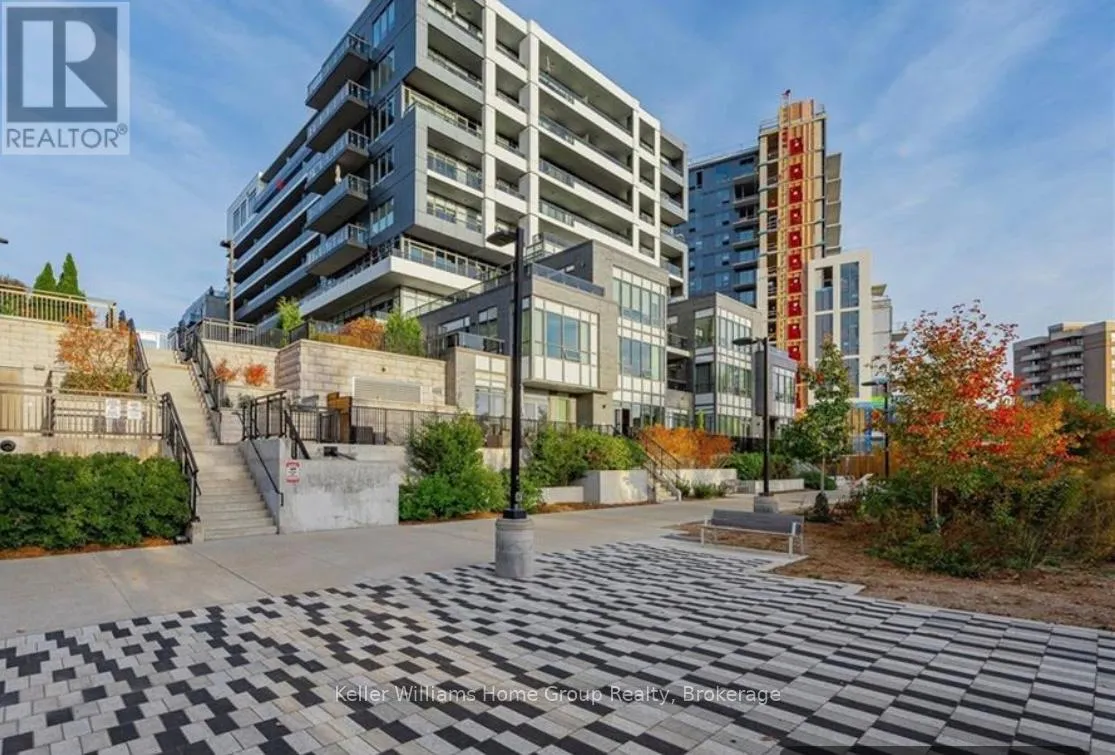 Cross Streets: Arthur and Elizabeth. ** Directions: East on Elizabeth and South on Arthur. second building on the Right. The Studio at 63 Arthur Street South - it's not just a condo, it's a lifestyle. Located in the highly sought-after Metalworks community in Downtown Guelph, this bright, beautifully finished 1-bedroom, 1-bathroom suite offers turnkey urban living ideal for empty nesters, downsizers, and first-time buyers seeking comfort, style, and low-maintenance convenience. A standout feature of this suite is the owned underground parking space with two bike racks and owned underground storage locker - a highly desirable combination for buyers who value convenience, security, and practical downtown living. Inside, expansive windows fill the space with natural light, while the contemporary kitchen features quartz countertops, stainless-steel appliances, and a spacious island with abundant storage. The open-concept living and dining area extends to a private terrace-level patio overlooking the courtyard, perfect for morning coffee, relaxing outdoors, or easy entertaining. The terrace-level location offers added appeal, with easy access to the party rooms and guest suites, plus convenient weather-protected access to building amenities through the underground parking area. The bedroom offers generous closet space, while the full bathroom and in-suite laundry add everyday comfort and functionality. Residents enjoy an impressive selection of amenities, including a fully equipped fitness centre, party rooms with full kitchens, lounges, the Copper Club speakeasy-style lounge, landscaped courtyards with BBQs and fire pits, a bocce ball court, guest suites, a pet spa, concierge service, secure entry, underground visitor parking, and wheelchair-accessible features. Just steps from restaurants, cafés, shops, markets, nightlife, River Run Centre, Speed River trails, transit, and the University of Guelph, this home offers the perfect blend of downtown energy and everyday ease. Built in 2019, The Metalworks blends modern design with historic character in one of Guelph's most desirable addresse (id:27476)