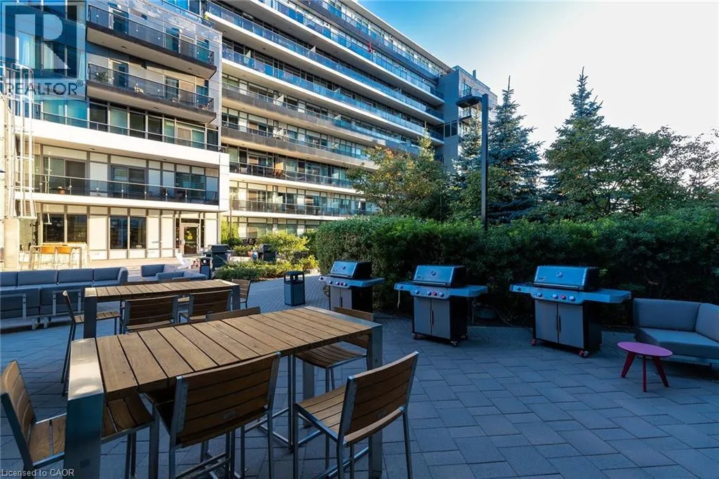 East on Elizabeth and South on Arthur. second building on the Right It's not just a condo, it's a lifestyle! This bright 1-bedroom, 1-bathroom suite at The Metalworks in Downtown Guelph offers turnkey urban living with premium amenities. The open-concept layout features large windows, a modern kitchen with quartz countertops and stainless steel appliances, and a spacious living and dining area that flows to a private balcony for morning coffee or evening relaxation. The bedroom has ample closet space, and the full bathroom and in-suite laundry add convenience. The unit includes one parking space with a private bike rack and a storage locker. Residents enjoy a fully equipped fitness centre, a party room with a full kitchen perfect for family gatherings, engagement parties, baby showers, or casual get-togethers, lounges, the Copper Club speakeasy-style lounge, landscaped courtyards with BBQs, fire pits, a bocce ball court, guest suites, a pet spa, concierge service, secure entry, and visitor parking. Steps from fantastic restaurants, cafes, shops, markets, nightlife, River Run Centre events, Friday night Guelph Storm games, and scenic Speed River trails, this home combines convenience with lifestyle. GO Transit, VIA Rail, major roads, and the University of Guelph are easily accessible. Just a short walk away, The Ward Bar at Spring Mill Distillery offers handcrafted cocktails in a historic setting. Built in 2019, The Metalworks blends modern design with historic character, offering one of Guelph's most sought-after downtown addresses. This unit is perfect for a senior or physically challenged person (id:27476)