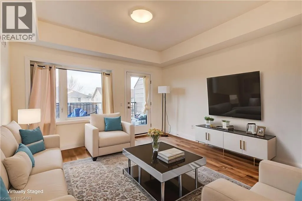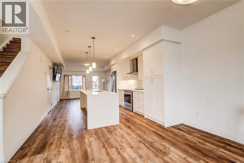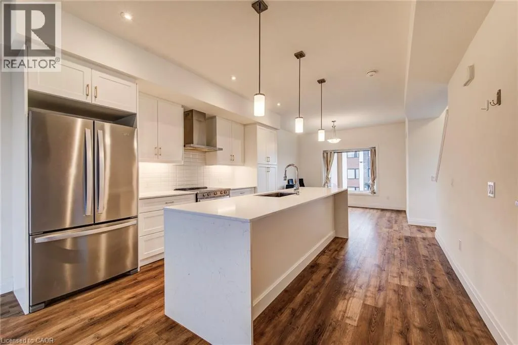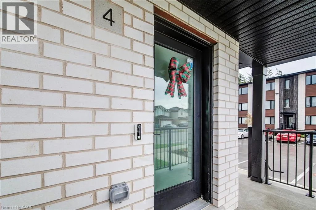 From Clair Road West, turn north onto Gosling Gardens. Continue straight and turn right onto Lily Lane â property is on the left-hand side. Welcome to 4 Lily Lane, Guelph â a beautifully upgraded townhome in the desirable Pulse Towns community. With roughly $30,000 in builder upgrades, this 3-bed, 3-bath home blends modern design with everyday comfort. The stunning kitchen features an extended 10-foot island with quartz gables, Carrera White quartz countertops, all-white soft-close cabinetry with dovetail drawers, a gas stove rough-in, fridge water line, and a tiled backsplash. Enjoy carpet-free living with 7 mm AquaPlus luxury vinyl plank flooring throughout, including the stairs. Bathrooms are finished with quartz vanities, one-piece toilets, and upgraded fixtures. Added touches include pot lights in the living, dining, and primary bedroom, a custom walk-in closet organizer, and a frosted glass front door for privacy and style. Built by Marann Homes, this turnkey property offers premium finishes, thoughtful upgrades, and a prime location close to parks, schools, and amenities. 13 minute bus ride to University of Guelph and all it's nearby amenities. (id:27476)