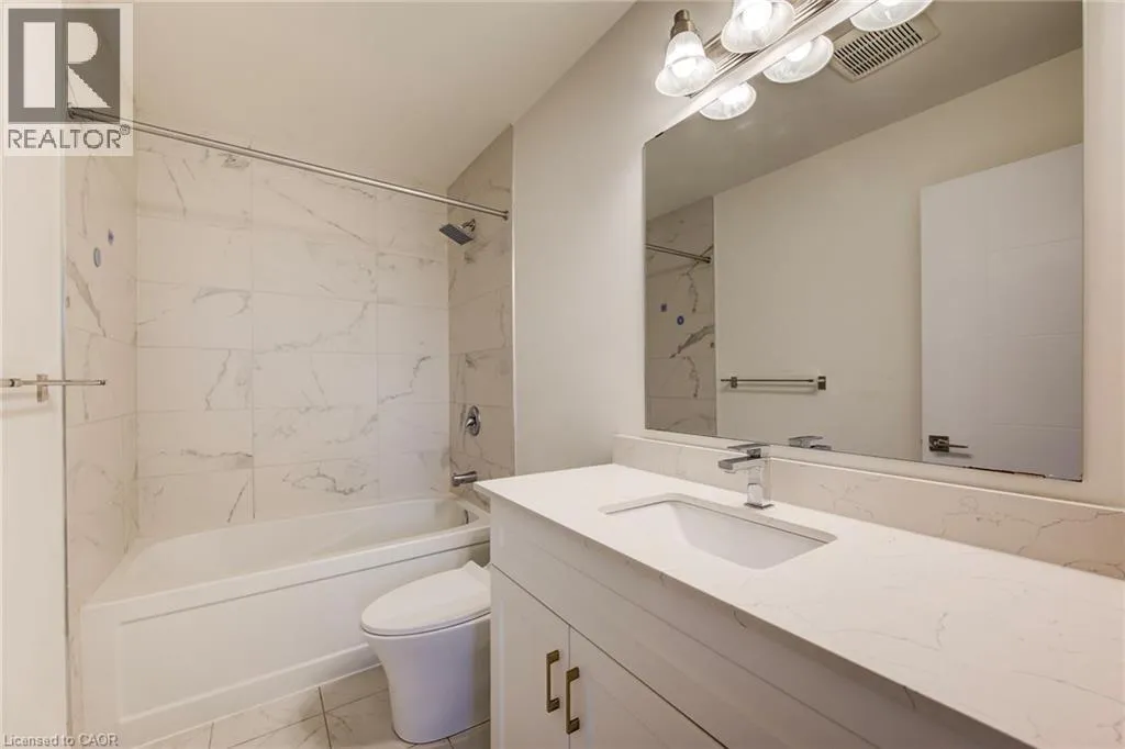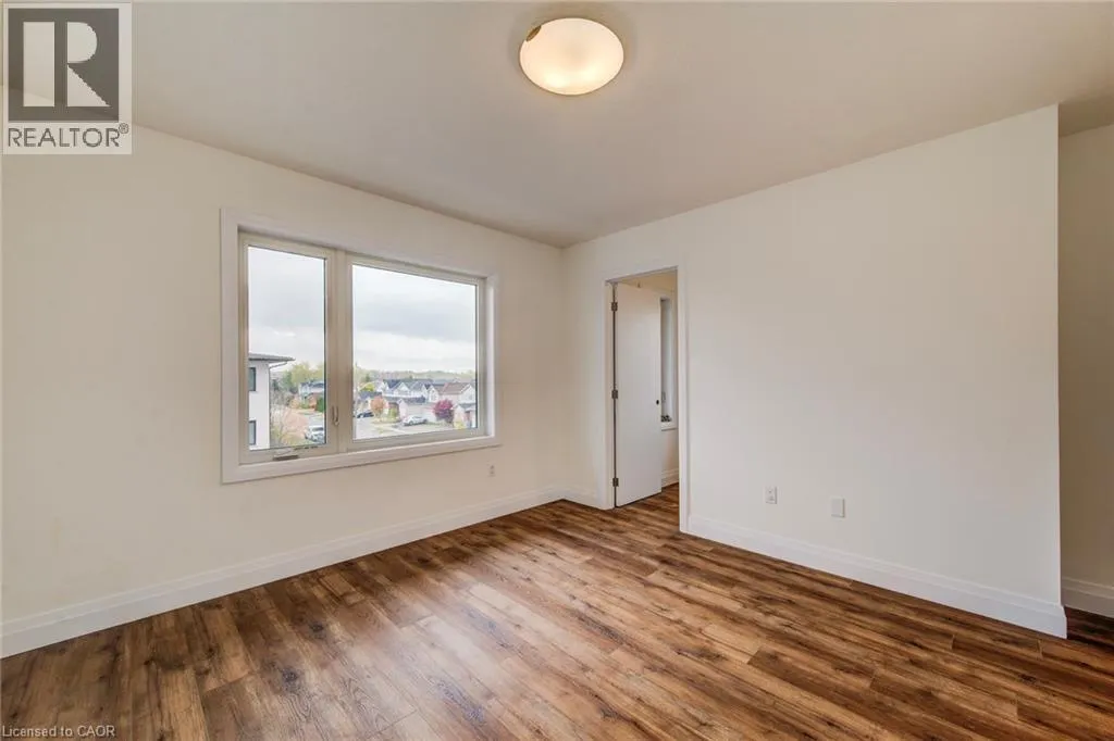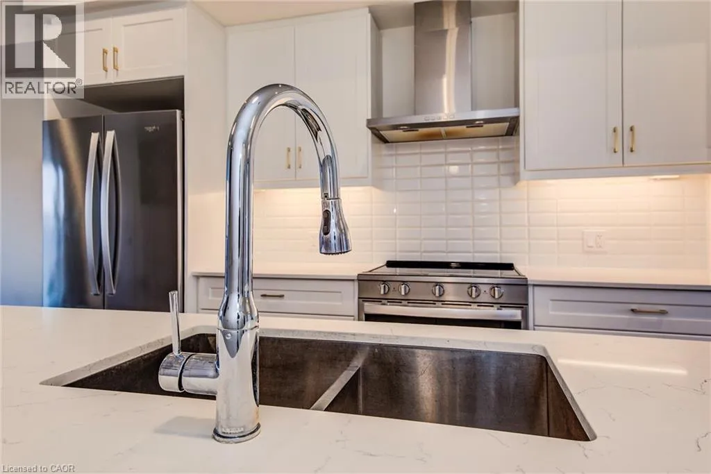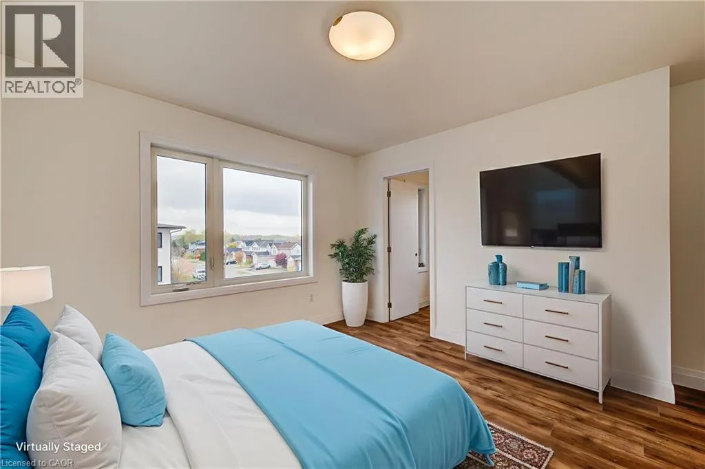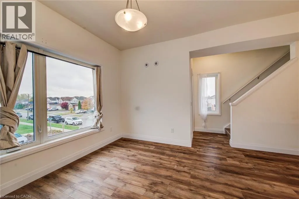 From Clair Road West, turn north onto Gosling Gardens. Continue straight and turn right onto Lily Lane â property is on the left-hand side. Welcome to 4 Lily Lane, Guelph â a beautifully upgraded townhome in the desirable Pulse Towns community. With roughly $30,000 in builder upgrades, this 3-bed, 3-bath home blends modern design with everyday comfort. The stunning kitchen features an extended 10-foot island with quartz gables, Carrera White quartz countertops, all-white soft-close cabinetry with dovetail drawers, a gas stove rough-in, fridge water line, and a tiled backsplash. Enjoy carpet-free living with 7 mm AquaPlus luxury vinyl plank flooring throughout, including the stairs. Bathrooms are finished with quartz vanities, one-piece toilets, and upgraded fixtures. Added touches include pot lights in the living, dining, and primary bedroom, a custom walk-in closet organizer, and a frosted glass front door for privacy and style. Built by Marann Homes, this turnkey property offers premium finishes, thoughtful upgrades, and a prime location close to parks, schools, and amenities. 13 minute bus ride to University of Guelph and all it's nearby amenities. (id:27476)