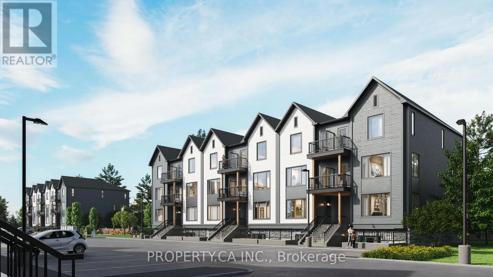 Woolwich St & Speedvale Ave Welcome to Marquis Modern Towns, North Guelph's newest community in a private enclave within walking distance of Riverside and Exhibition Park! With a diverse range of turnkey units available in various floor plans, you are sure to find a layout to suit your unique preferences. Act now to take advantage of final release incentives at pre-construction pricing! Be among the first to experience this stylish development. Timeless exteriors and modern, functional interiors cater to all tastes. Unit 402 is a fully upgraded stacked town with over 900 square feet of living space. It features two bedrooms, two bathrooms, an open-concept living area, dining and kitchen on the main floor and two private balconies, one located off the main floor living area and one off the second bedroom. At Marquis, upgrades come standard with luxury finishes, including maintenance-free vinyl plank flooring, Barzotti Eurochoice two toned cabinetry, and5ft island in the kitchen, a 4-piece stainless steel kitchen appliance package, quartz countertops, ceramic wall-tiled shower, and a full-size stackable front-load washer/dryer. From secure bike storage to a landscaped outdoor patio with BBQ, a children's natural play area, rough-ins for future electric car hook-ups, and ample visitor parking, everything is here to make life convenient and enjoyable! Whether you're an investor, empty-nester or something in between, this is the one you've been waiting for! (id:27476)