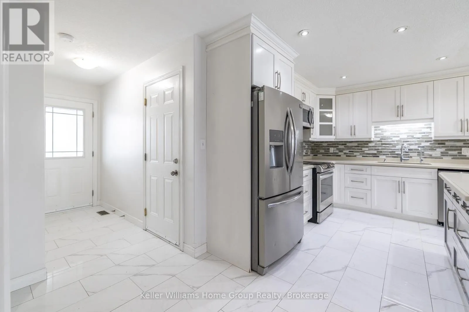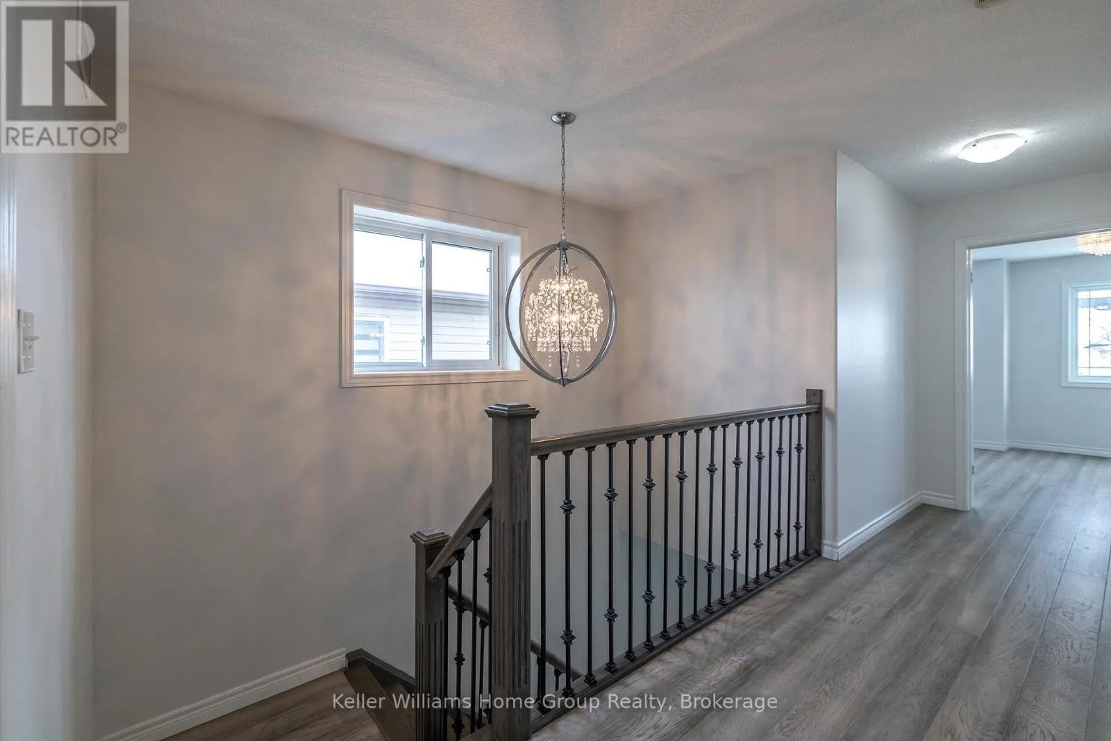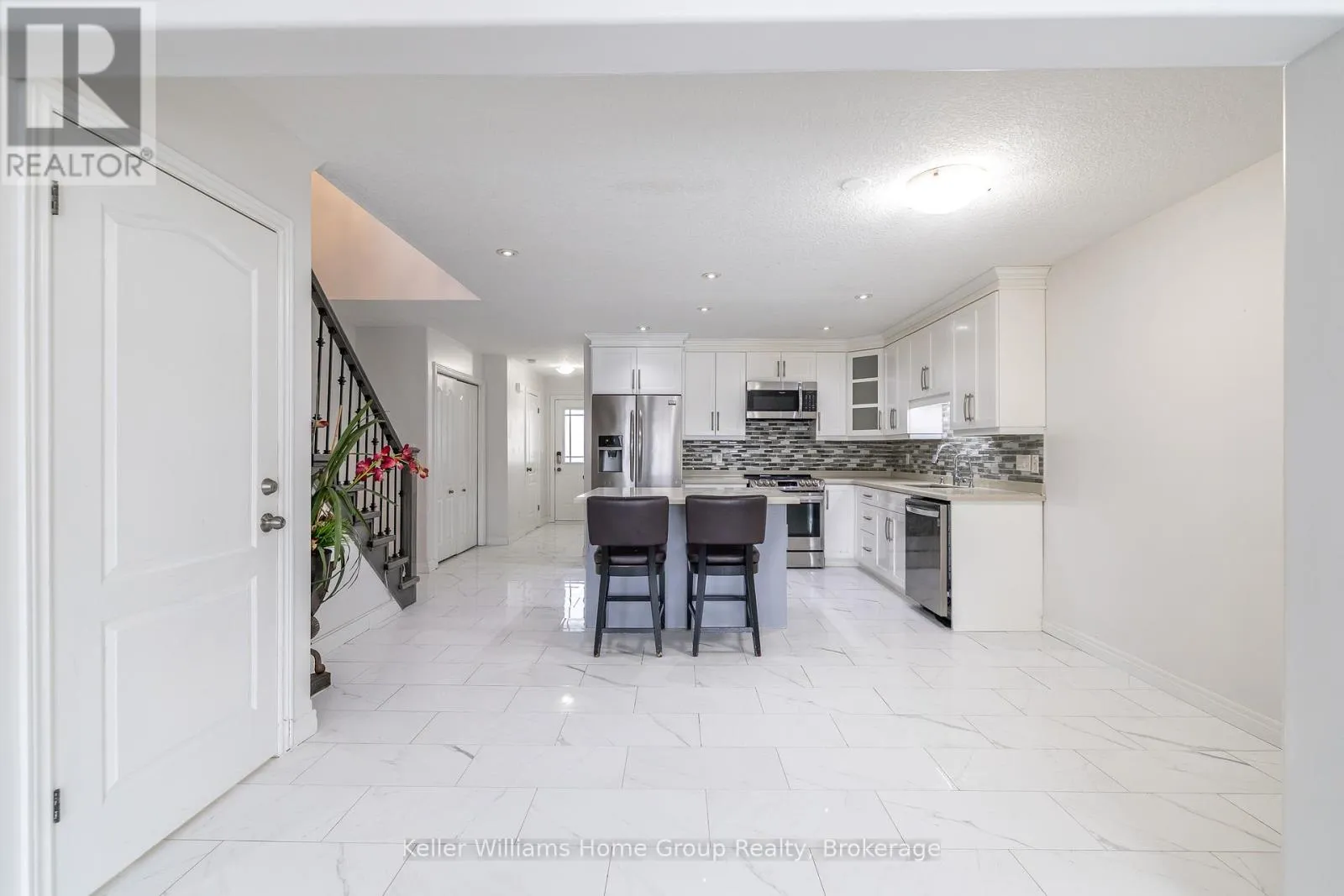 Arkell/Colonial Stunning Freehold End-Unit Townhome in the sought-after south end of Guelph, close to countless amenities including the University of Guelph. This beautiful family home features a stylish kitchen with stainless steel appliances, an open-concept main floor, and a walkout to a gorgeous deck - perfect for entertaining.The inviting entranceway offers ceramic floors, while both the living room and second floor feature gleaming hardwood - making this a carpet-free home throughout. The spacious primary bedroom includes a walk-in closet and a lovely 4-piece ensuite.The fully finished basement adds even more living space with a large recreation room or home office, a separate laundry/utility room, and another 4-piece bath - that's the third full bathroom in the home, plus a convenient 2-piece powder room on the main floor.This property also includes a single-car garage with inside entry and a garage door opener. As an end unit, you'll enjoy extra natural light, added privacy, and more outdoor space. (id:27476)