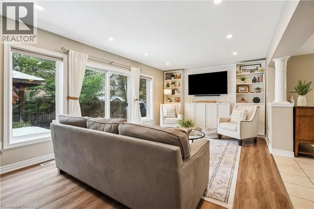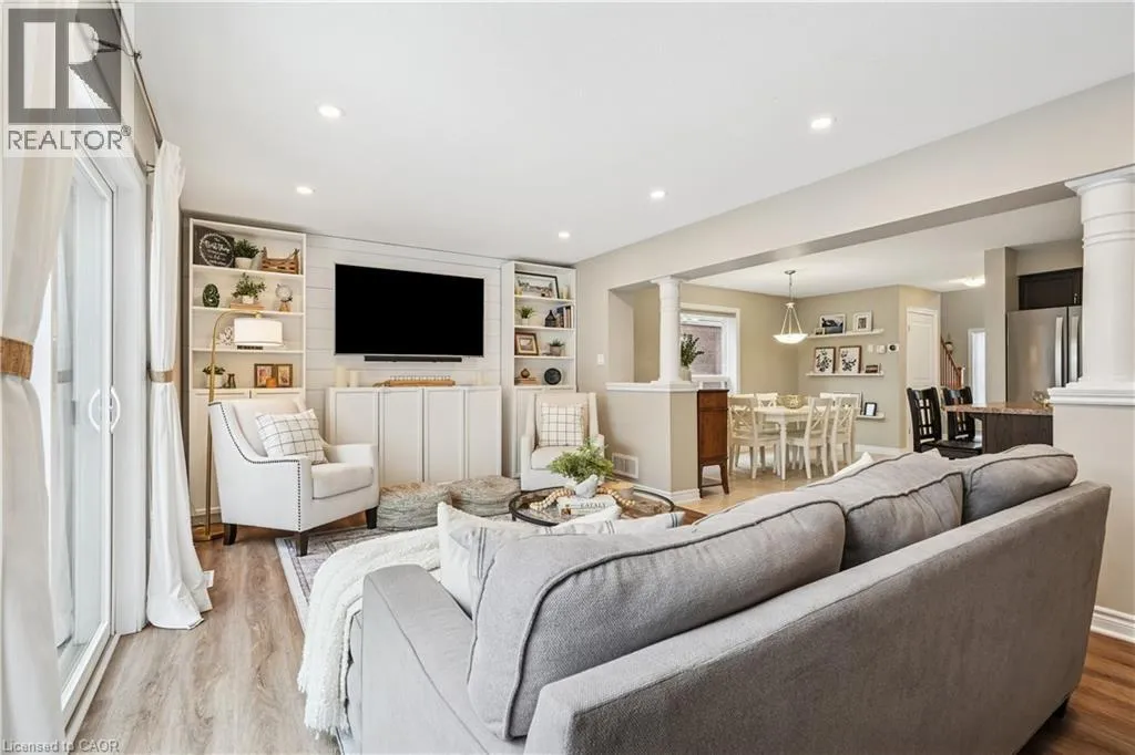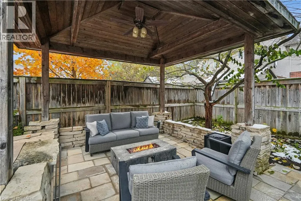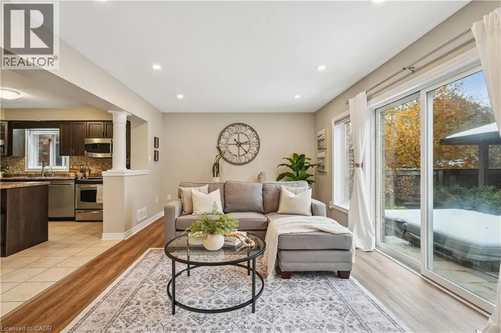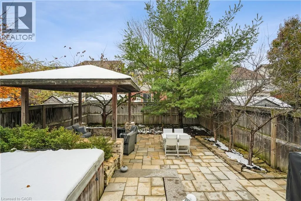 Victoria Rd S to Frederick Dr to Goodwin Dr to Pearson St Welcome to 9 Pearson Street in Guelphâs sought-after Pineridge/Westminster Woods community â a warm, welcoming neighbourhood known for its family-friendly vibe, excellent schools, scenic parks, and vibrant local amenities. This beautifully maintained two-storey detached home offers 1,850 sq ft of modern living space on a 30 Ã 109 ft lot, blending comfort, style, and convenience. Step inside to a bright, open-concept main floor featuring a spacious kitchen with stainless-steel appliances, a centre island with breakfast bar, tile backsplash, and generous cabinetry. The adjoining dining room is ideal for family dinners or entertaining friends. Beyond, the cozy living room offers luxury vinyl flooring, pot lights, and a feature accent wall. Natural light fills the space through two large windows and a sliding patio door leading to the fully landscaped backyard oasis â complete with interlock stone patio, built-in seating area, hot tub, and gazebo. The yard is low-maintenance and grass-free, perfect for busy families who love to relax outdoors. Upstairs, discover three spacious bedrooms, including a primary suite with walk-in closet and private 4-piece ensuite. The additional bedrooms share a bright, modern main bath â perfect for growing families. The basement offers a separate side entrance and rough-in plumbing, providing excellent in-law suite or secondary-suite potential for extended family or future rental income. Major updates provide peace of mind: windows (2019), furnace & A/C (2022), roof (2022), and water softener (2021). The home also includes an attached single-car garage with driveway parking for two and a modest $220 annual HOA fee for upkeep of community green spaces. Enjoy walkable access to Westminster Woods Public School, St. Ignatius of Loyola Catholic School, Pineridge Park, and Preservation Parkâs scenic trails. Shopping, dining, and entertainment are nearby at Pergola Commons, Clairfields Commons, and the Westminster Square Library Branch. (id:27476)