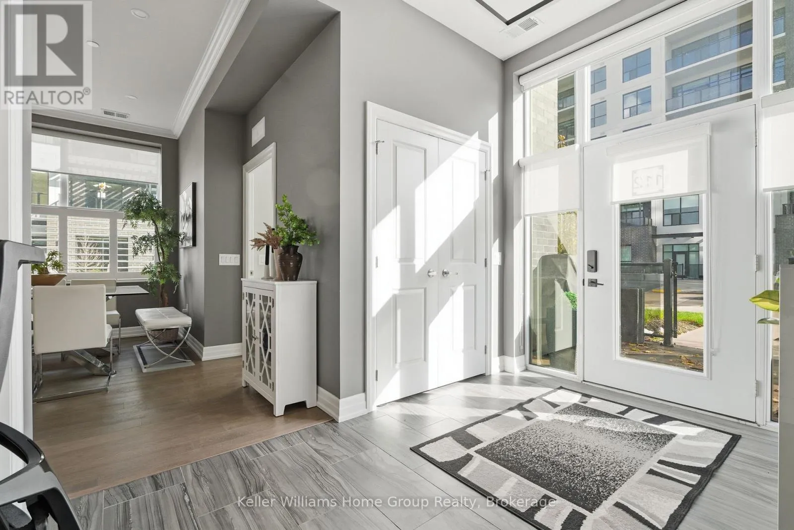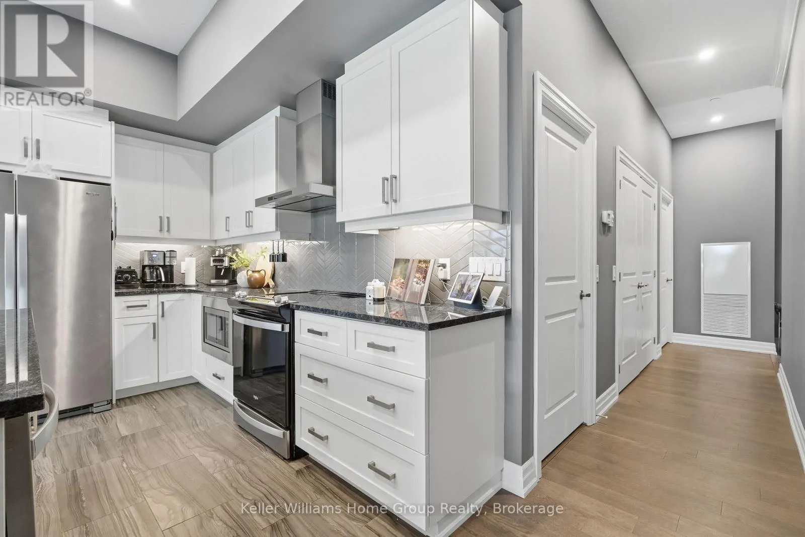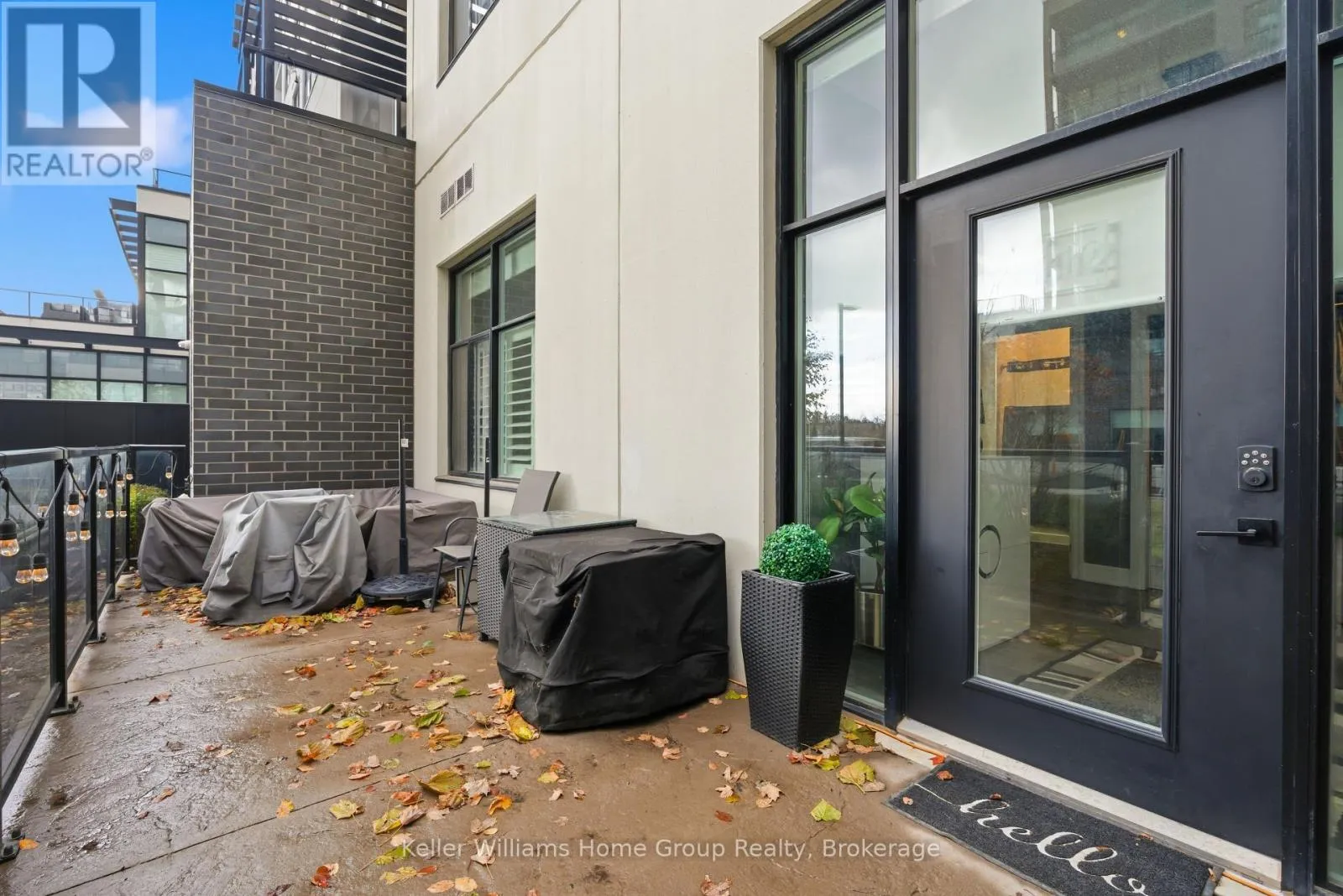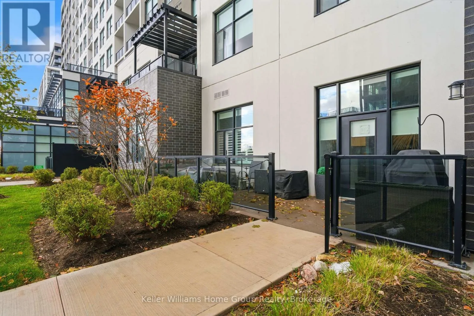 Poppy Dr W/Gordon St Priced to move, 1880 Gordon Street Unit 112 offers a rare ground-level luxury suite with its own private entrance and expansive terrace with permitted use of a BBQ and outdoor gas fireplace. With 1,639 sq ft of refined living space, this residence blends the feel of a modern townhome with the convenience of premium condo living.Inside, the open-concept layout features hardwood floors, pot lights, California shutters, and an inviting electric fireplace. The chef-inspired kitchen offers quartz countertops, soft-close cabinetry, undermount lighting, a striking herringbone backsplash, and a generous walk-in pantry.The custom primary suite impresses with beautiful millwork, a spacious walk-in closet, and a spa-like ensuite with heated floors in both bathrooms, floor-to-ceiling tile, double sinks, and a glass walk-in shower. A versatile office nook, spacious second bedroom, full guest bath, and ample in-suite walk-in storage add to the comfort and functionality. The unit also includes a dedicated locker and two underground parking spaces.Residents enjoy exceptional amenities just steps down the hall: a fully equipped gym, golf simulator, and the 13th-floor lounge with billiards, outdoor terrace, and panoramic views. All of this just moments from restaurants, shops, cafés, and everyday essentials. Luxury, convenience, and incredible value - this is elevated living made easy. **Condo fees include: Heat, Water, Insurance, Common Areas, Parking maintenance, Property maintenance.** (id:27476)