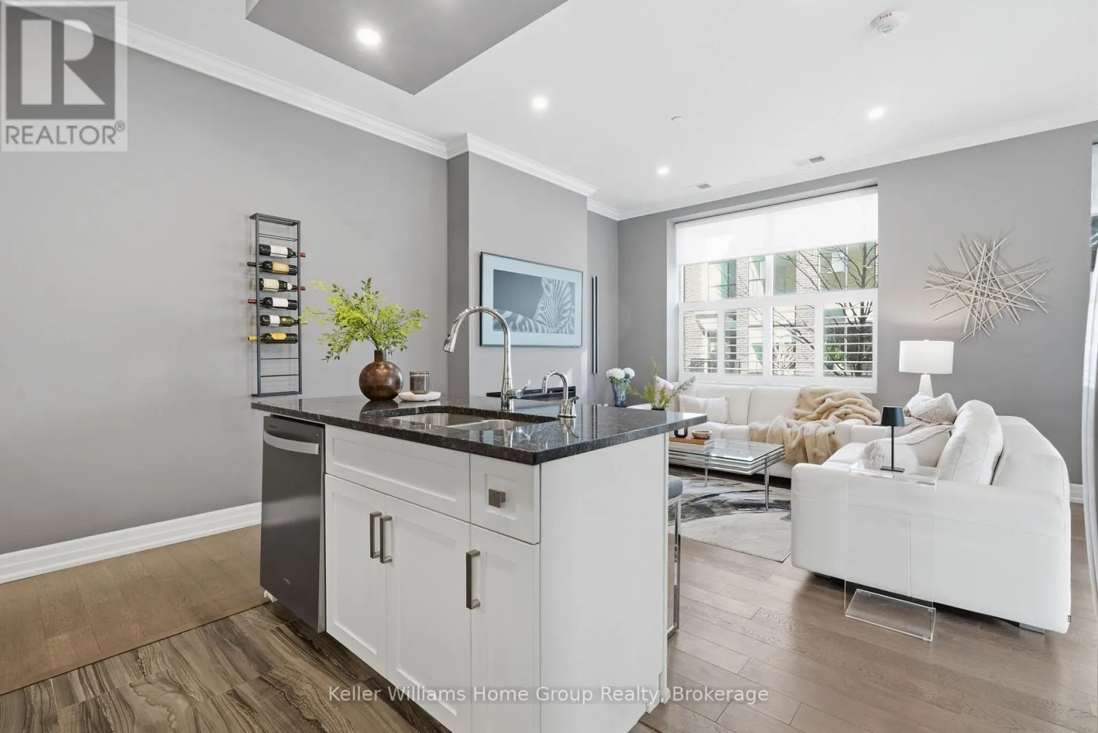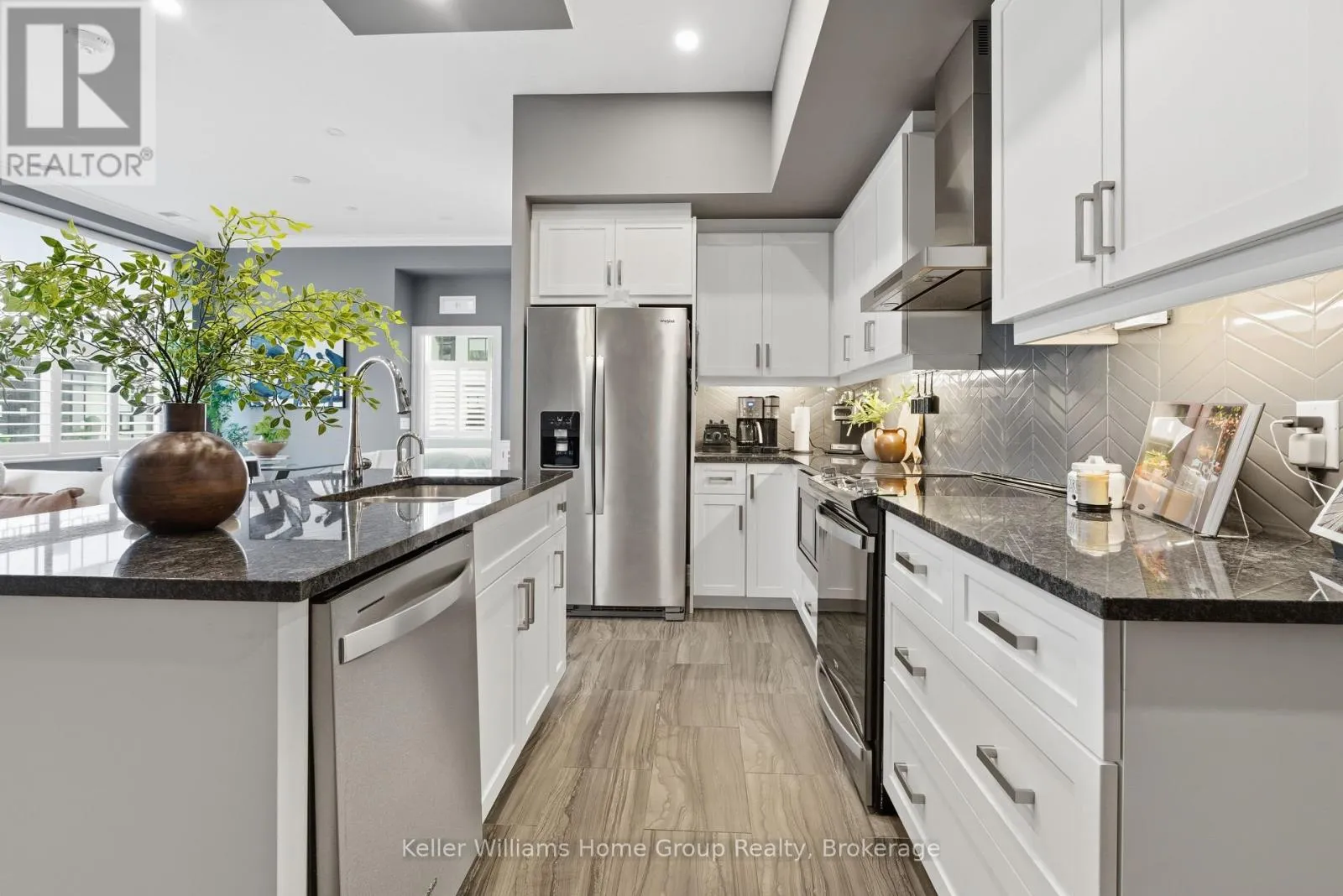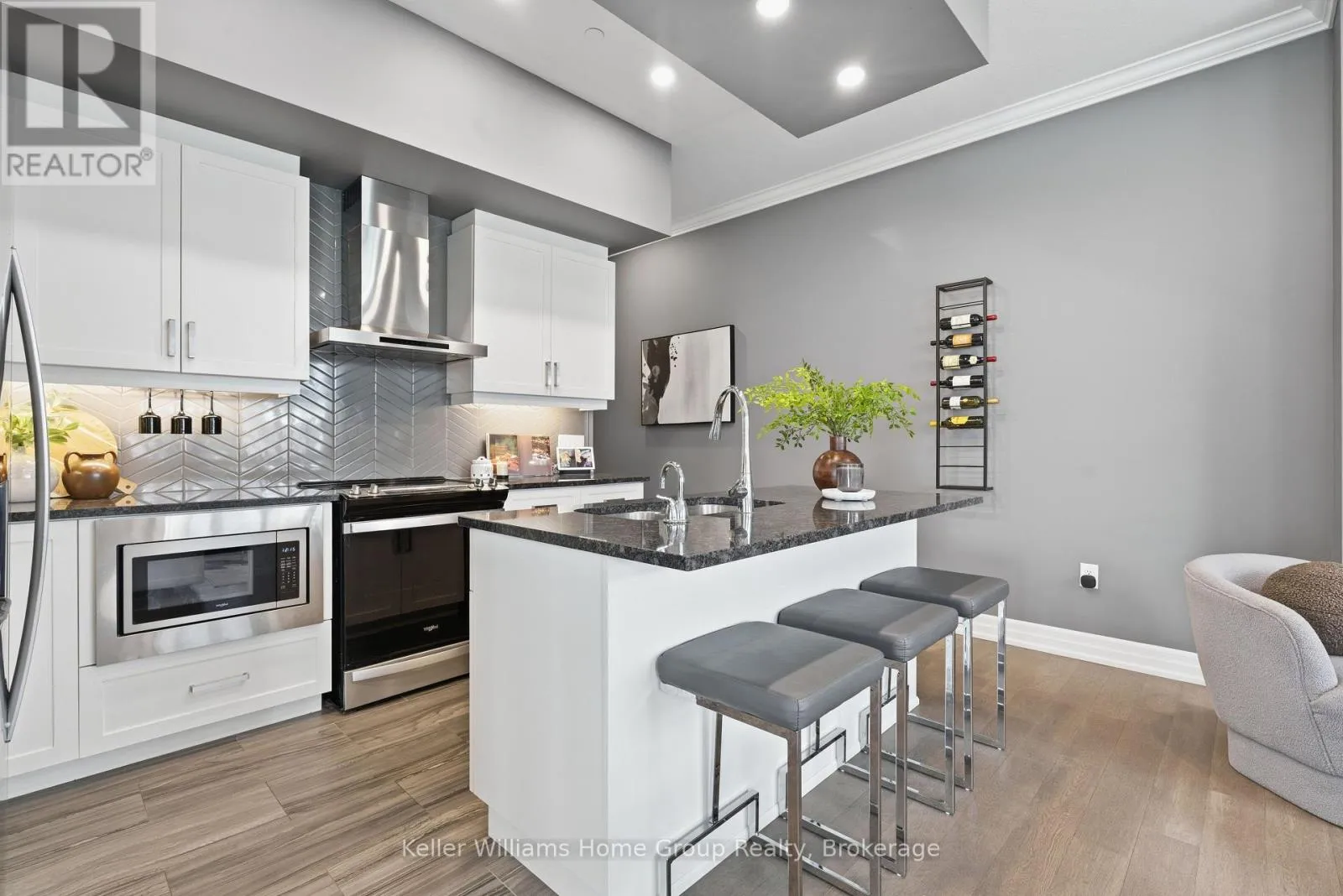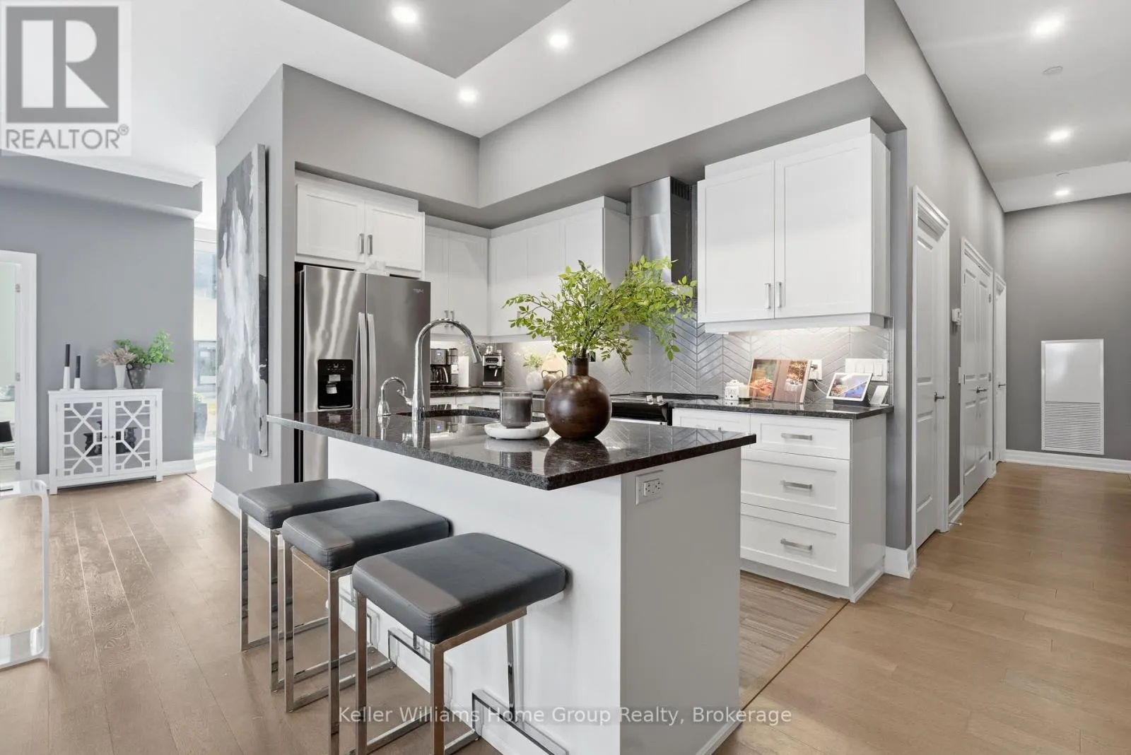 Poppy Dr W/Gordon St Priced to move, 1880 Gordon Street Unit 112 offers a rare ground-level luxury suite with its own private entrance and expansive terrace with permitted use of a BBQ and outdoor gas fireplace. With 1,639 sq ft of refined living space, this residence blends the feel of a modern townhome with the convenience of premium condo living.Inside, the open-concept layout features hardwood floors, pot lights, California shutters, and an inviting electric fireplace. The chef-inspired kitchen offers quartz countertops, soft-close cabinetry, undermount lighting, a striking herringbone backsplash, and a generous walk-in pantry.The custom primary suite impresses with beautiful millwork, a spacious walk-in closet, and a spa-like ensuite with heated floors in both bathrooms, floor-to-ceiling tile, double sinks, and a glass walk-in shower. A versatile office nook, spacious second bedroom, full guest bath, and ample in-suite walk-in storage add to the comfort and functionality. The unit also includes a dedicated locker and two underground parking spaces.Residents enjoy exceptional amenities just steps down the hall: a fully equipped gym, golf simulator, and the 13th-floor lounge with billiards, outdoor terrace, and panoramic views. All of this just moments from restaurants, shops, cafés, and everyday essentials. Luxury, convenience, and incredible value - this is elevated living made easy. **Condo fees include: Heat, Water, Insurance, Common Areas, Parking maintenance, Property maintenance.** (id:27476)