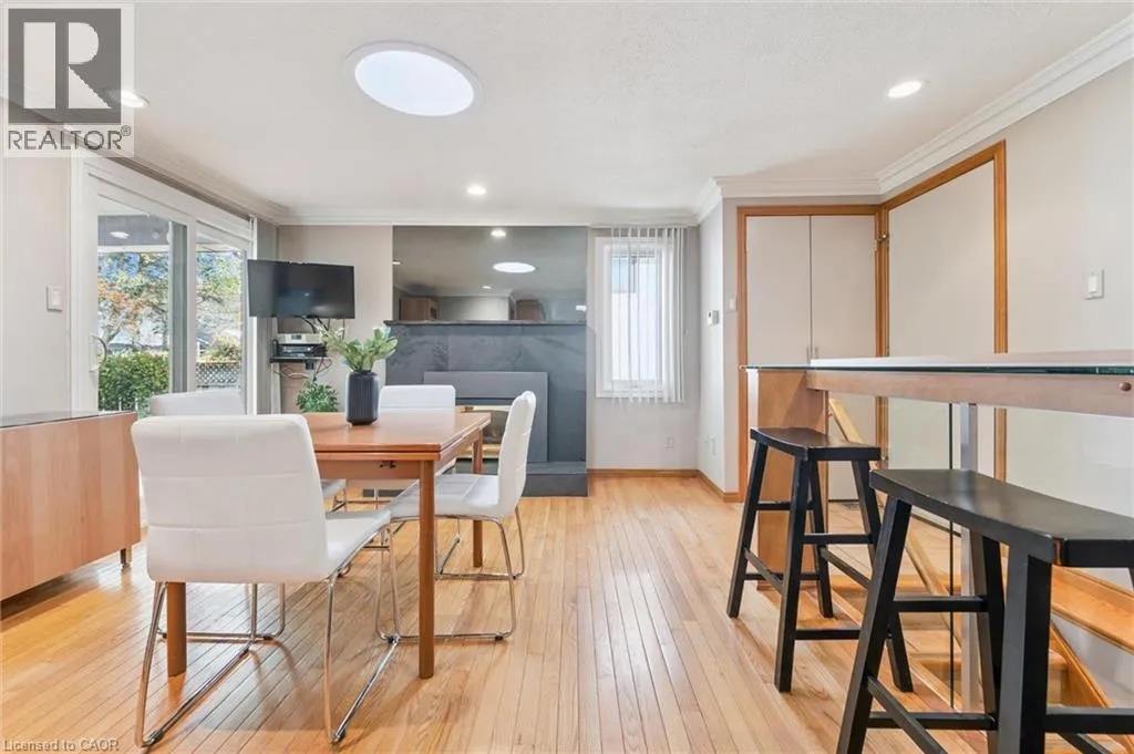 Harvard Road to Smart Street Located on a quiet street in the heart of Guelph, this beautifully maintained all-brick bungalow offers 2+1 bedrooms, 2 full bathrooms, and a powder room. The carpet-free main floor features a large living room, family room, and formal dining room. The kitchen, with a skylight, has been completely custom rebuilt and features a gas stove â along with many practical details and clever storage solutions â perfect for the family chef. Two gas fireplaces fill the home with warmth, perfect for cozy evenings â one on the main floor and one in the basement. The large basement provides ample storage space and a hobby shop area. The home has been thoughtfully updated, including all new windows (2021), a new front door (2023), a new roof (2019), and unique front landscaping with dry-river drainage on both sides. Barrier-free living is made easy with an elegant, custom-made wheelchair ramp at the front entrance, providing accessibility without compromising style. Step into your private, beautifully landscaped backyard, perfect for relaxing, entertaining, or gardening. The covered porch is ideal for enjoying a morning cup of tea â even on rainy days. Located in the heart of Guelph on a quiet street, this home is just steps from Jean Little Public School, St. Michael Catholic School, and Rickson Park. Itâs also a short distance to the University of Guelph, shopping centers including Stone Road Mall, grocery stores, restaurants, banks, fitness centers, and all other amenities â making it a fantastic neighborhood to live in. (id:27476)