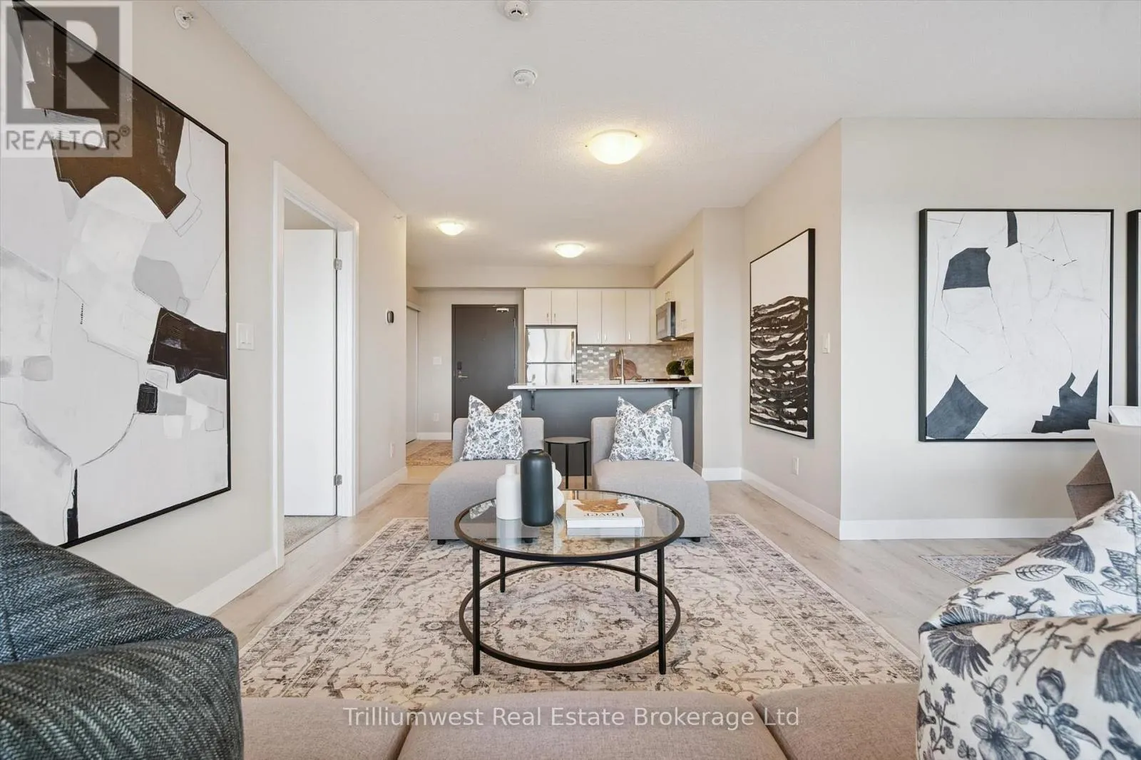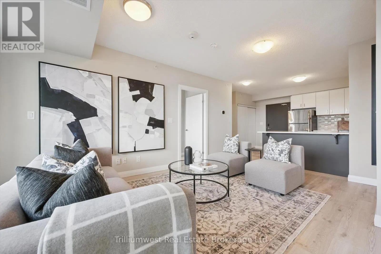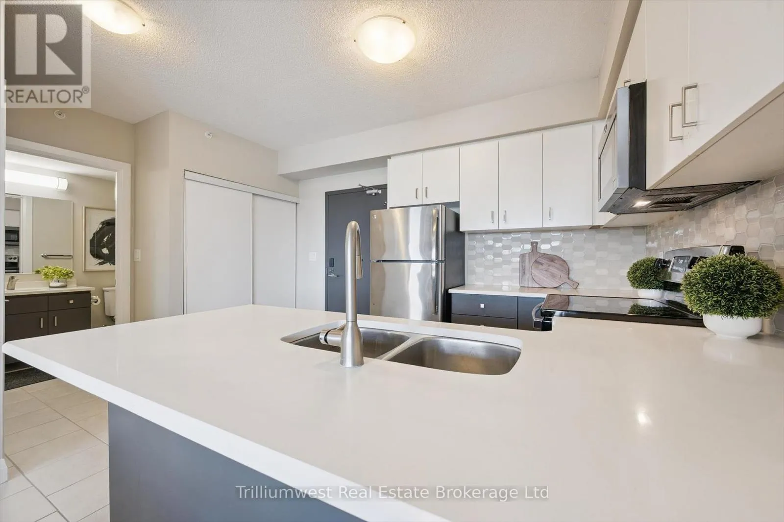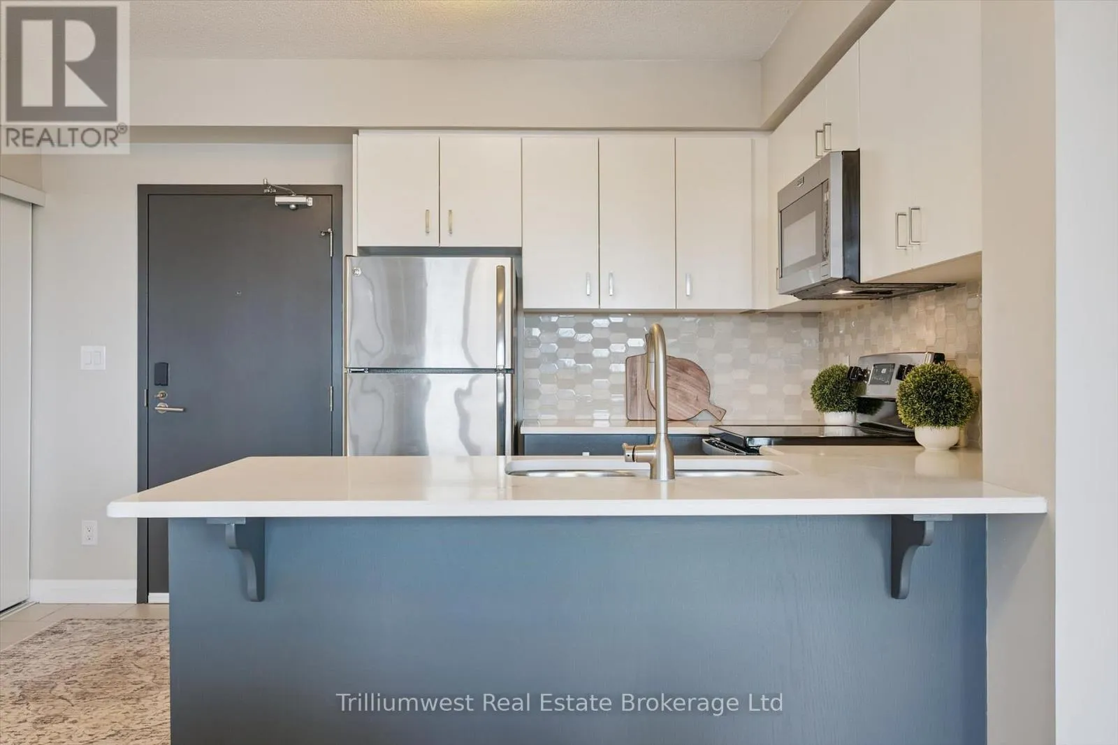 Arthur/Elizabeth One bedroom+den unit with panoramic views! Thanks to its modern design and inviting riverfront setting, The Metalworks has become one of Guelph's most desirable condo communities in the area. Set along the Speed River, the property connects directly to the city's trail network, making it easy to wander through downtown, explore parks, or follow the paths all the way to Guelph Lake Conservation Area. Restaurants, cafés, and local shops are just steps away, and the GO Train is a short walk from your door with convenient service to Toronto. Unit 612 at 53 Arthur Street South offers a one bedroom plus den layout with generous living space and impressive panoramic views. A standout feature is the oversized covered balcony, providing a comfortable outdoor extension of the home and a wonderful spot to overlook the city. Inside, the upgraded kitchen includes quartz counters, stainless steel appliances, and a brand new stove. The unit has a spacious primary bedroom with large walk-in closet. The den can be used as an office, dining room or additional bedroom if sectioned off with a privacy screen. The unit also features a rare full size air conditioning system installed in 2023 with a 10 year parts and labour warranty, along with a furnace installed in 2022 with matching warranty coverage. An owned locker and underground parking space adds the everyday convenience everyone is looking for. Designed as a full community rather than a single building, The Metalworks includes multiple residential towers, shared outdoor spaces, and amenities that encourage both convenience and social interaction. Residents have access to a full range of amenities, including a well equipped gym, pet wash, party room, guest suite, community barbecues, and outdoor firepits. Love where you live! (id:27476)