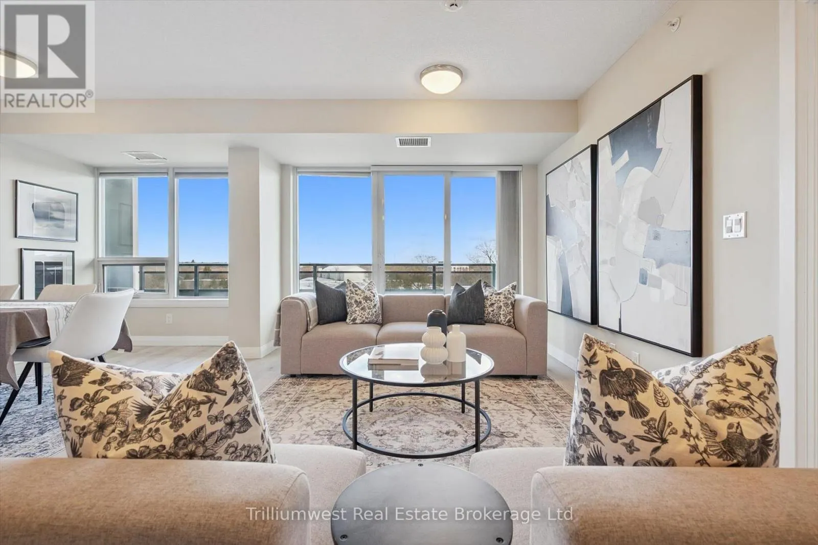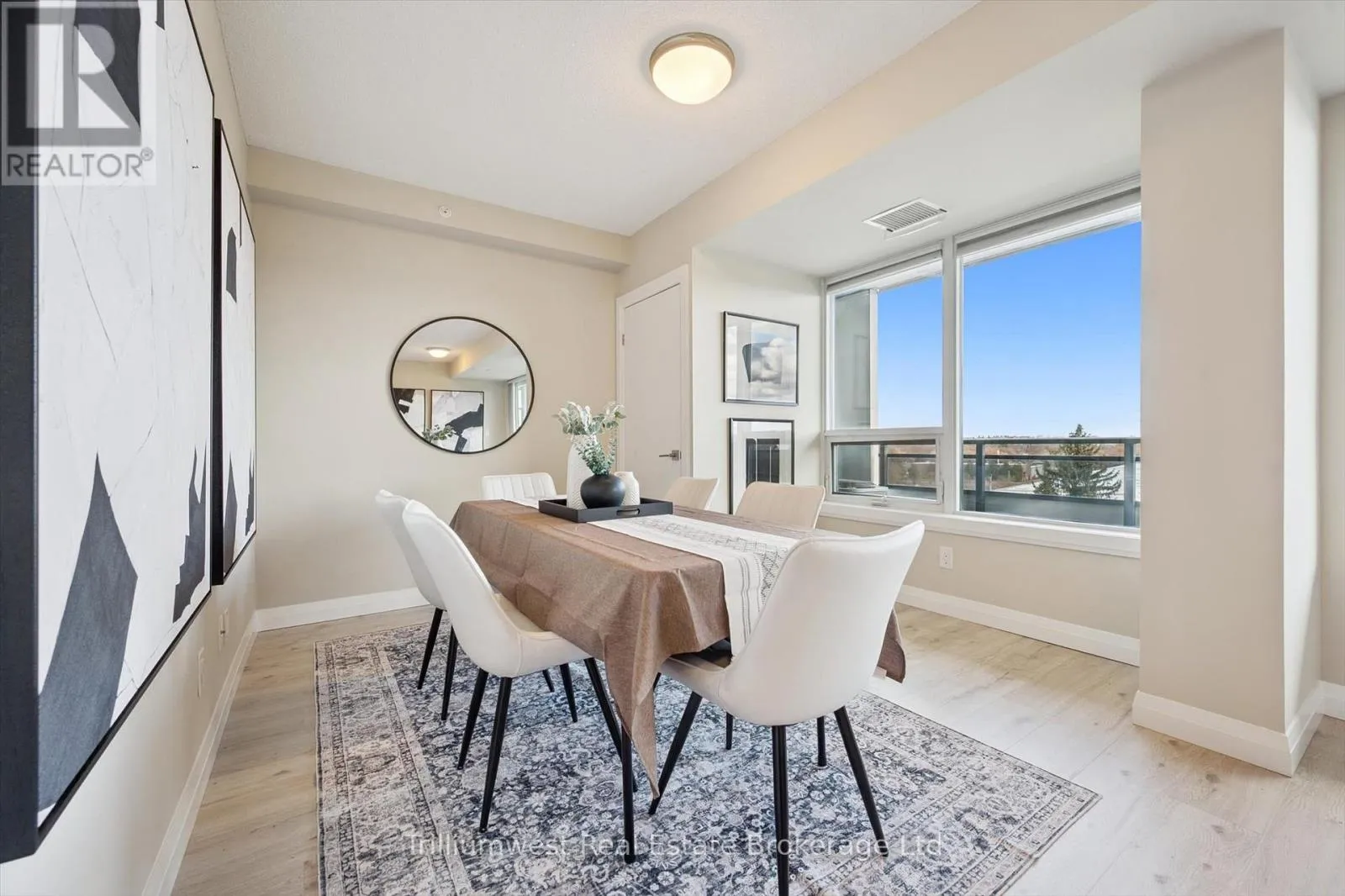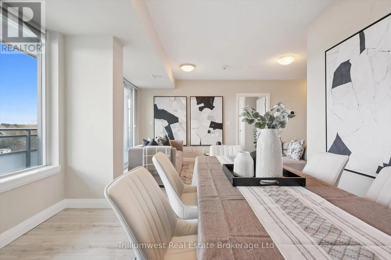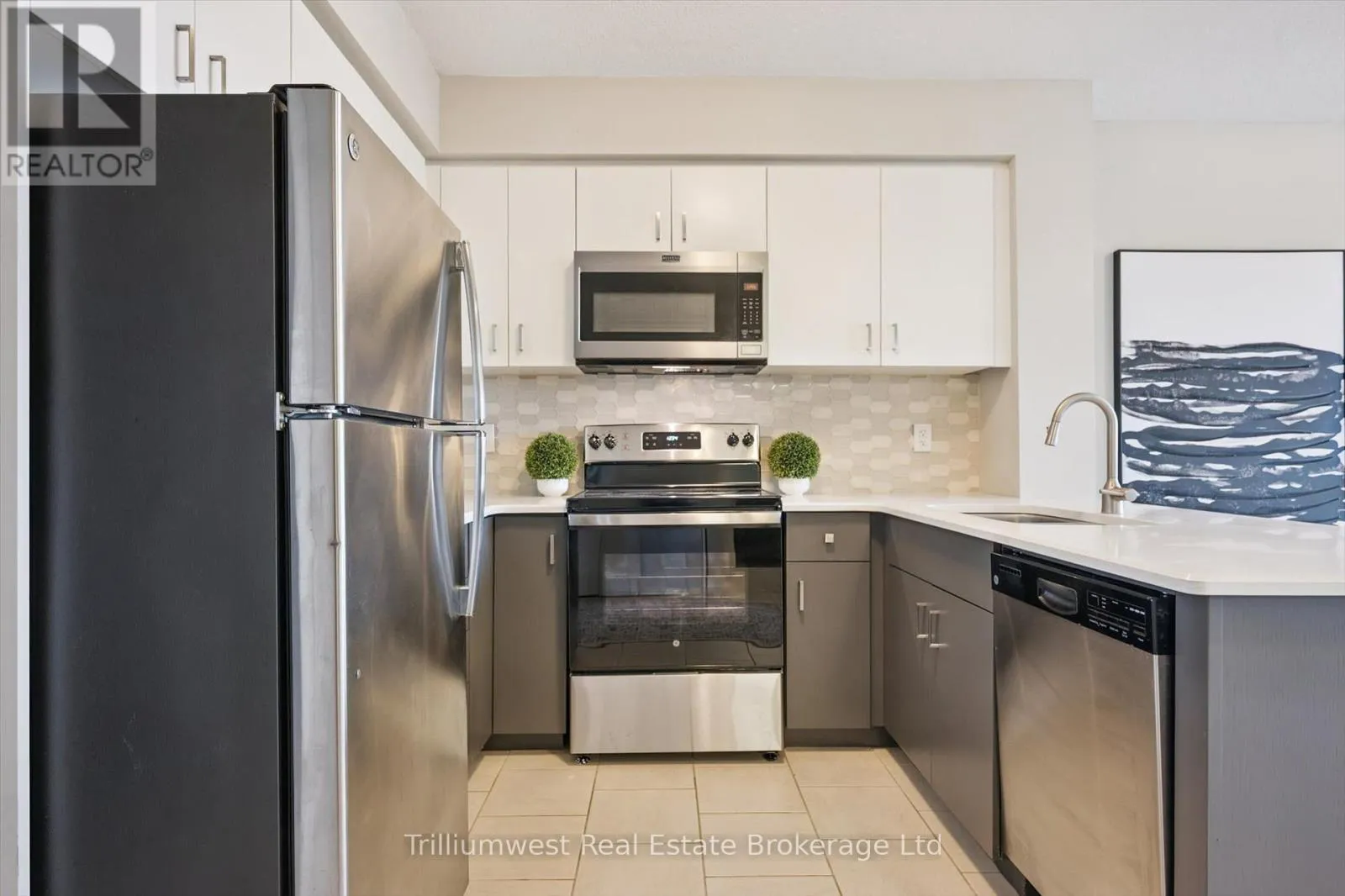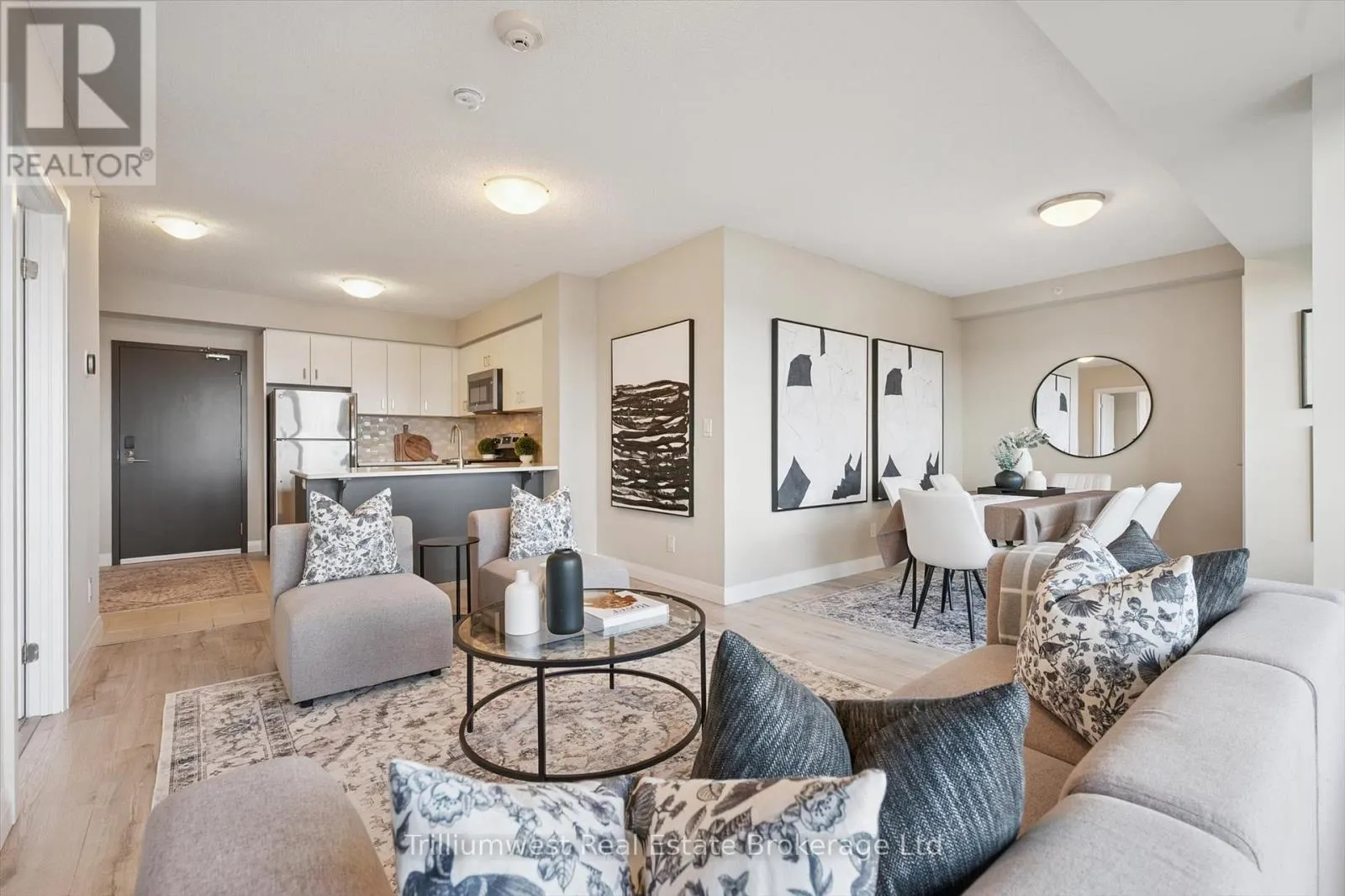 Arthur/Elizabeth One bedroom+den unit with panoramic views! Thanks to its modern design and inviting riverfront setting, The Metalworks has become one of Guelph's most desirable condo communities in the area. Set along the Speed River, the property connects directly to the city's trail network, making it easy to wander through downtown, explore parks, or follow the paths all the way to Guelph Lake Conservation Area. Restaurants, cafés, and local shops are just steps away, and the GO Train is a short walk from your door with convenient service to Toronto. Unit 612 at 53 Arthur Street South offers a one bedroom plus den layout with generous living space and impressive panoramic views. A standout feature is the oversized covered balcony, providing a comfortable outdoor extension of the home and a wonderful spot to overlook the city. Inside, the upgraded kitchen includes quartz counters, stainless steel appliances, and a brand new stove. The unit has a spacious primary bedroom with large walk-in closet. The den can be used as an office, dining room or additional bedroom if sectioned off with a privacy screen. The unit also features a rare full size air conditioning system installed in 2023 with a 10 year parts and labour warranty, along with a furnace installed in 2022 with matching warranty coverage. An owned locker and underground parking space adds the everyday convenience everyone is looking for. Designed as a full community rather than a single building, The Metalworks includes multiple residential towers, shared outdoor spaces, and amenities that encourage both convenience and social interaction. Residents have access to a full range of amenities, including a well equipped gym, pet wash, party room, guest suite, community barbecues, and outdoor firepits. Love where you live! (id:27476)