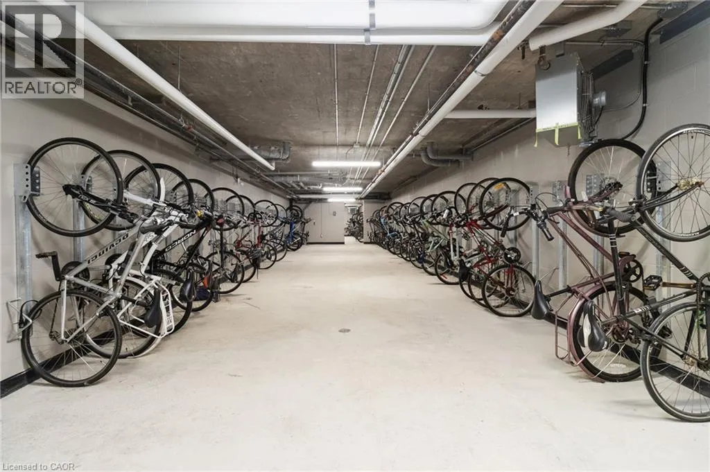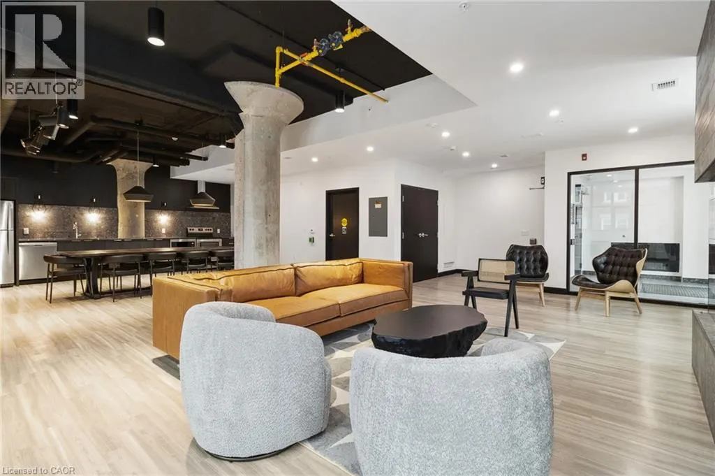 York Road to Huron Street Where heritage charm meets modern edge. Step into this authentic hard-loft conversion that pairs century-old character with contemporary design. This bright and open 1-bed, 1-bath condo showcases soaring 10-foot ceilings, oversized windows, and a fluid layout that makes a statement the moment you walk in. Thoughtful upgrades include a sleek waterfall quartz countertop and upgraded baseboards for a polished, elevated finish. Enjoy the convenience of a separately deeded parking space and storage locker. Just minutes from Guelphs vibrant downtown: coffee shops, boutiques, and dining are all close at hand, yet the building itself exudes soul, history and genuine warmth. Your private 150 sq. ft. balcony becomes an extension of your living space, perfect for morning coffee or evening stargazing. Inside, the clean, modern aesthetic is complemented by access to premium amenities: a 2,200 sq. ft. rooftop patio with BBQ, fire cube, and lounge seating; heated bike ramp with indoor storage; a fully equipped gym; games room; and even a pet wash for your four-legged friend. Whether youre working from home, entertaining, or simply enjoying the vibe, this loft delivers the best of boutique, urban living. (id:27476)