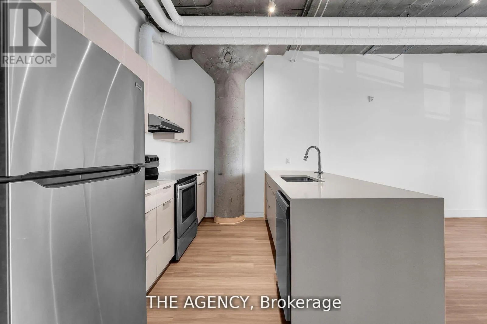 Cross Streets: Huron St & Alice St. ** Directions: York Road to Huron Street. Where heritage charm meets modern edge. Step into this authentic hard-loft conversion that pairs century-old character with contemporary design. This bright and open 1-bed, 1-bath condo showcases soaring 10-foot ceilings, oversized windows, and a fluid layout that makes a statement the moment you walk in. Thoughtful upgrades include a sleek waterfall quartz countertop and upgraded baseboards for a polished, elevated finish. Enjoy the convenience of a separately deeded parking space and storage locker. Just minutes from Guelphs vibrant downtown: coffee shops, boutiques, and dining are all close at hand, yet the building itself exudes soul, history and genuine warmth. Your private 150 sq. ft. balcony becomes an extension of your living space, perfect for morning coffee or evening stargazing. Inside, the clean, modern aesthetic is complemented by access to premium amenities: a 2,200 sq. ft. rooftop patio with BBQ, fire cube, and lounge seating; heated bike ramp with indoor storage; a fully equipped gym; games room; and even a pet wash for your four-legged friend. Whether youre working from home, entertaining, or simply enjoying the vibe, this loft delivers the best of boutique, urban living. (id:27476)