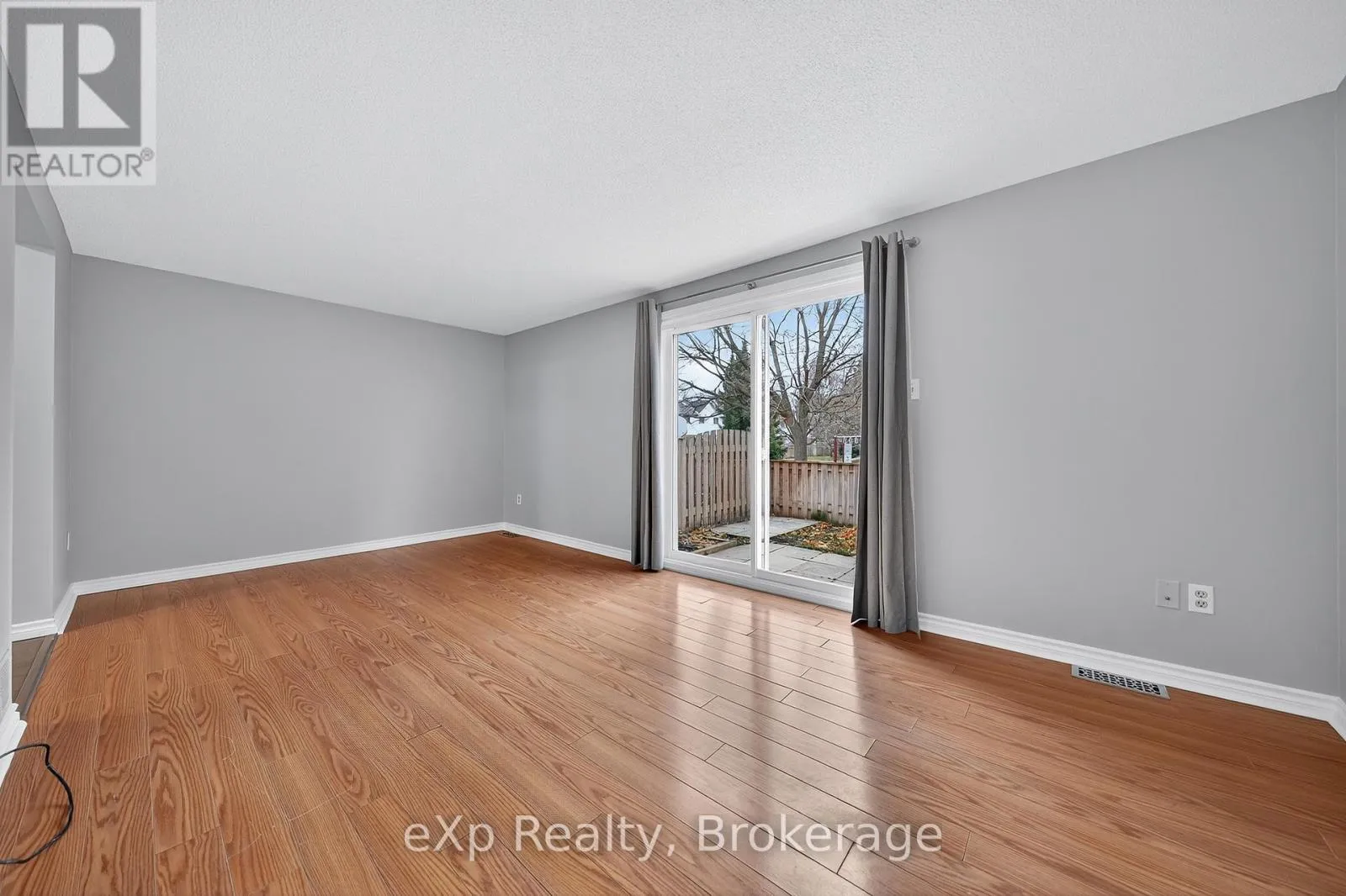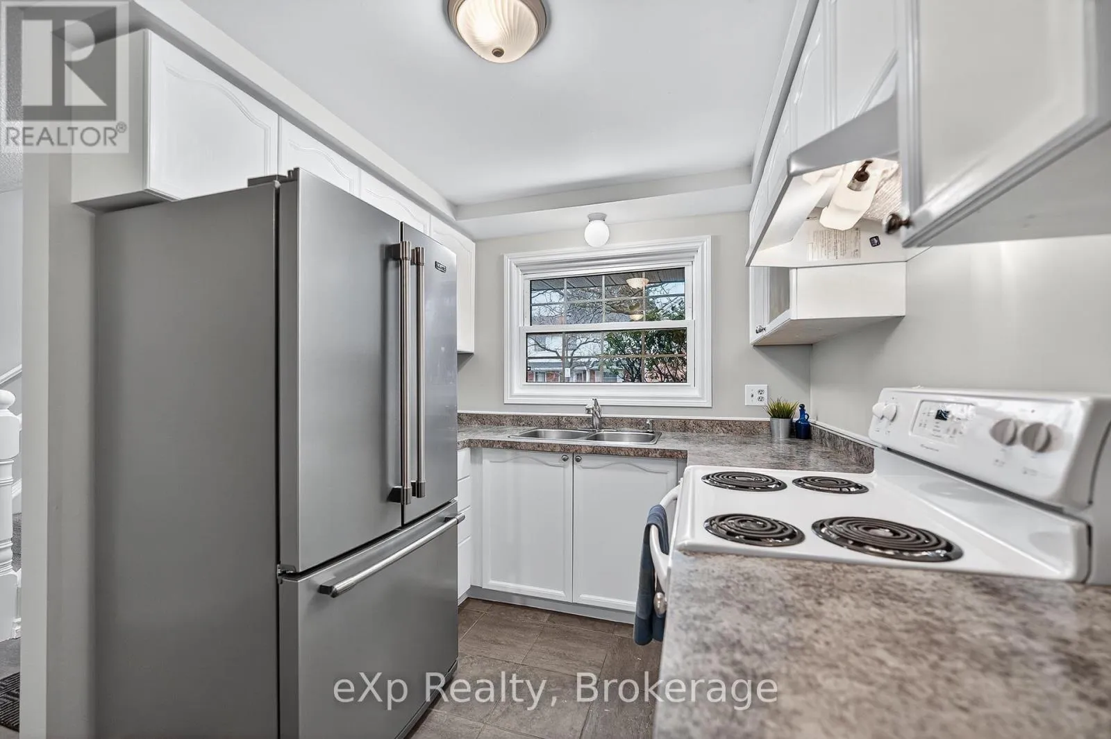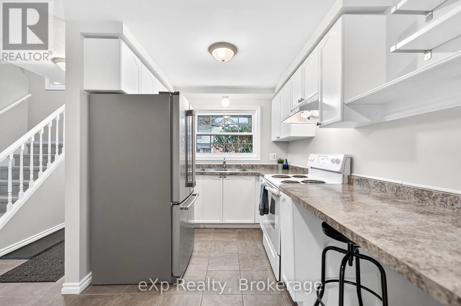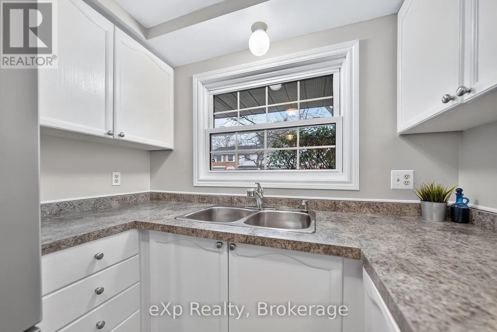 Cross Streets: Victoria & Hadati. ** Directions: Townhomes beside Victor Davis Pool. North of Hadati on right hand side. Welcome to 129 Victoria Road North, Unit 75. This clean, move-in-ready townhome features a bright and airy main floor with white kitchen cabinets and warm, rich tones throughout. The versatile main floor lends to many furniture configurations. Featuring 3 bedrooms, 1.5 baths, a finished recreation room, and a freshly painted interior, this home is sure to impress. Enjoy a fenced backyard that backs onto the condominium's private park, complete with beautiful mature trees offering shade and privacy in the warmer months. The exterior photos were taken two weeks apart in November to showcase how vibrant the foliage becomes right outside your door. Located in Guelph's desirable East End, you're close to parks, transit, schools, trail systems, shopping, and the Victoria Road Recreation Centre - making this an ideal home for families, first-time buyers, investors or anyone seeking comfort and convenience. This is the one you've been waiting for! (id:27476)