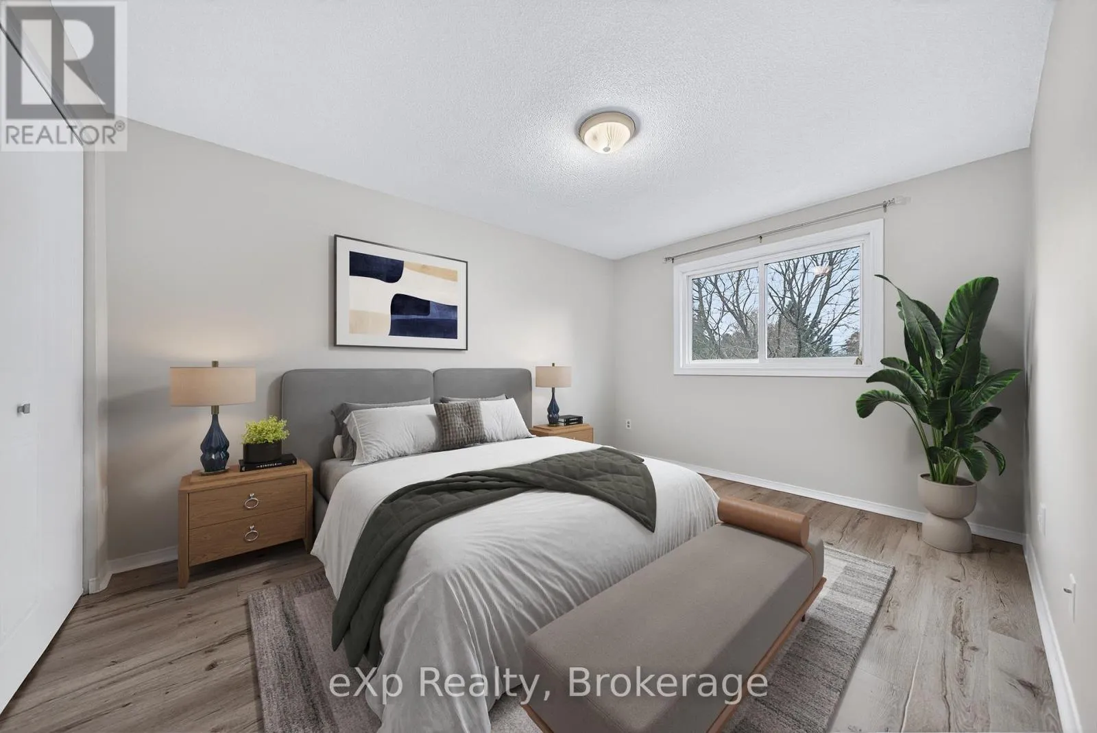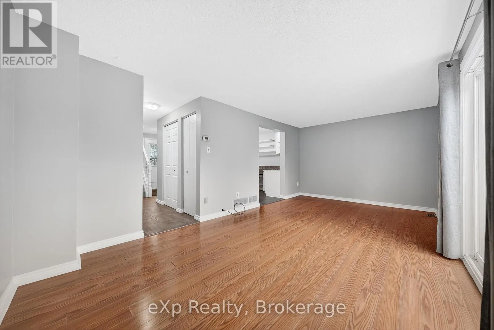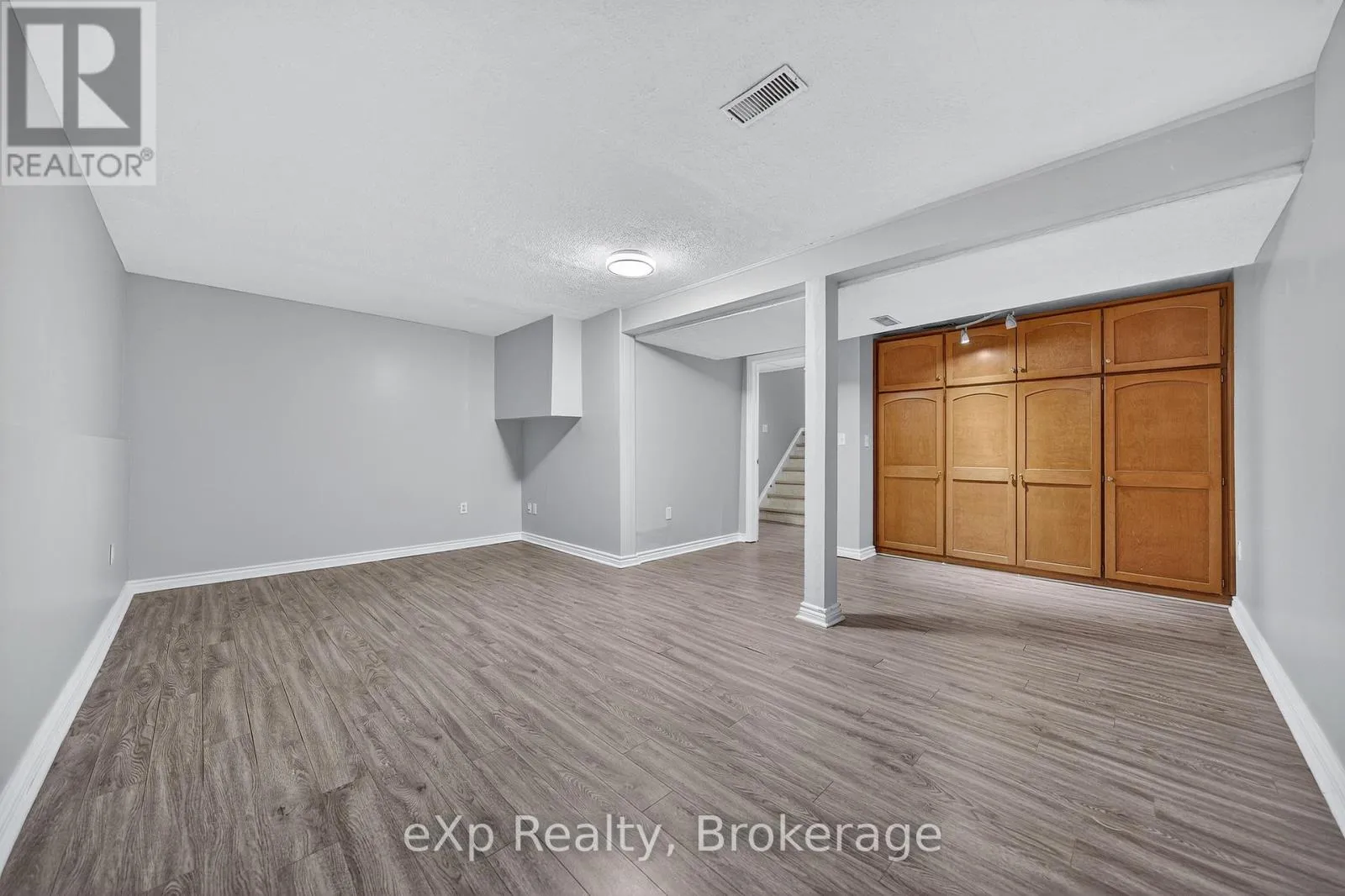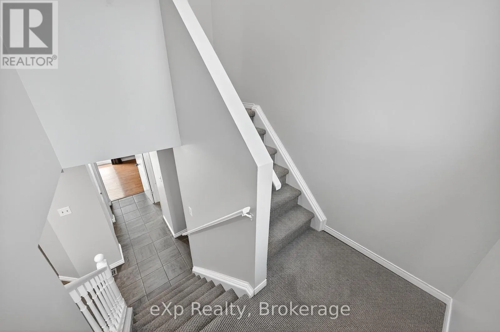 Cross Streets: Victoria & Hadati. ** Directions: Townhomes beside Victor Davis Pool. North of Hadati on right hand side. Welcome to 129 Victoria Road North, Unit 75. This clean, move-in-ready townhome features a bright and airy main floor with white kitchen cabinets and warm, rich tones throughout. The versatile main floor lends to many furniture configurations. Featuring 3 bedrooms, 1.5 baths, a finished recreation room, and a freshly painted interior, this home is sure to impress. Enjoy a fenced backyard that backs onto the condominium's private park, complete with beautiful mature trees offering shade and privacy in the warmer months. The exterior photos were taken two weeks apart in November to showcase how vibrant the foliage becomes right outside your door. Located in Guelph's desirable East End, you're close to parks, transit, schools, trail systems, shopping, and the Victoria Road Recreation Centre - making this an ideal home for families, first-time buyers, investors or anyone seeking comfort and convenience. This is the one you've been waiting for! (id:27476)