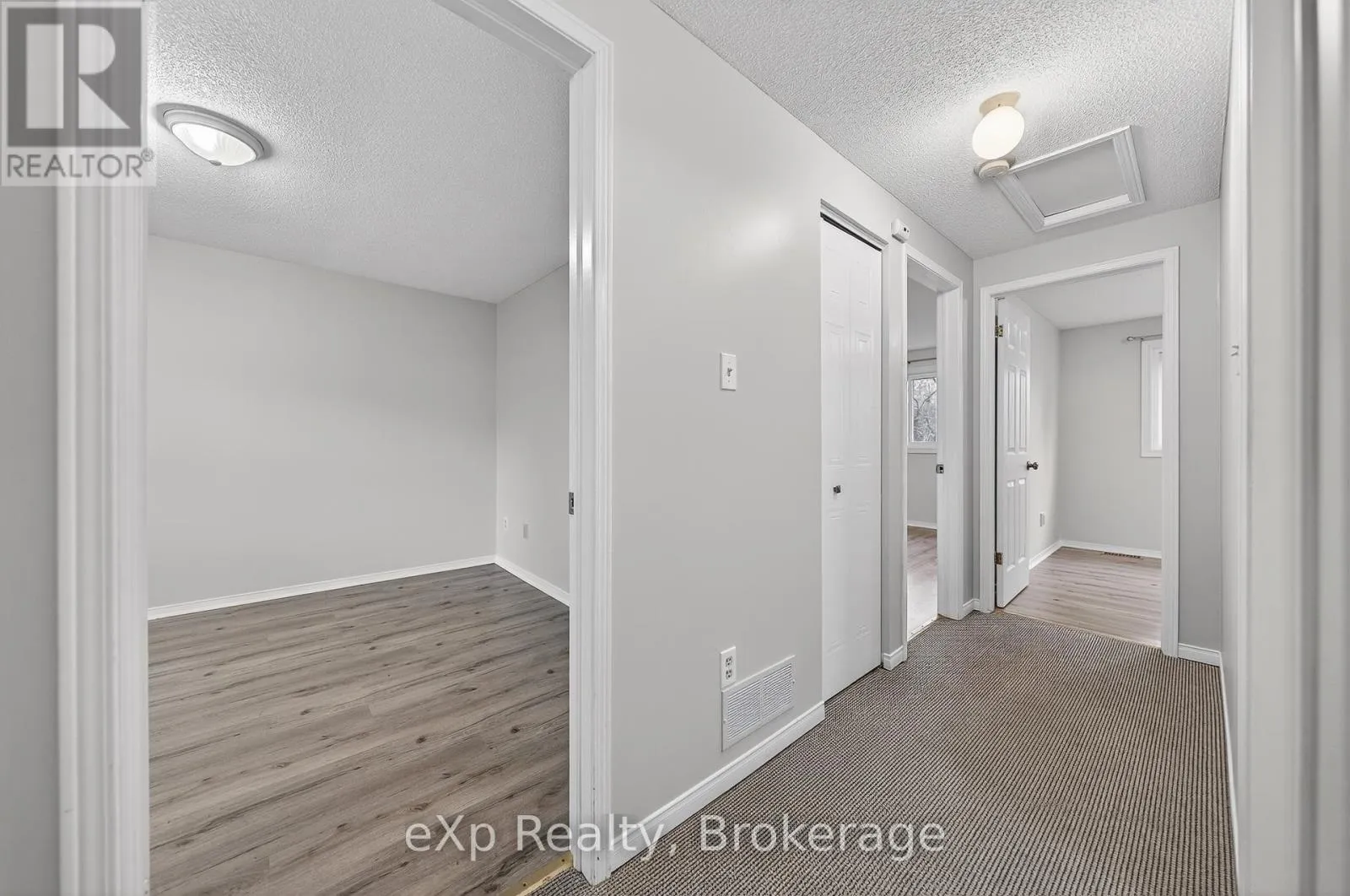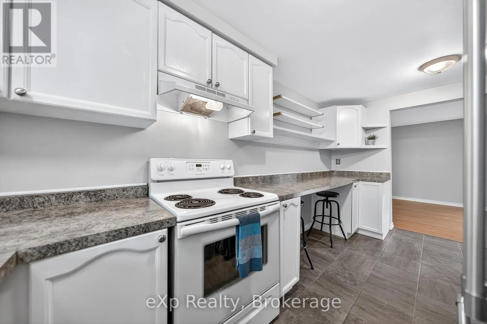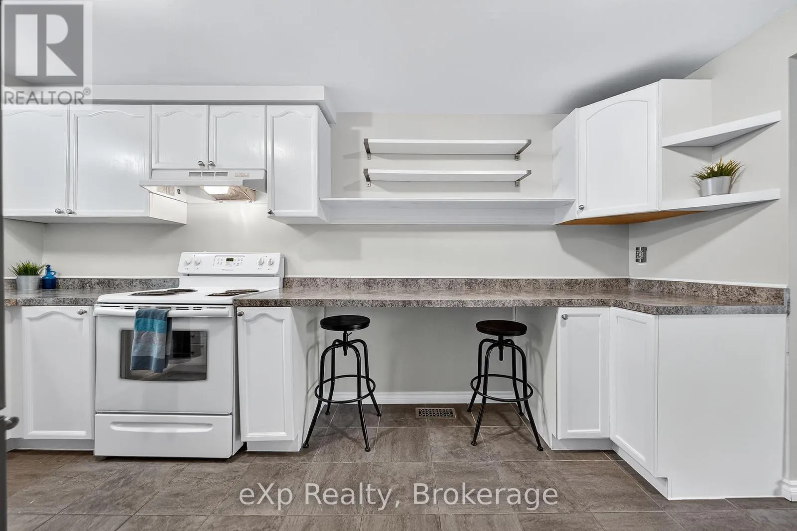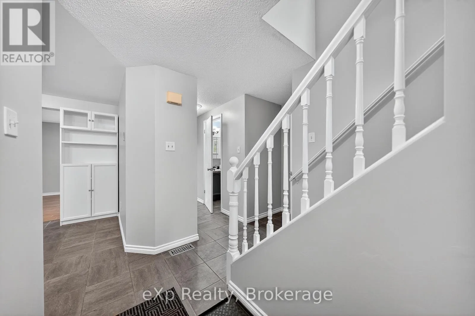 Cross Streets: Victoria & Hadati. ** Directions: Townhomes beside Victor Davis Pool. North of Hadati on right hand side. Welcome to 129 Victoria Road North, Unit 75. This clean, move-in-ready townhome features a bright and airy main floor with white kitchen cabinets and warm, rich tones throughout. The versatile main floor lends to many furniture configurations. Featuring 3 bedrooms, 1.5 baths, a finished recreation room, and a freshly painted interior, this home is sure to impress. Enjoy a fenced backyard that backs onto the condominium's private park, complete with beautiful mature trees offering shade and privacy in the warmer months. The exterior photos were taken two weeks apart in November to showcase how vibrant the foliage becomes right outside your door. Located in Guelph's desirable East End, you're close to parks, transit, schools, trail systems, shopping, and the Victoria Road Recreation Centre - making this an ideal home for families, first-time buyers, investors or anyone seeking comfort and convenience. This is the one you've been waiting for! (id:27476)