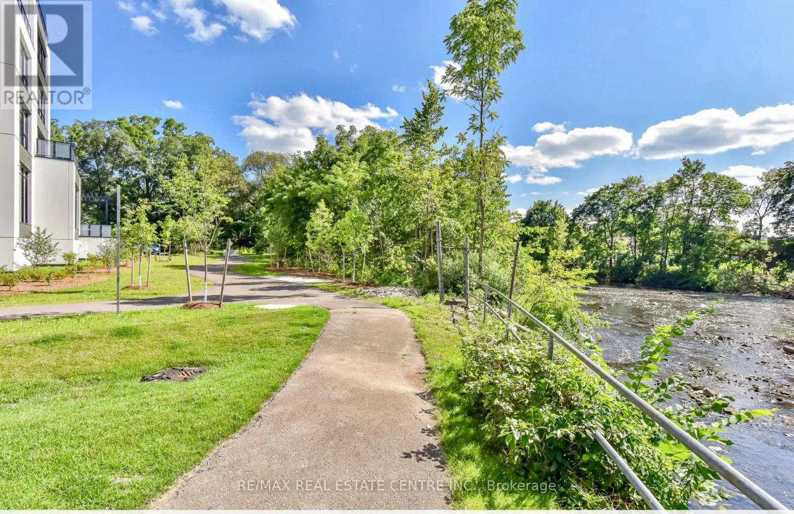 Cross Streets: Between Wellington St E and York Street. ** Directions: Between Wellington St E and YorkStreet. Luxury 2-Bedroom + Den at The Edgewater, Downtown Guelph. Experience luxury rental living at The Edgewater Condominium with this 2-bedroom + den, 2-bath suite. Ideally located steps from downtown Guelph, this residence offers unmatched rental living. This 6th-floor home features two private balconies, each with beautiful city and river views. The open-concept kitchen, living, and dining area is perfect for entertaining or relaxing, with a gourmet kitchen, waterfall-edge island, premium finishes, and modern appliances.The primary suite features a walk-in closet, en-suite, and balcony access. The second bedroom features a walk-in closet and a balcony, and is near the main bathroom. The den suits a home office or reading nook. Enhanced with pot lighting, heated bathroom floors, and premium flooring throughout, this home exudes comfort and sophistication.Residents enjoy access to exceptional amenities, including a state-of-the-art fitness centre, two social lounges, a golf simulator, and a guest suite. The outdoor dining terrace with BBQ area is perfect for summer evenings and entertaining guests. Live steps from shops, restaurants, and the riverfront trails - and enjoy a luxury rental lifestyle (id:27476)