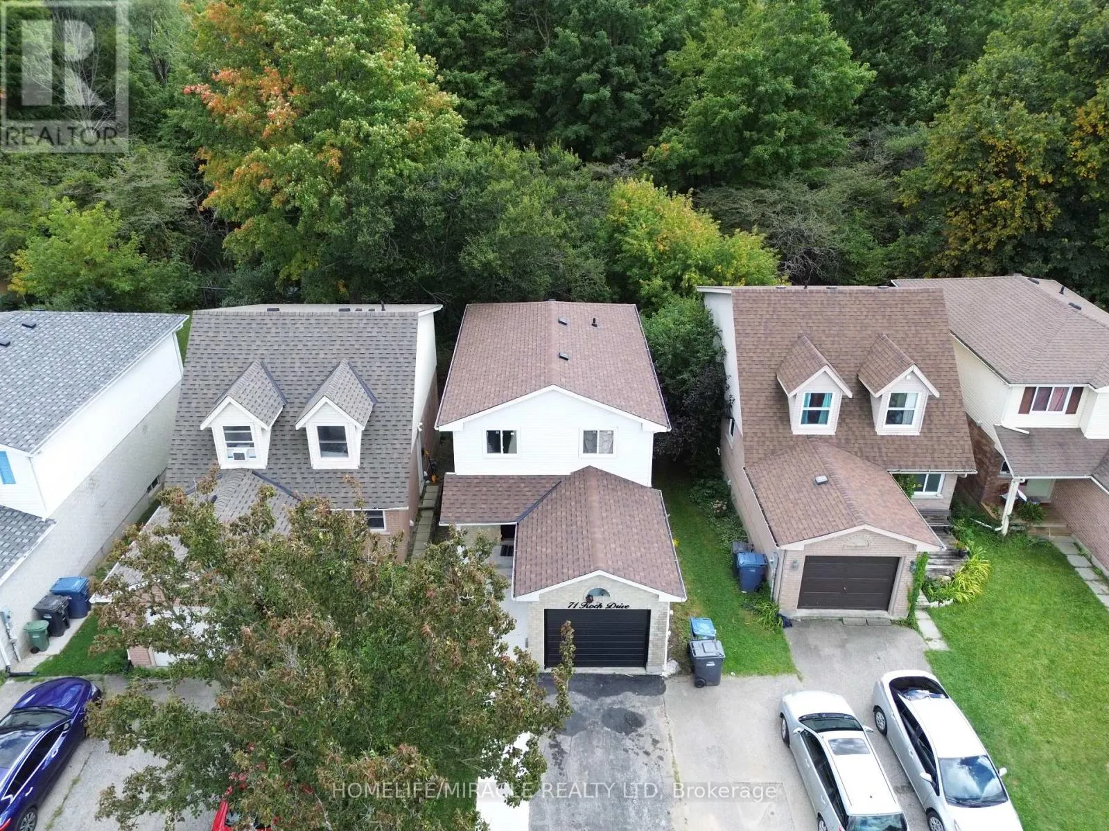 Koch Dr & Walman Dr Stunning, Fully Renovated Home Backing Onto Hanlon Creek Basement Suite Approx. 2,000 Sq.Ft. of Finished Living Space Welcome to 71 Koch Drive, where modern upgrades meet serene natural surroundings. From the moment you arrive, the beautifully landscaped front yard and rare ravine-backed lot set the tone for this exceptional home. Step inside to a bright foyer featuring a spacious powder room and a large double closet. Continue through to the open-concept main floor, where the living room, chef-inspired kitchen, and expansive dining area flow seamlessly together-perfect for everyday living or hosting guests. Large windows frame tranquil ravine views, and a walkout to the elevated deck provides an ideal spot for morning coffee or evening relaxation. At the heart of the home is the upgraded kitchen, complete with sleek cabinetry, abundant storage, generous counter space, and a large island designed for gathering. Stainless steel appliances-including a new refrigerator and new dishwasher-enhance both function and style. The second floor offers a well-designed layout featuring a spacious primary suite with his-and-hers closets, two additional bright and roomy bedrooms, a modern 3-piece bathroom, and extra storage. The fully finished basement suite provides fantastic potential for rental income, multigenerational living, or an in-law setup. Recent upgrades include new windows and a new patio door (2025) for added comfort and efficiency. This is a rare opportunity to own a move-in-ready home that combines thoughtful renovations, income potential, and a premium ravine lot-all within a sought-after neighbourhood. (id:27476)