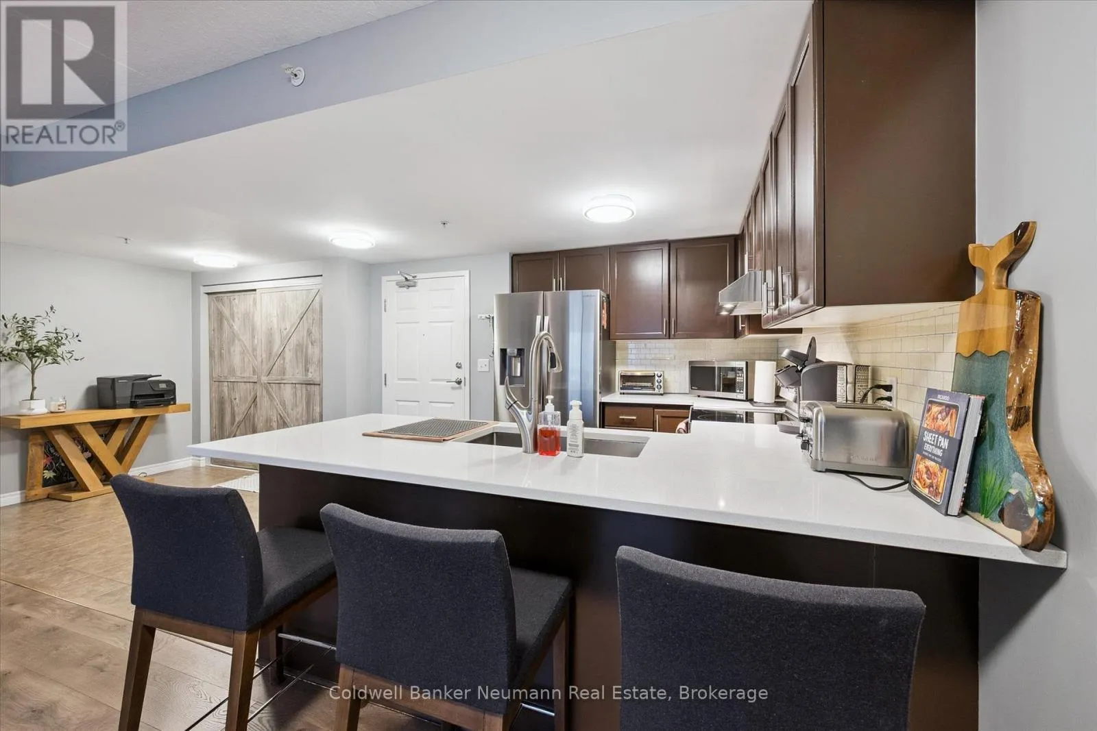 Cross Streets: victoria rd. ** Directions: victoria to fredrick to waterford. A 3-bedroom condo in this part of Guelph is always worth a closer look, and this thoughtfully updated unit delivers strong appeal for families, first-time buyers, and investors alike. Located in the highly desirable South End-walking distance to schools, parks, bus routes, and just a 5-minute drive to the 401-it also offers exceptional day-to-day convenience. Its ground-level position allows you to easily bring groceries and everyday items directly inside through the sliding doors. Inside, you'll find 1,162 sq ft of bright, open-concept living space. The kitchen has been tastefully refreshed with white quartz countertops (2021), an undermount sink, updated hardware, stainless steel appliances, and a stylish backsplash. It flows seamlessly into the dining area and spacious living room, which opens to a private balcony through large slider doors. The generous primary bedroom features an oversized closet and a 4-piece ensuite. Two additional well-sized bedrooms provide flexibility for children, guests, or a home office. Both bathrooms have been tastefully updated with new vanities and fixtures (2020), and the second 4-piece bath is conveniently located near the additional bedrooms with a linen closet nearby for extra storage. Updated laminate flooring and modern light fixtures create a cohesive, contemporary feel throughout. An in-suite laundry/utility room with extra shelving adds everyday practicality, and the brand new HVAC system installed this year offers peace of mind and year-round comfort. With a dedicated parking space, ample visitor parking, thoughtful updates, and an unbeatable location, this move-in-ready condo is an excellent opportunity to own a spacious home in South Guelph. (id:27476)