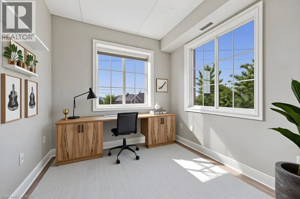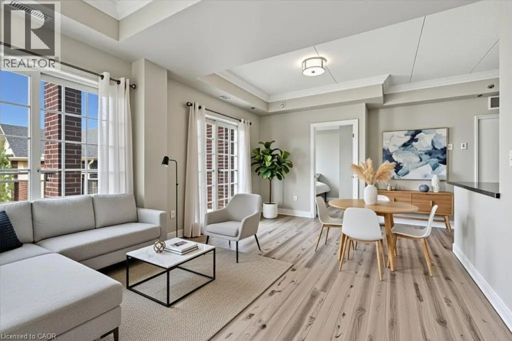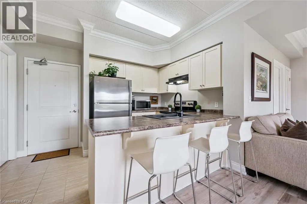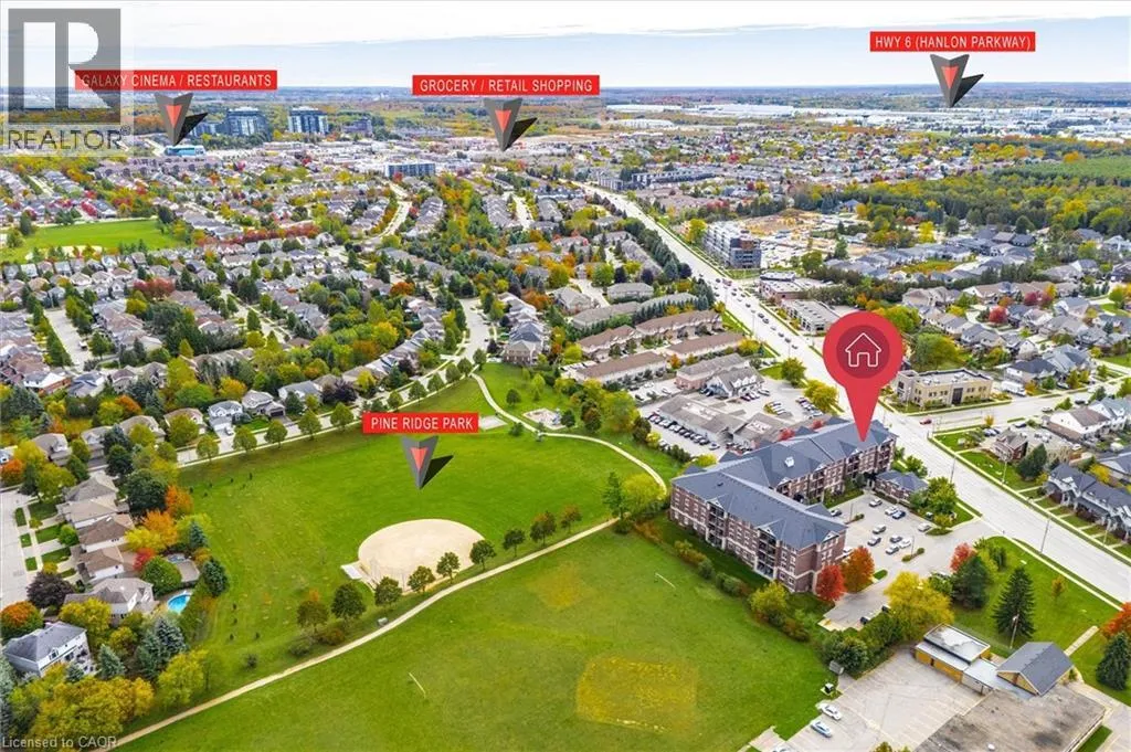 Gordon St between Arkell and Lowes Check everything off your list! This rare THREE bedroom TWO bathroom END UNIT condo with UNDERGROUND PARKING and oversized BALCONY is just minutes from South Guelph's best amenities including the University of Guelph! Step inside the foyer to a thoughtfully designed split floorplan layout with nine foot ceilings! The classic shaker kitchen features plenty of cabinetry including a handy eat-up breakfast bar and modern stainless steel appliances. The large, bright living room has new warm textured flooring throughout and DUAL sliders to a spacious and private balcony. The primary bedroom is nearby, complete with three piece ensuite. Conveniently located on the opposite side of the unit are two additional bedrooms with their own four piece bathroom. Rounding off the floorplan is a handy in-suite laundry room. This unit also includes an underground parking space (conveniently located right by the side entrance doors and elevator!) as well as a storage locker on the same floor! Steps from Pineridge Park, excellent restaurants, amenities and transit and of course the University of Guelph. We've included some virtually staged photos of the office, bedrooms and living/dining area to give you some ideas for using the space. An immaculate unit in an excellent location. (id:27476)