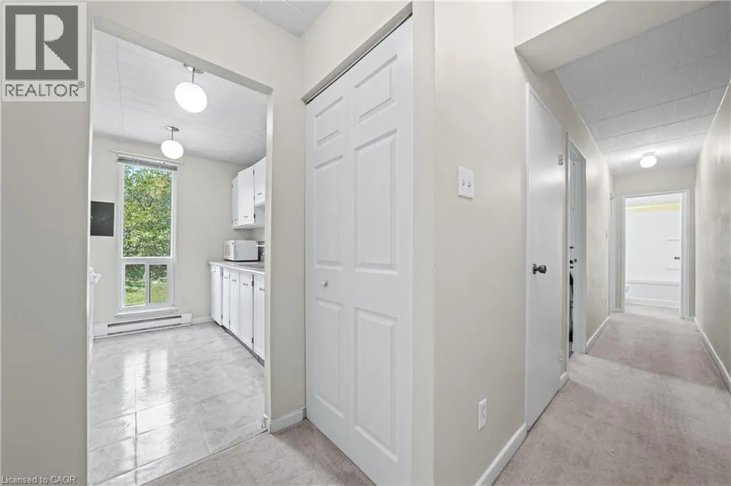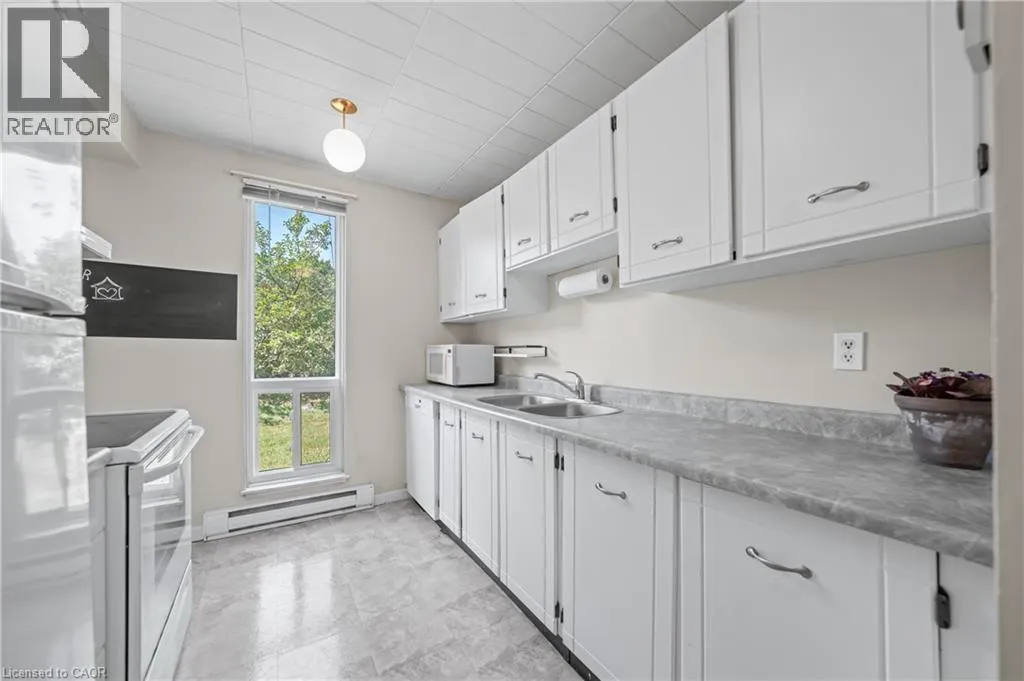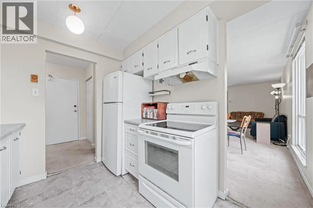 Exit North East from Hanlon Pkwy/Hwy 6 onto Silvercreek Pkwy. Enter Ajax St from Silvercreek Pkwy. Unlock an unbeatable opportunity at 204-9 Ajax St - one of Guelph's most affordable ownership options. Perfect for investors seeking strong cash flow or first-time buyers wanting to enter the market, this updated main-floor 2 bed condo offers exceptional value. Enjoy a bright all-season sunroom with a combined A/C + heating unit (2019) and new sunroom windows (2023). All other windows-including the living/dining, bedroom, and kitchen windows-were replaced in 2022, keeping the unit efficient and filled with natural light. The functional walkthrough kitchen includes a large pantry closet, and the refreshed 4-piece bathroom (2024) adds peace of mind. Two generous bedrooms, an oversized in-unit storage closet, and a convenient coat closet complete the layout. The building also offers a community room for hosting larger gatherings. Convenience is unmatched: located along a bus route and steps from Shoppers Drug Mart, No Frills, Beer Store, Dollarama, Winners, and more. Outdoor enthusiasts will love nearby Margaret Greene Park with its tennis courts, playground, off-leash dog trail, and baseball diamonds. Quick access to schools, local services, the Hanlon Parkway, and Sleeman Park further boosts appeal. Whether you're entering the market or adding to your portfolio, this condo delivers incredible value and long-term potential. (id:27476)