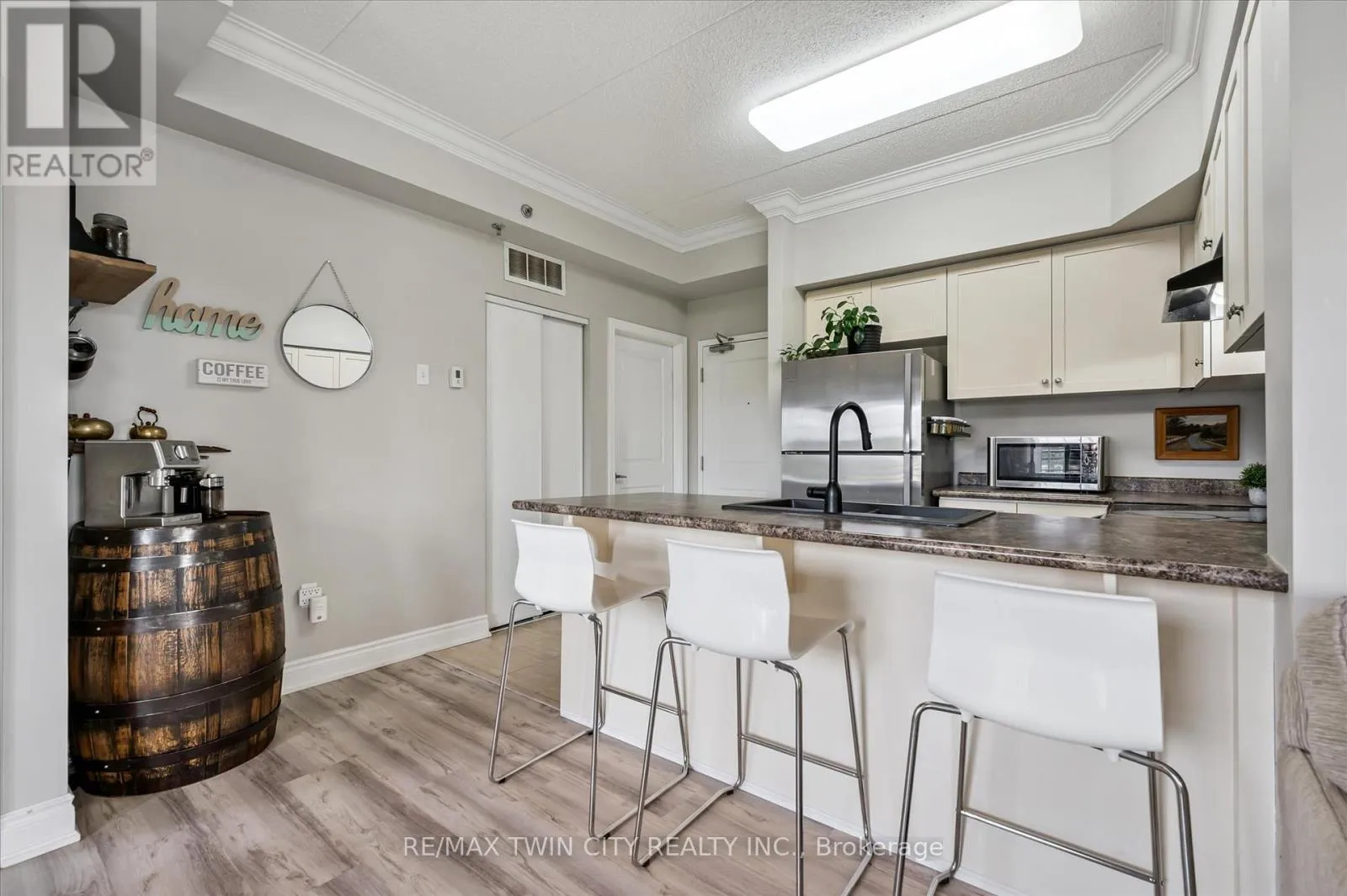Cross Streets: Lowes Rd and Arkell Rd. ** Directions: between Lowes Rd and Arkell Rd. Check everything off your list! This rare THREE bedroom TWO bathroom END UNIT condo with UNDERGROUND PARKING and oversized BALCONY is just minutes from South Guelph's best amenities including the University of Guelph! Step inside the foyer to a thoughtfully designed split floorplan layout with nine foot ceilings! The classic shaker kitchen features plenty of cabinetry including a handy eat-up breakfast bar and modern stainless steel appliances. The large, bright living room has new warm textured flooring throughout and DUAL sliders to a spacious and private balcony. The primary bedroom is nearby, complete with three piece ensuite. Conveniently located on the opposite side of the unit are two additional bedrooms with their own four piece bathroom. Rounding off the floorplan is a handy in-suite laundry room. This unit also includes an underground parking space (conveniently located right by the side entrance doors and elevator!) as well as a storage locker on the same floor! Steps from Pineridge Park, excellent restaurants, amenities and transit and of course the University of Guelph. We've included some virtually staged photos of the office, bedrooms and living/dining area to give you some ideas for using the space. An immaculate unit in an excellent location. (id:27476)