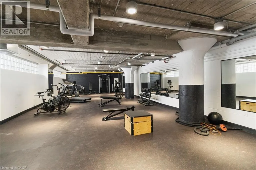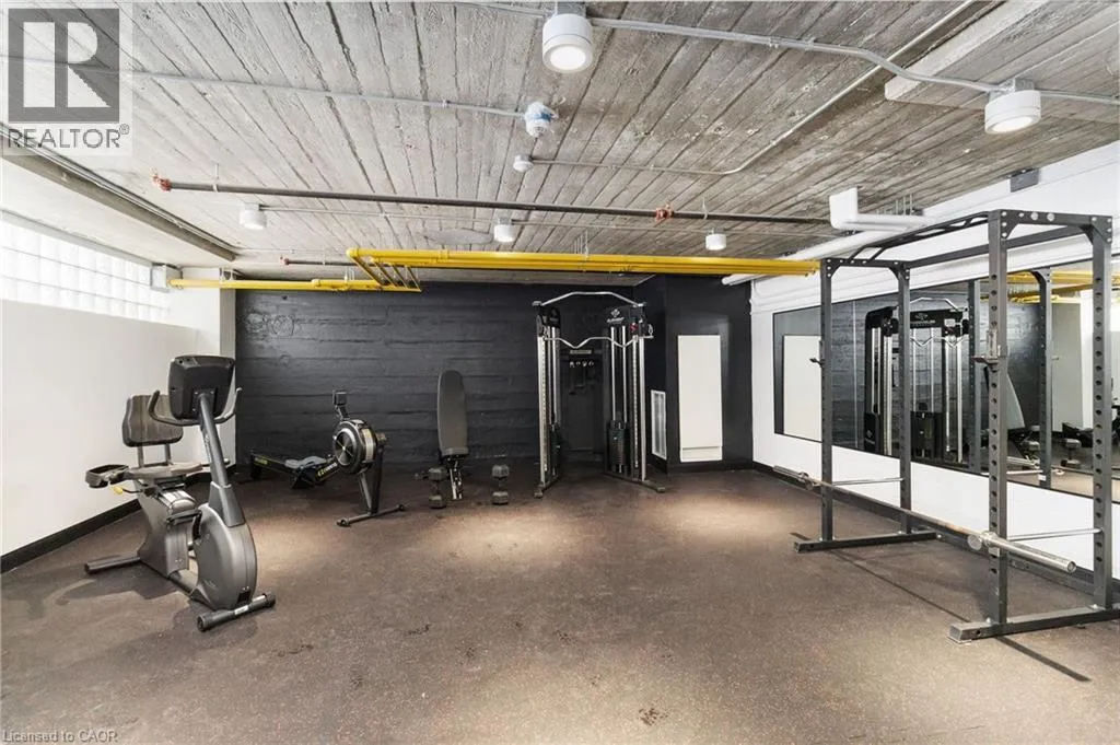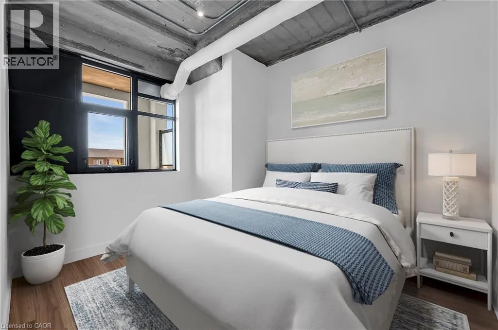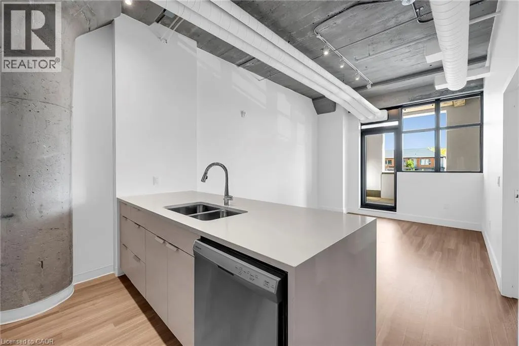 York Road to Huron Street Where heritage charm meets modern edge. Step into this authentic hard-loft conversion that pairs century-old character with contemporary design. This bright and open 1-bed, 1-bath condo showcases soaring 10-foot ceilings, oversized windows, and a fluid layout that makes a statement the moment you walk in. Thoughtful upgrades include a sleek waterfall quartz countertop and upgraded baseboards for a polished, elevated finish. Enjoy the convenience of a separately deeded parking space and storage locker. Just minutes from Guelphs vibrant downtown: coffee shops, boutiques, and dining are all close at hand, yet the building itself exudes soul, history and genuine warmth. Your private 150 sq. ft. balcony becomes an extension of your living space, perfect for morning coffee or evening stargazing. Inside, the clean, modern aesthetic is complemented by access to premium amenities: a 2,200 sq. ft. rooftop patio with BBQ, fire cube, and lounge seating; heated bike ramp with indoor storage; a fully equipped gym; games room; and even a pet wash for your four-legged friend. Whether youre working from home, entertaining, or simply enjoying the vibe, this loft delivers the best of boutique, urban living. (id:27476)