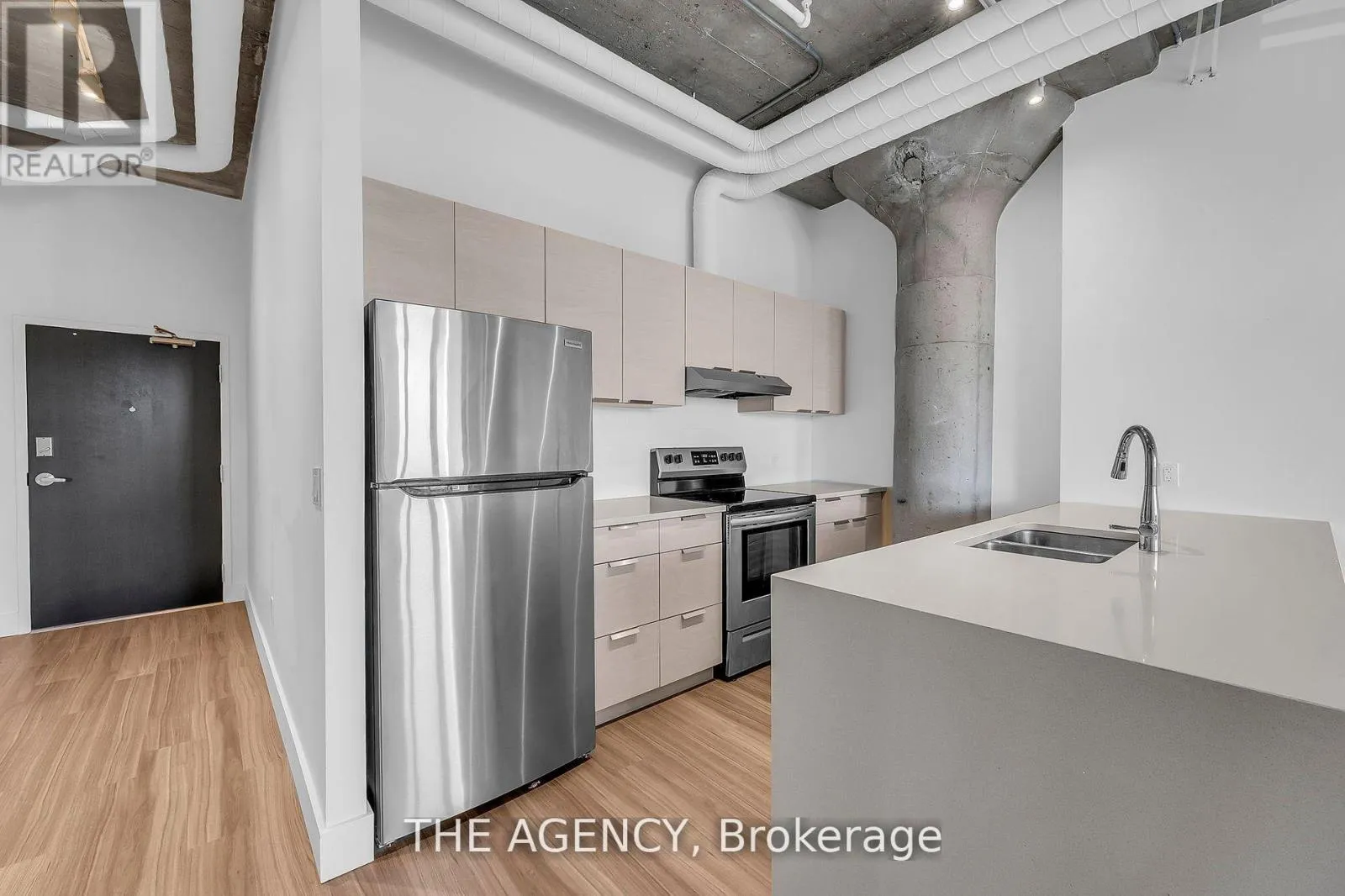 Cross Streets: Huron St & Alice St. ** Directions: York Road to Huron Street. Where heritage charm meets modern edge. Step into this authentic hard-loft conversion that pairs century-old character with contemporary design. This bright and open 1-bed, 1-bath condo showcases soaring 10-foot ceilings, oversized windows, and a fluid layout that makes a statement the moment you walk in. Thoughtful upgrades include a sleek waterfall quartz countertop and upgraded baseboards for a polished, elevated finish. Enjoy the convenience of a separately deeded parking space and storage locker. Just minutes from Guelphs vibrant downtown: coffee shops, boutiques, and dining are all close at hand, yet the building itself exudes soul, history and genuine warmth. Your private 150 sq. ft. balcony becomes an extension of your living space, perfect for morning coffee or evening stargazing. Inside, the clean, modern aesthetic is complemented by access to premium amenities: a 2,200 sq. ft. rooftop patio with BBQ, fire cube, and lounge seating; heated bike ramp with indoor storage; a fully equipped gym; games room; and even a pet wash for your four-legged friend. Whether youre working from home, entertaining, or simply enjoying the vibe, this loft delivers the best of boutique, urban living. (id:27476)