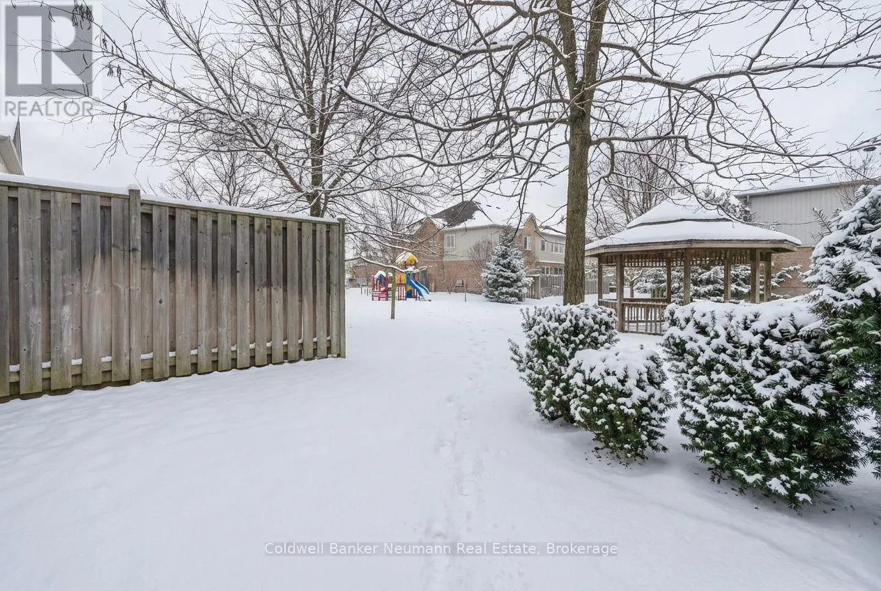 Cross Streets: MacAlister Blvd. ** Directions: Off of Victoria Road S. A wonderful opportunity for young families, downsizers, or even those looking to get into the market - this 1300+ square foot (plus finished basement) townhome is part of a well managed, quiet complex in Guelph's sought after south end. Owner occupied, clean and nicely maintained over the years with a new roof in 2025, this spacious 3 bedroom home features an open-concept main floor living area, brightly lit by the westerly-exposed rear window and sliding door. There is a cozy yard, which is open to the playground amenity of the complex, a lovely feature for young families with little ones, or grandparents who frequently host their grandkids! Have peace of mind as you watch your kids play within eyesight of the your home, while the path behind also helps create a buffer space between other units in the complex. Upstairs are three spacious bedrooms, with a large primary bedroom with two closets, and a large 4pc ensuite bath with tiled shower and soaker tub. There is also a main 4pc bath. The basement is finished and has been freshly painted in neutral decor, with a rec room, office nook, storage/utility room, laundry closet (with stackable machines and laundry sink), and more storage. Rough-in for another bath as well, and rental on-demand water heater just installed November 2025. Parking for TWO cars with the attached garage and driveway, and this complex also offers plenty of visitor spaces that are steps from this home. Unit 71 at 1035 Victoria Road S. is situated within a very family-friendly complex, with a bus stop only steps out the front door, near the University of Guelph, the trails at the Arboretum, great schools (including the future secondary school), Victoria Park East Golf Club, shopping, and easy access to the 401. (id:27476)
