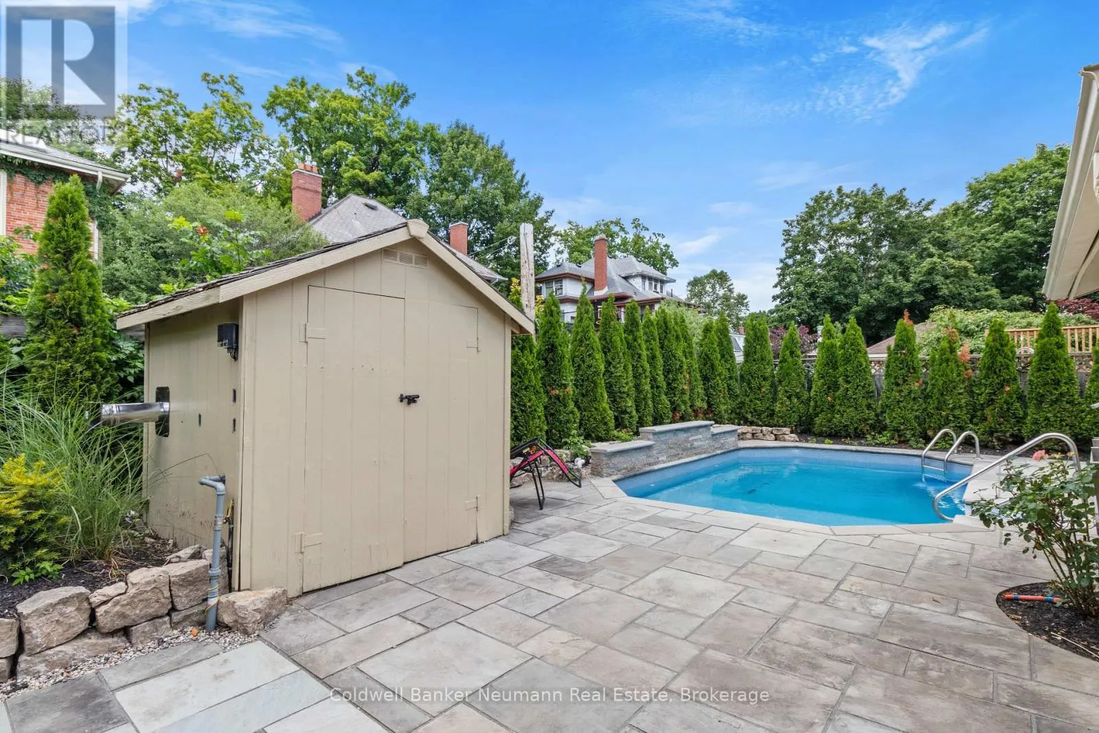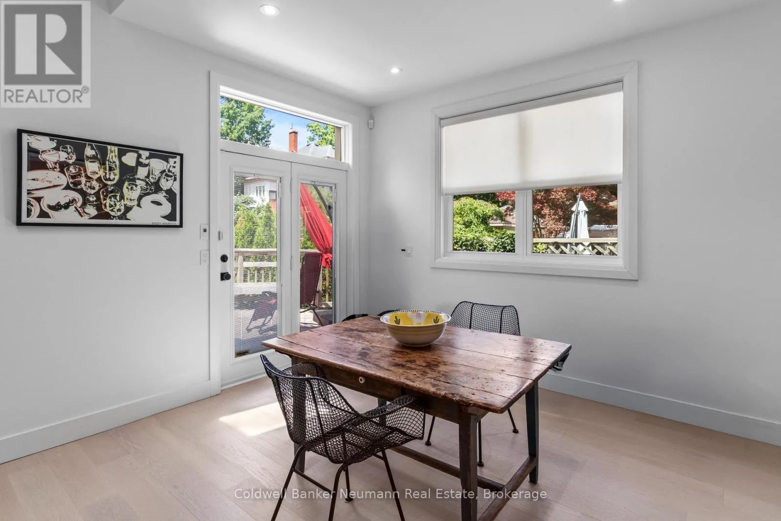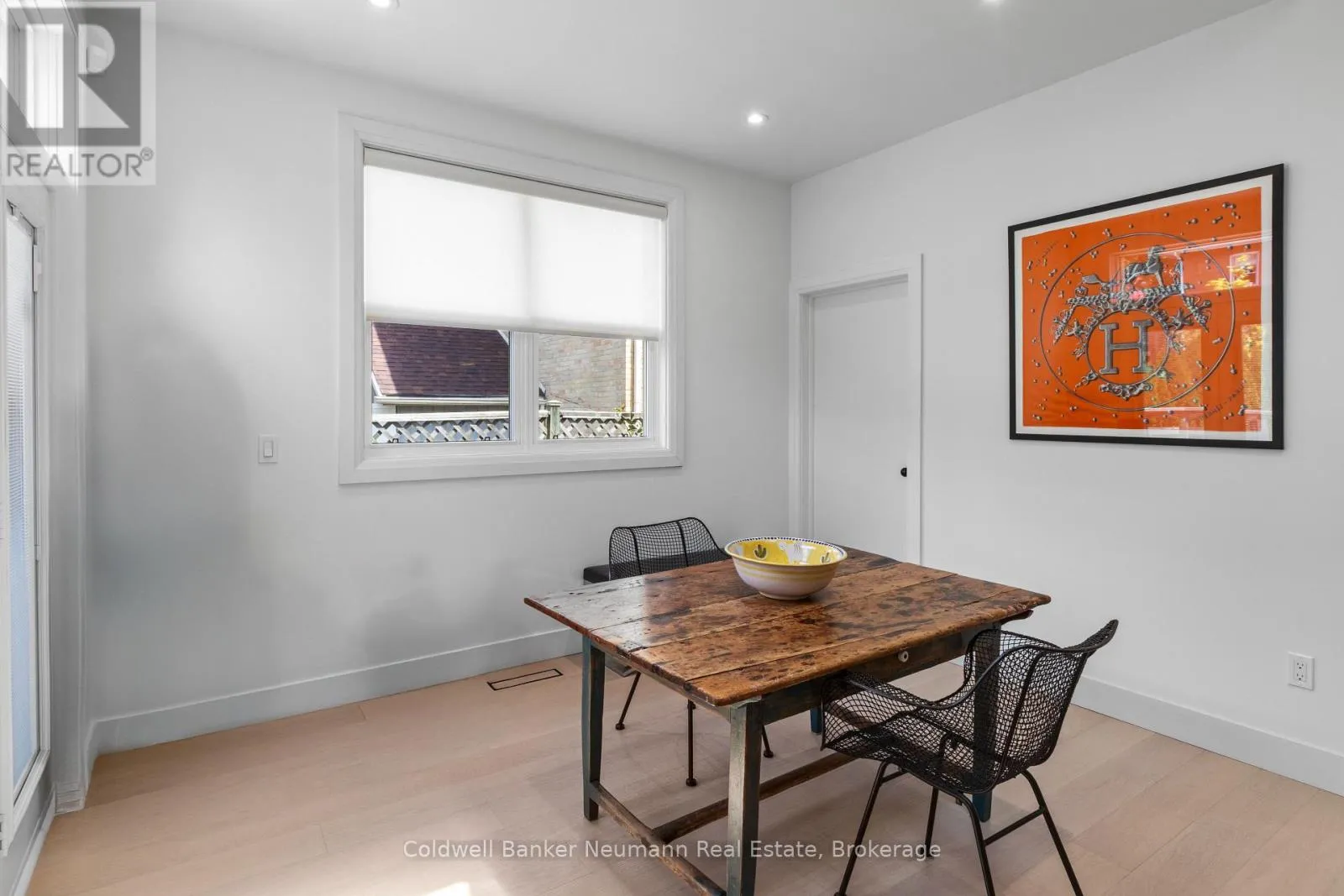 Norfolk St *Fully Furnished**Captivating historical home nestled on a highly sought-after street in the heart of Downtown Guelph! Offering 2,342 sq ft of living space, this 1889-built residence has been beautifully maintained and thoughtfully updated with modern finishes throughout. As you arrive, the charming front porch with wheelchair-accessible entry welcomes you-a perfect spot to unwind and enjoy the picturesque, tree-lined streets. Inside, the character of this home's rich history shines through. Soaring 12 ft ceilings and oversized windows create an open, airy atmosphere, while elegant hardwood flooring, high baseboards, crown moulding, and custom millwork elevate every room. The fireplace, framed by custom built-ins, provides the ideal ambience for cozy family time. The stunning kitchen showcases striking granite countertops, high-end stainless-steel appliances and a skylight that fills the space with natural light. A breakfast bar adds the perfect spot for casual dining or entertaining. Double doors lead directly to the backyard, offering a seamless flow between indoor and outdoor living. You'll find three generous bedrooms. The primary suite features a large window and a luxurious ensuite complete with an oversized vanity, double sinks, glass shower, and heated floors. Designed with functionality in mind, the home includes built-in closets, a dedicated office space with a 2-piece bath and separate entrance provides excellent flexibility for working from home. The backyard is a private oasis featuring a spacious deck, serene views of the inground pool with a soothing water feature, and mature trees wrapped by a tall wooden fence for added privacy-an ideal setting for relaxing or entertaining. Located in prime Downtown Guelph, you're steps away from charming boutiques, restaurants, bakeries, nightlife, and the GO Station. A short walk brings you to Exhibition Park and Royal City Park with scenic trails along the river. This property is truly a gem! (id:27476)
