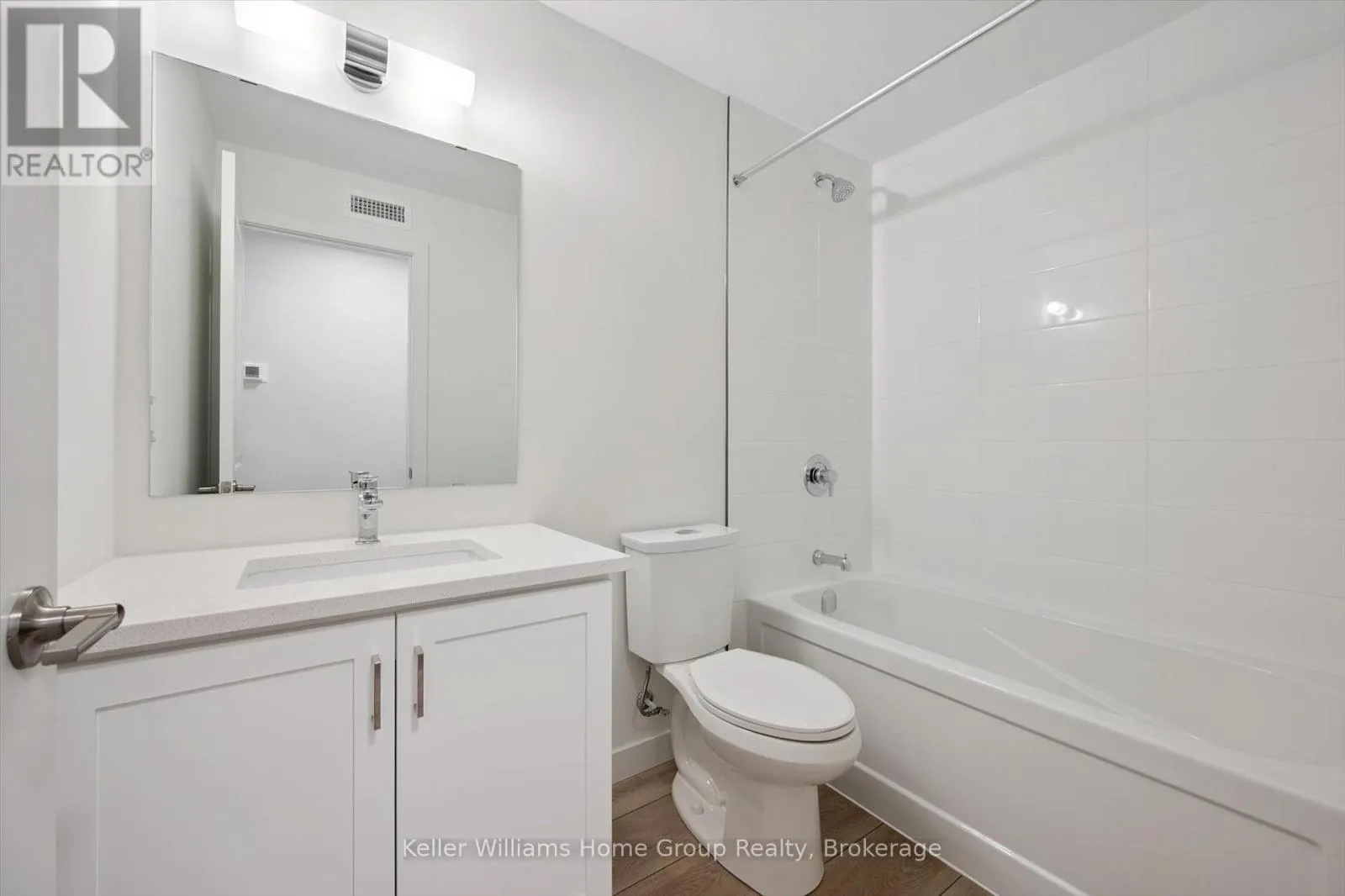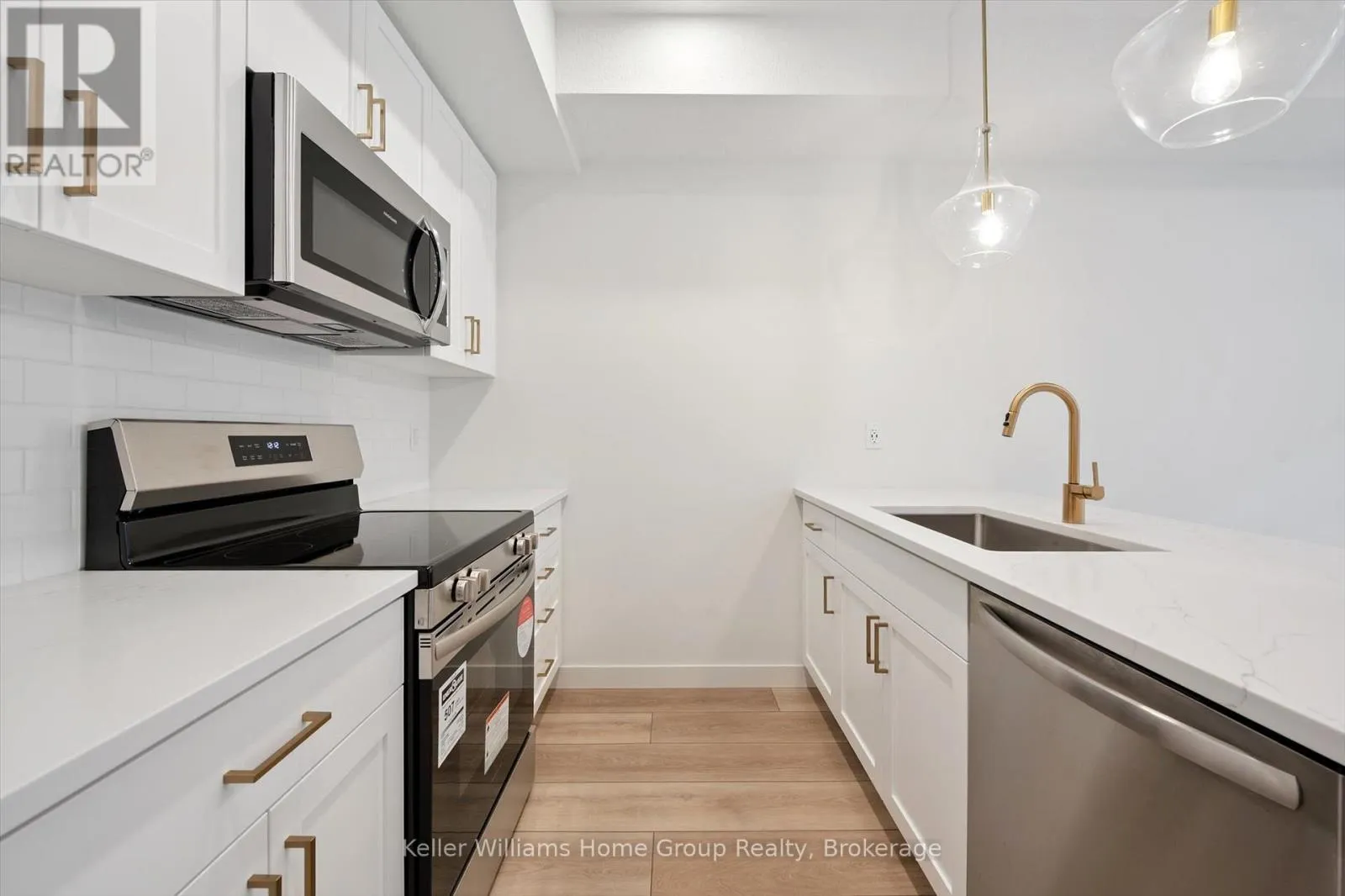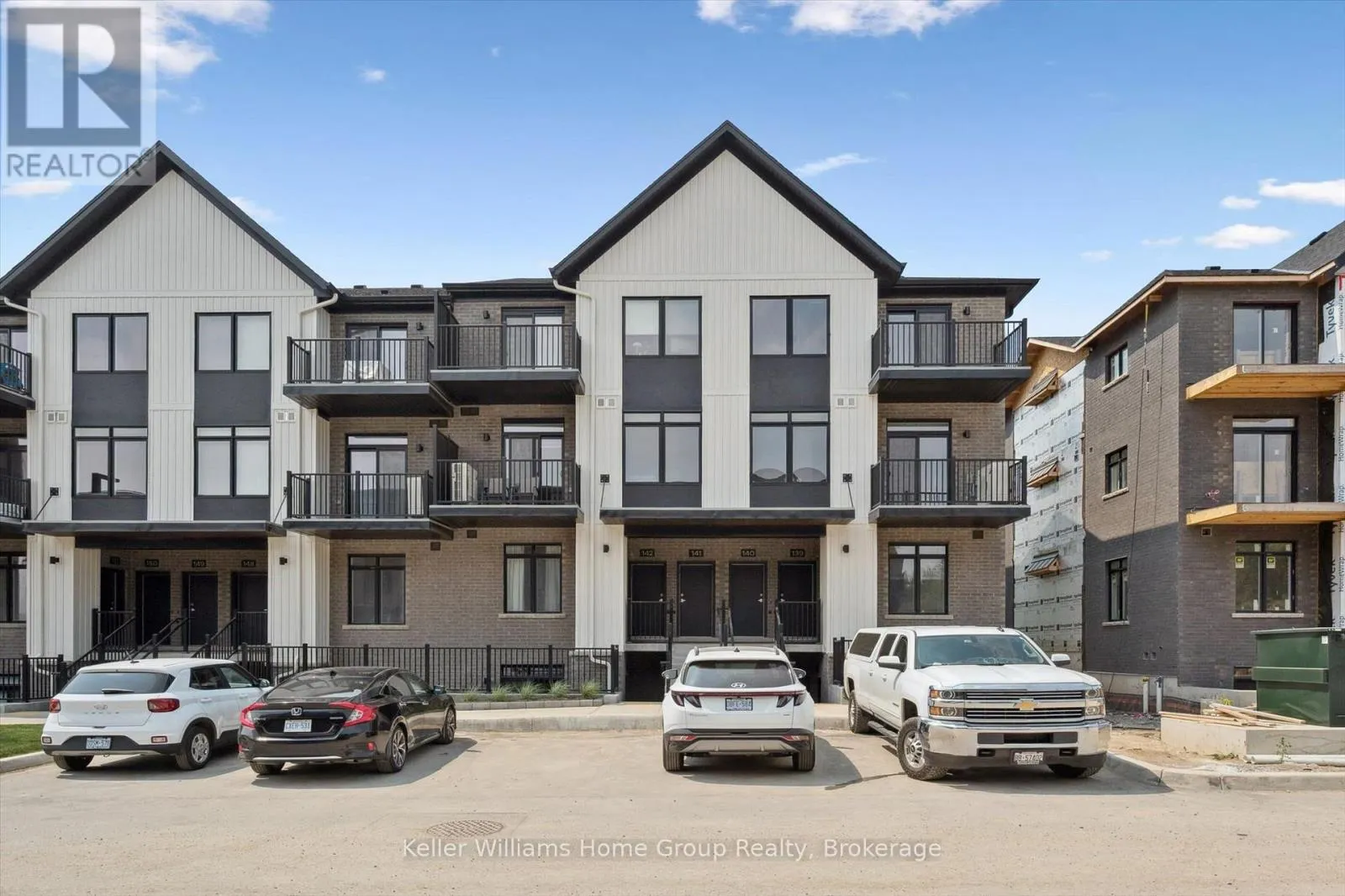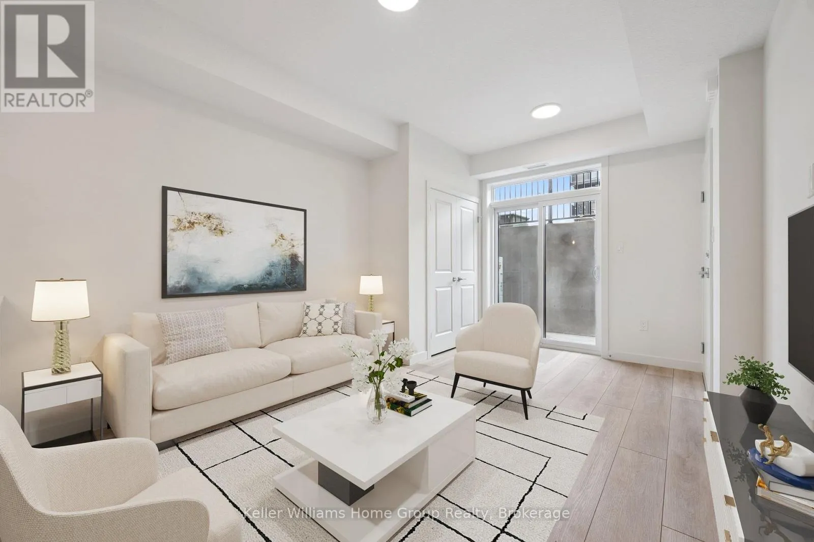 Cross Streets: Woodlawn Road & Woolwich Street. ** Directions: Woodlawn Road to Woolwich Street. Move-In Ready End Unit at Northside - Quick Closing Available! This terrace-level end unit in Guelph's sought-after Northside community is ready for immediate occupancy and offers 900 sq. ft. of bright, modern living space. Built by award-winning Granite Homes, it features 2 bedrooms, 2 bathrooms, 9 ft ceilings, luxury vinyl plank flooring, quartz countertops, and a full 6-piece appliance package. Enjoy your private outdoor terrace and the convenience of an exclusive storage room. Steps from SmartCentres, you're close to grocery stores, restaurants, Riverside Park, trails, and public transit-including the 99 Express to Downtown and the University of Guelph. Northside also offers a community park, outdoor amenity areas, and flexible parking options. Photos with furniture have been virtually staged. (id:27476)