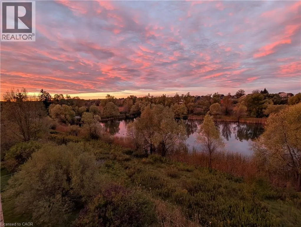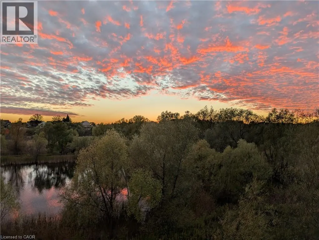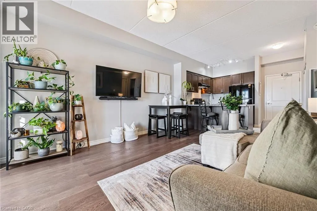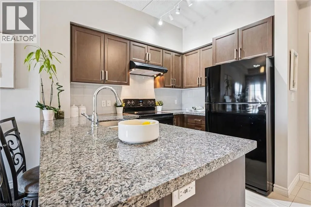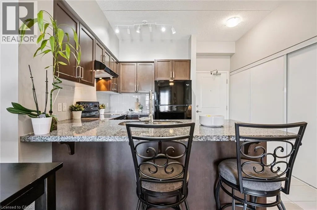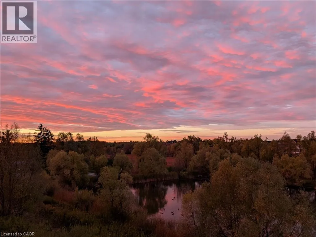 Kortright rd and Gordon st Welcome to this stunning and meticulously maintained one bedroom plus den condo in Guelph's sought-after south end, complete with a dedicated parking space and a convenient storage locker located on the same floor. This sunlit unit boasts 9 ft ceilings, oversized windows, and tastefully updated hardwood flooring in the living area and carpet in the bedroom creating a bright and welcoming atmosphere. The open concept layout is flooded with natural light, making the space feel airy and spacious. The versatile den offers endless possibilities as a home office, study, or guest room, catering to your specific needs. The modern kitchen offers plenty of space and is fitted with granite countertops, a breakfast bar, updated appliances, backsplash, and seamless access to the stackable laundry closet. Enjoy your morning coffee or unwind after a long day on the private balcony that overlooks serene green space, providing a peaceful retreat right at home. The prime location is unbeatable, just minutes away from the University of Guelph, Stone Road Mall, grocery stores, restaurants, and the bus station, with easy access to the 401 for commuters. Whether you're a first-time buyer, downsizing, or investing, this well-appointed condo offers a fantastic opportunity in a highly desirable south-end location, with every convenience at your fingertips. Don't miss your chance to call this beautiful condo your new home! (id:27476)