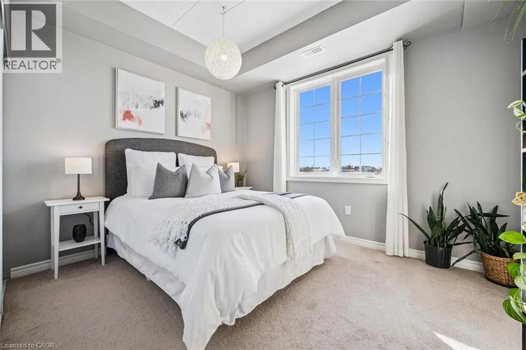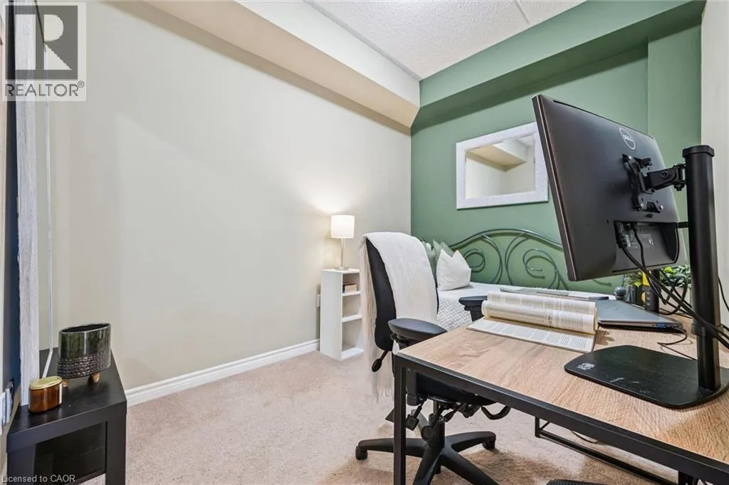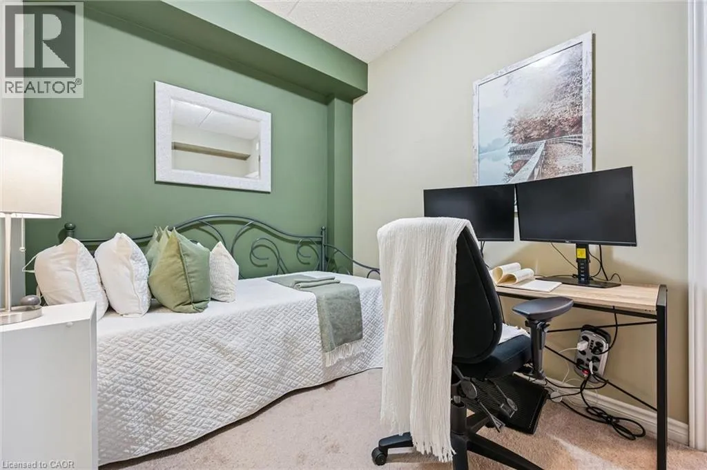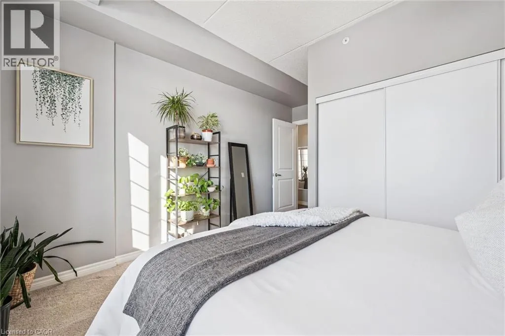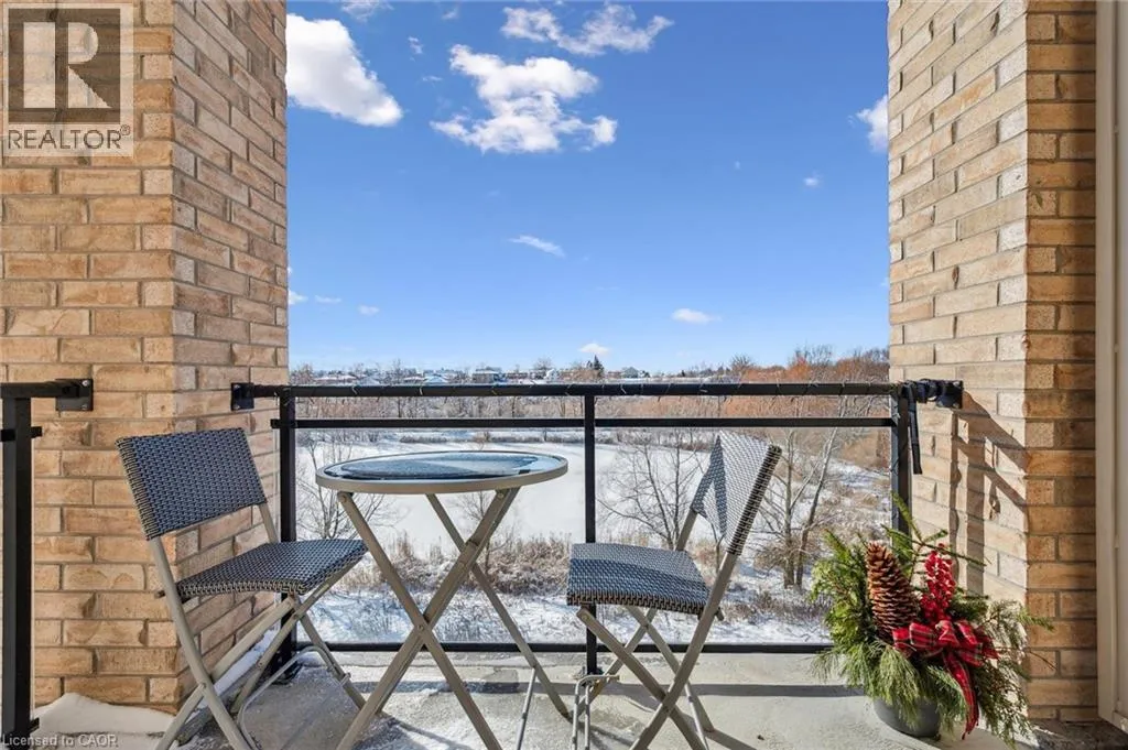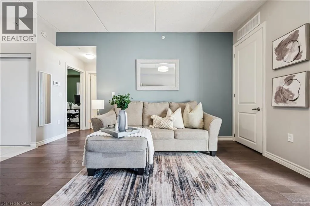 Kortright rd and Gordon st Welcome to this stunning and meticulously maintained one bedroom plus den condo in Guelph's sought-after south end, complete with a dedicated parking space and a convenient storage locker located on the same floor. This sunlit unit boasts 9 ft ceilings, oversized windows, and tastefully updated hardwood flooring in the living area and carpet in the bedroom creating a bright and welcoming atmosphere. The open concept layout is flooded with natural light, making the space feel airy and spacious. The versatile den offers endless possibilities as a home office, study, or guest room, catering to your specific needs. The modern kitchen offers plenty of space and is fitted with granite countertops, a breakfast bar, updated appliances, backsplash, and seamless access to the stackable laundry closet. Enjoy your morning coffee or unwind after a long day on the private balcony that overlooks serene green space, providing a peaceful retreat right at home. The prime location is unbeatable, just minutes away from the University of Guelph, Stone Road Mall, grocery stores, restaurants, and the bus station, with easy access to the 401 for commuters. Whether you're a first-time buyer, downsizing, or investing, this well-appointed condo offers a fantastic opportunity in a highly desirable south-end location, with every convenience at your fingertips. Don't miss your chance to call this beautiful condo your new home! (id:27476)