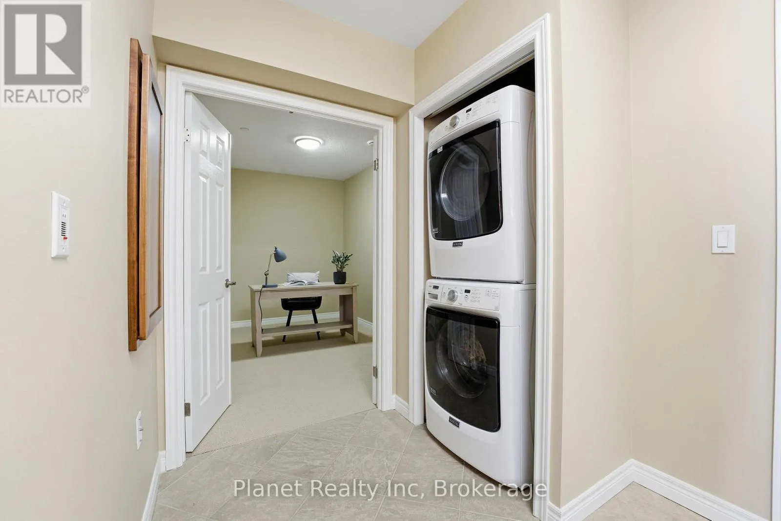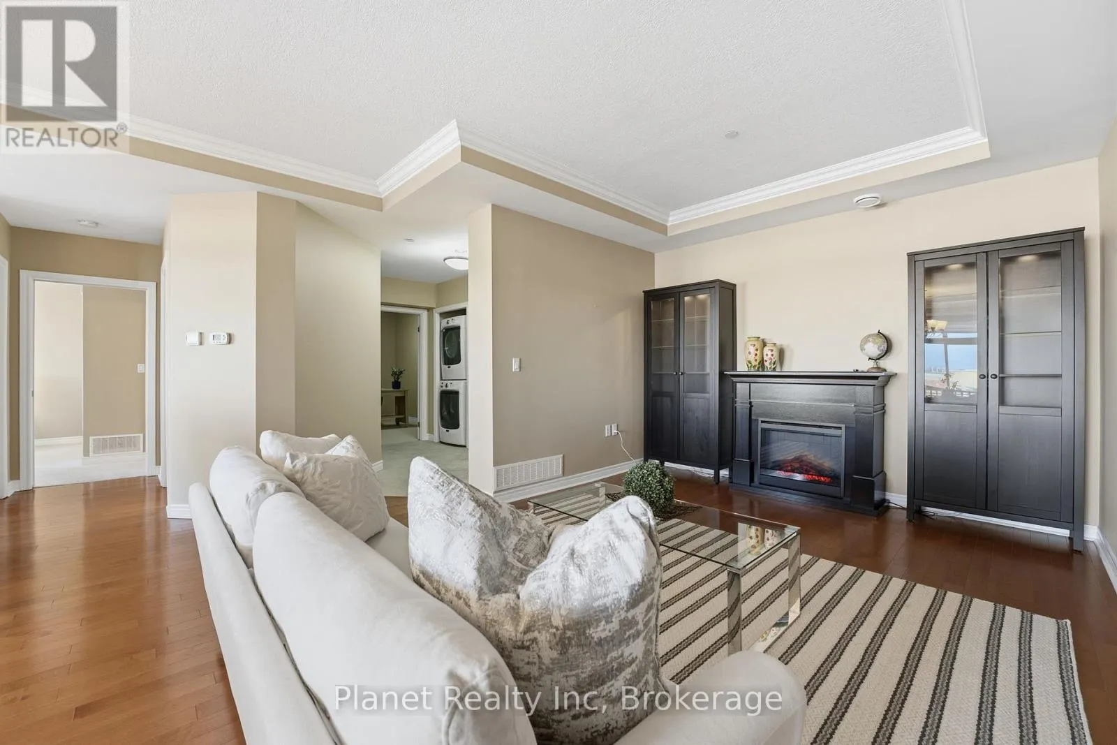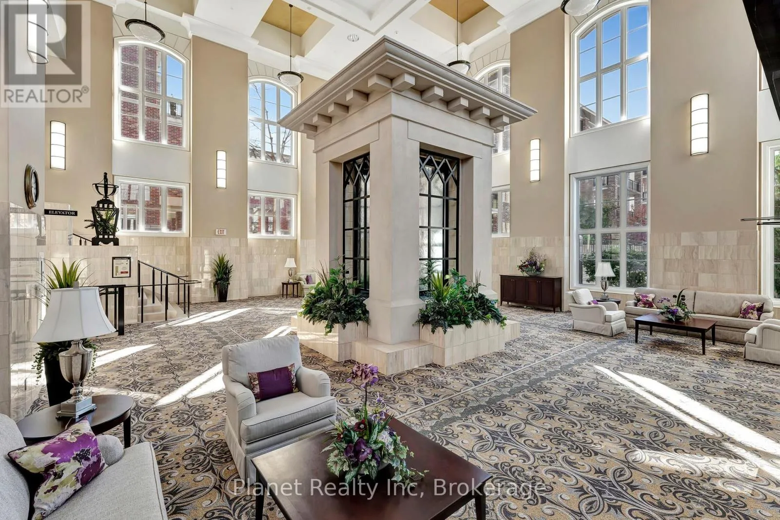 Cross Streets: Village Green Drive & Bayberry Drive. ** Directions: East on Stone Rd, turn right on Village Green Drive, left on Bayberry Drive. Experience elevated condo living in this spacious one-bedroom plus den suite at The Wellington. Thoughtfully designed with premium upgrades throughout; this suite features two elegantly finished bathrooms, a blend of hardwood and tile flooring, and a modern kitchen outfitted with custom cabinetry, sleek granite surfaces, a generous center island, and high-end stainless-steel appliances. The expansive living and dining area is ideal for both everyday comfort and entertaining, highlighted by detailed ceiling finishes, refined trim work, and a contemporary electric fireplace framed by built-in storage. Large windows lead to a sun-filled balcony that extends your living space outdoors. Retreat to the oversized primary bedroom, complete with a beautifully renovated ensuite showcasing a glass-enclosed shower, stylish tile work, and a granite-topped vanity. Additional features include a versatile den, ample storage solutions, and convenient in-suite laundry. This residence also includes underground parking and a storage locker. Residents enjoy exclusive access to the impressive Village Recreation Centre, offering an array of amenities such as an indoor pool, fitness facilities, games and reading rooms, social lounges, tennis court, putting green & more! Designed for those seeking comfort, convenience, and an active yet carefree lifestyle, this suite at C305-65 Bayberry Drive truly delivers. (id:27476)