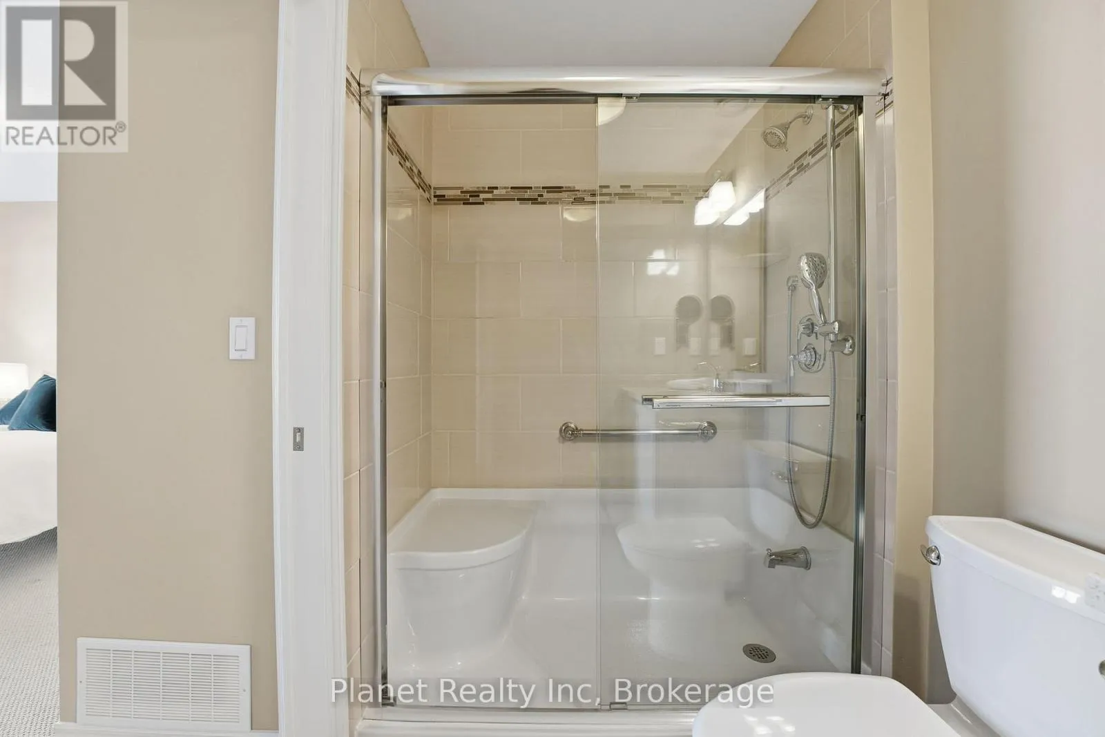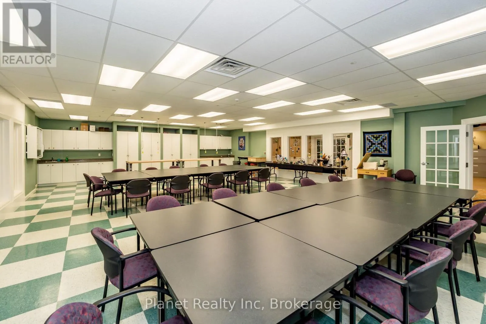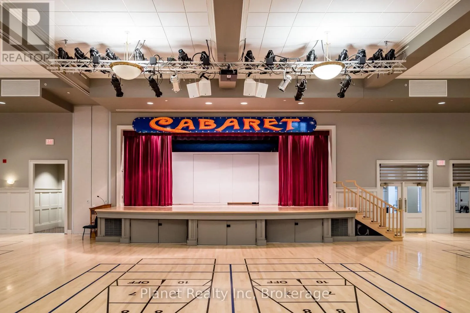 Cross Streets: Village Green Drive & Bayberry Drive. ** Directions: East on Stone Rd, turn right on Village Green Drive, left on Bayberry Drive. Experience elevated condo living in this spacious one-bedroom plus den suite at The Wellington. Thoughtfully designed with premium upgrades throughout; this suite features two elegantly finished bathrooms, a blend of hardwood and tile flooring, and a modern kitchen outfitted with custom cabinetry, sleek granite surfaces, a generous center island, and high-end stainless-steel appliances. The expansive living and dining area is ideal for both everyday comfort and entertaining, highlighted by detailed ceiling finishes, refined trim work, and a contemporary electric fireplace framed by built-in storage. Large windows lead to a sun-filled balcony that extends your living space outdoors. Retreat to the oversized primary bedroom, complete with a beautifully renovated ensuite showcasing a glass-enclosed shower, stylish tile work, and a granite-topped vanity. Additional features include a versatile den, ample storage solutions, and convenient in-suite laundry. This residence also includes underground parking and a storage locker. Residents enjoy exclusive access to the impressive Village Recreation Centre, offering an array of amenities such as an indoor pool, fitness facilities, games and reading rooms, social lounges, tennis court, putting green & more! Designed for those seeking comfort, convenience, and an active yet carefree lifestyle, this suite at C305-65 Bayberry Drive truly delivers. (id:27476)